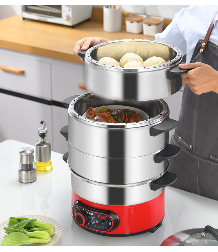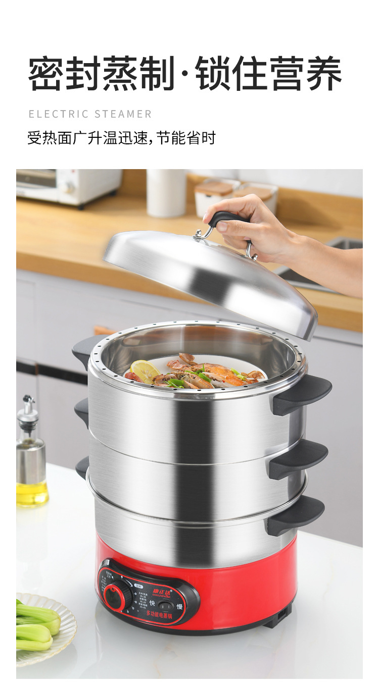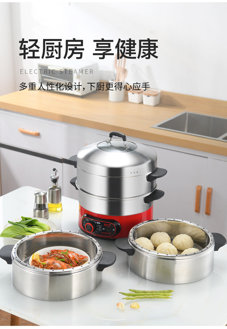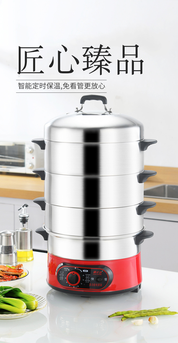 타이밍 다층 전기 찜기 두꺼운 스테인리스 스틸 빠르고 느린 기어 멀티 파워 에너지 절약 비 스트링 오리지널 대용량 비 다공성 식품 찜기스토어 가기