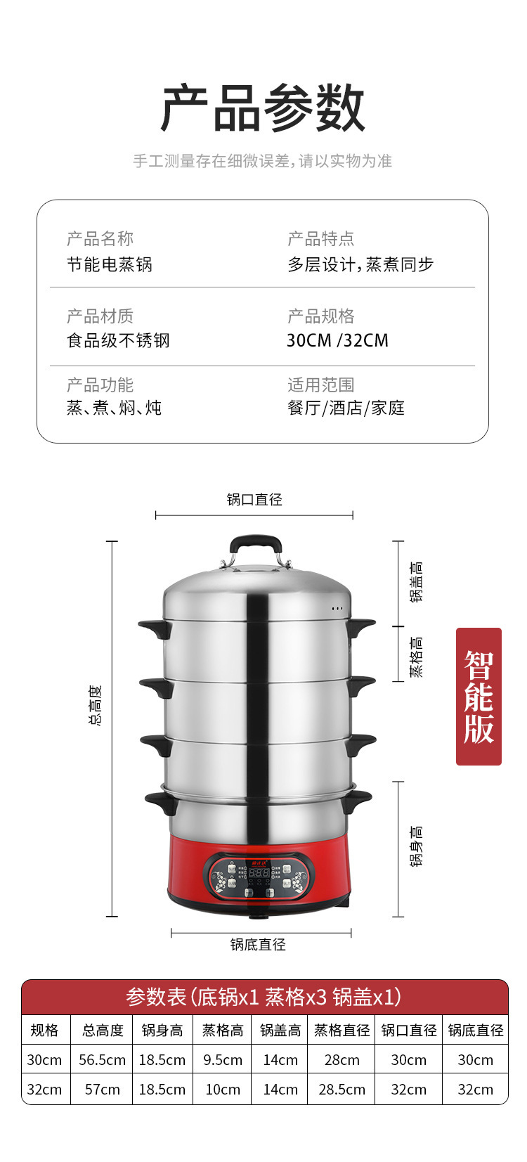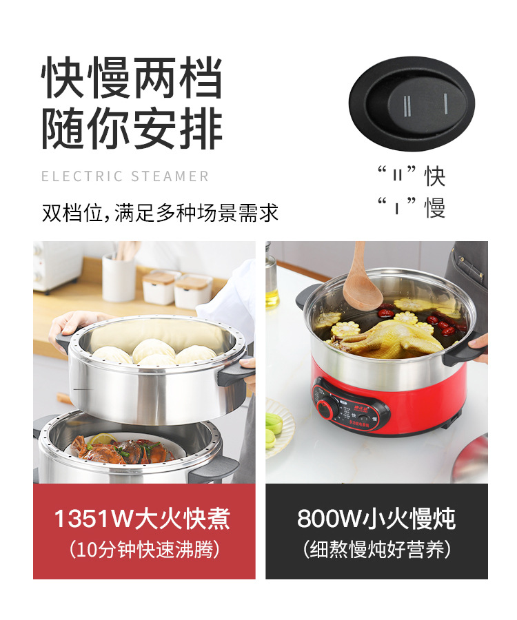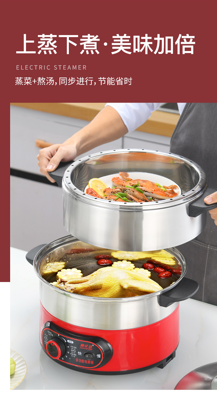 타이밍 다층 전기 찜기 두꺼운 스테인리스 스틸 빠르고 느린 기어 멀티 파워 에너지 절약 비 스트링 오리지널 대용량 비 다공성 식품 찜기스토어 가기