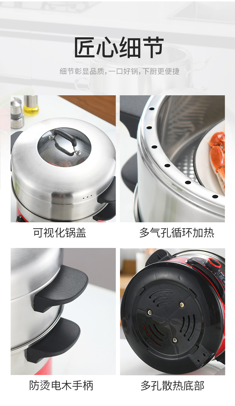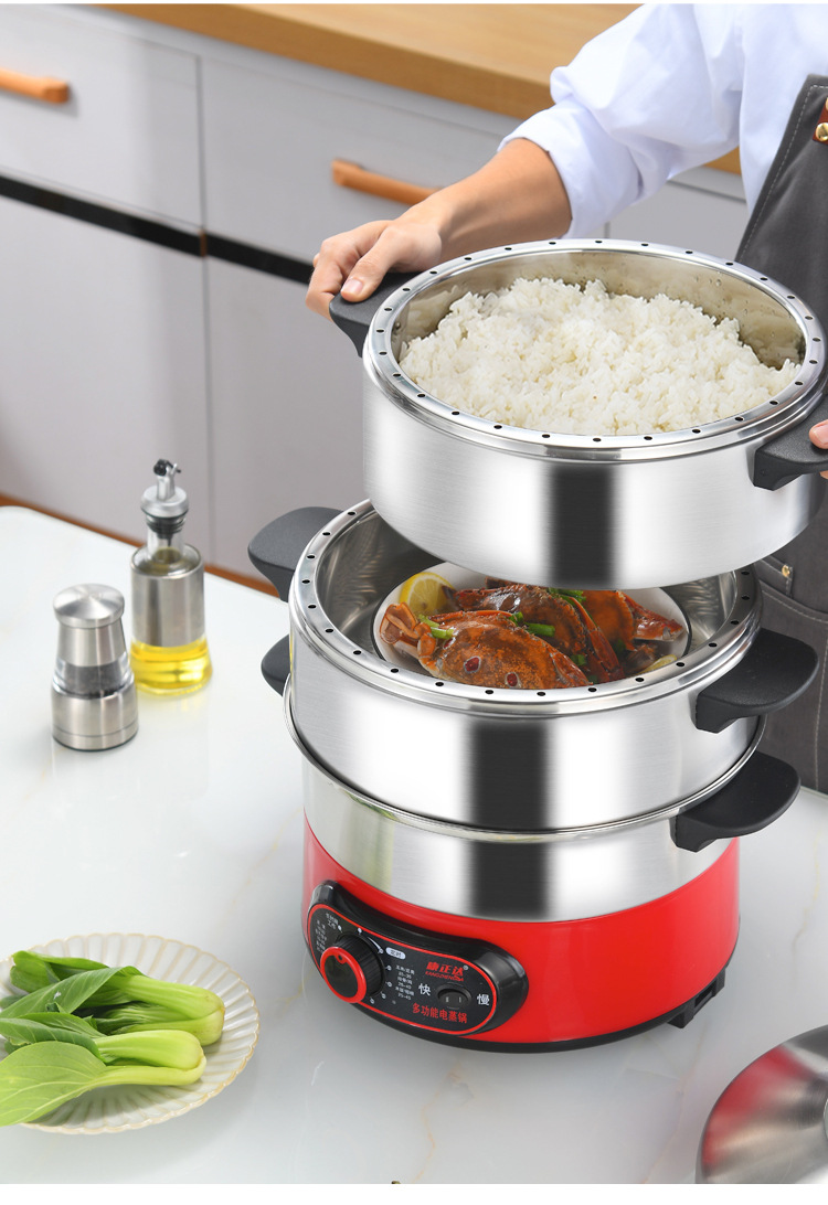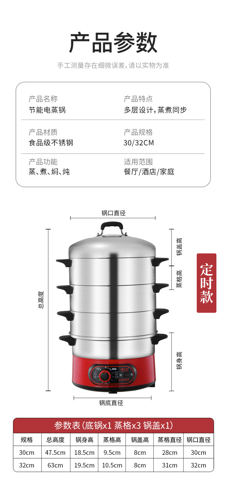 타이밍 다층 전기 찜기 두꺼운 스테인리스 스틸 빠르고 느린 기어 멀티 파워 에너지 절약 비 스트링 오리지널 대용량 비 다공성 식품 찜기