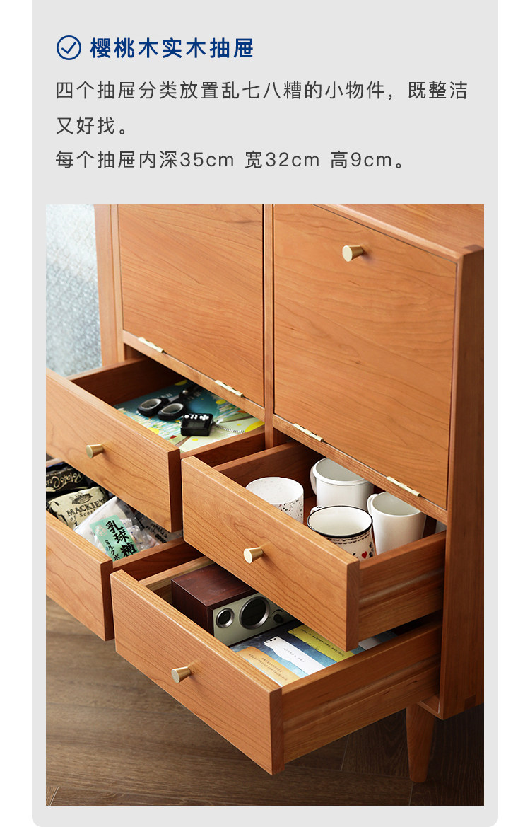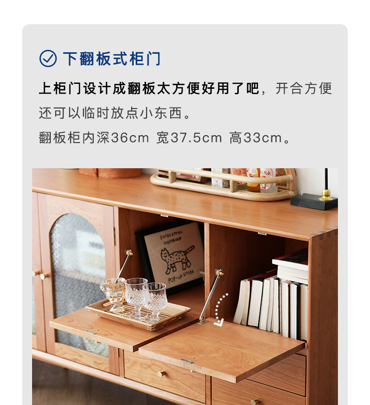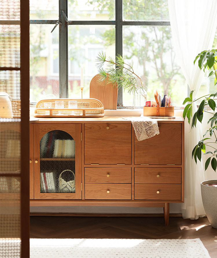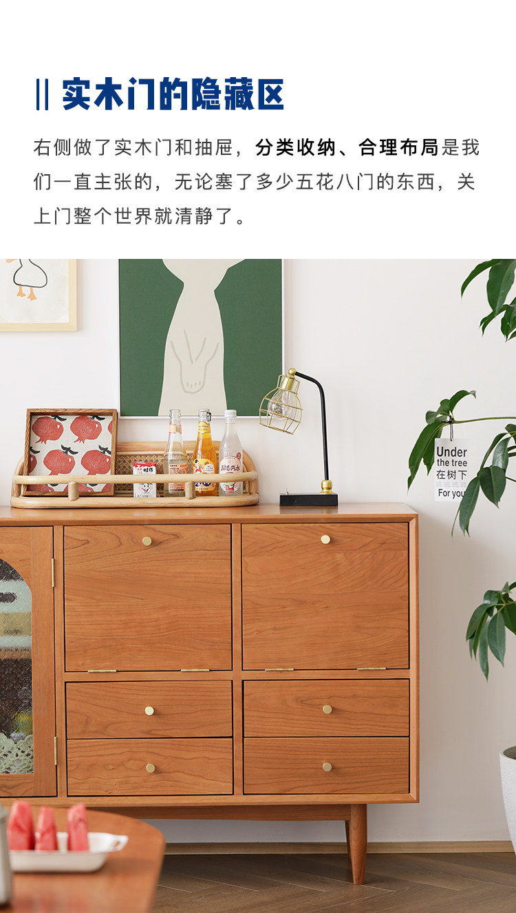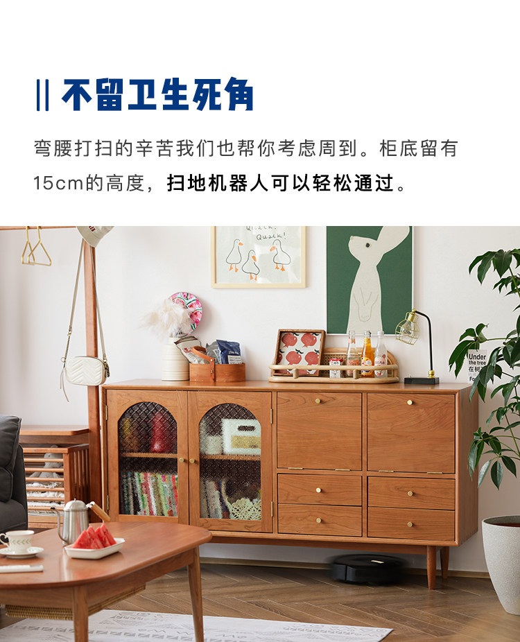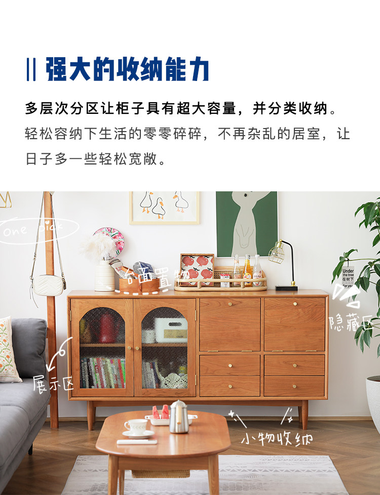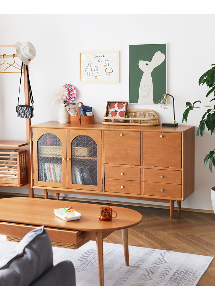 북유럽 솔리드 우드 사이드 보드 가정용 간단한 보관 캐비닛 와인 캐비닛 일본식 복고풍 다기능 거실 차 캐비닛