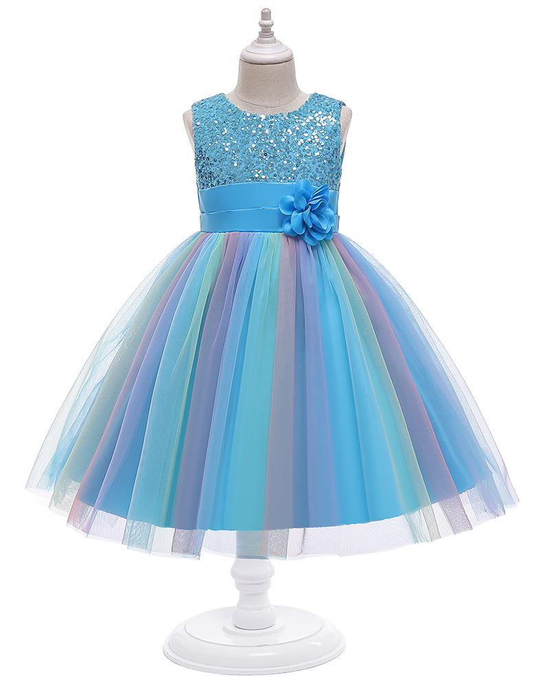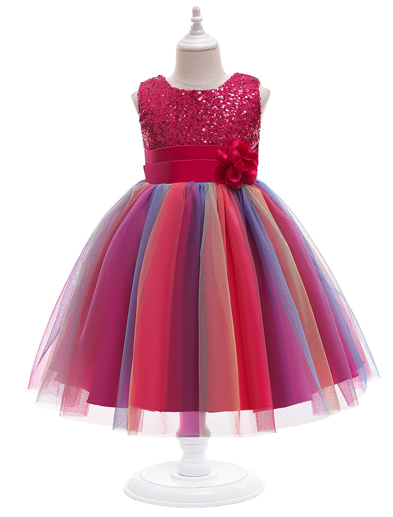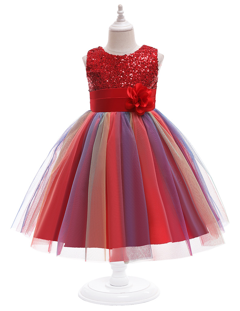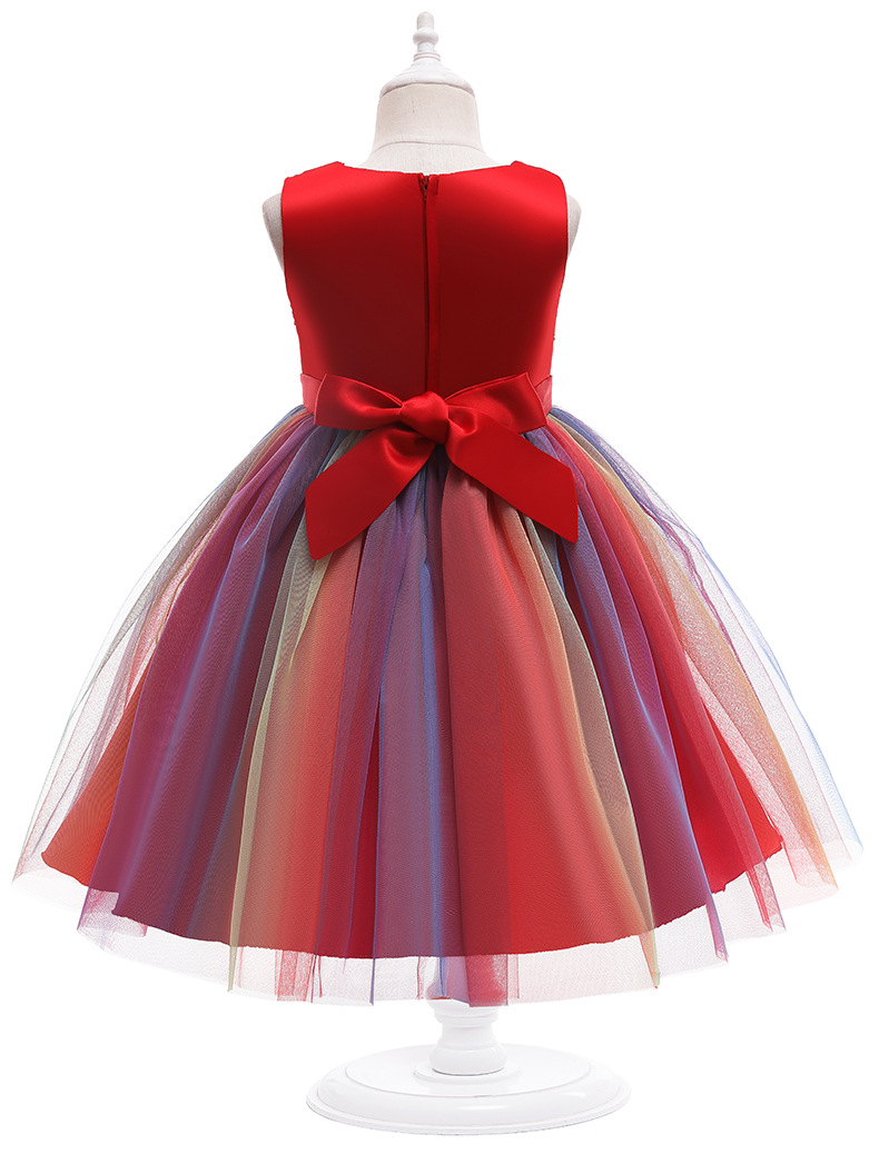 2024 유럽 및 미국 여아 퍼프 드레스 ins 크리스마스 메쉬 공주 드레스 아동복 수출용 키즈 드레스