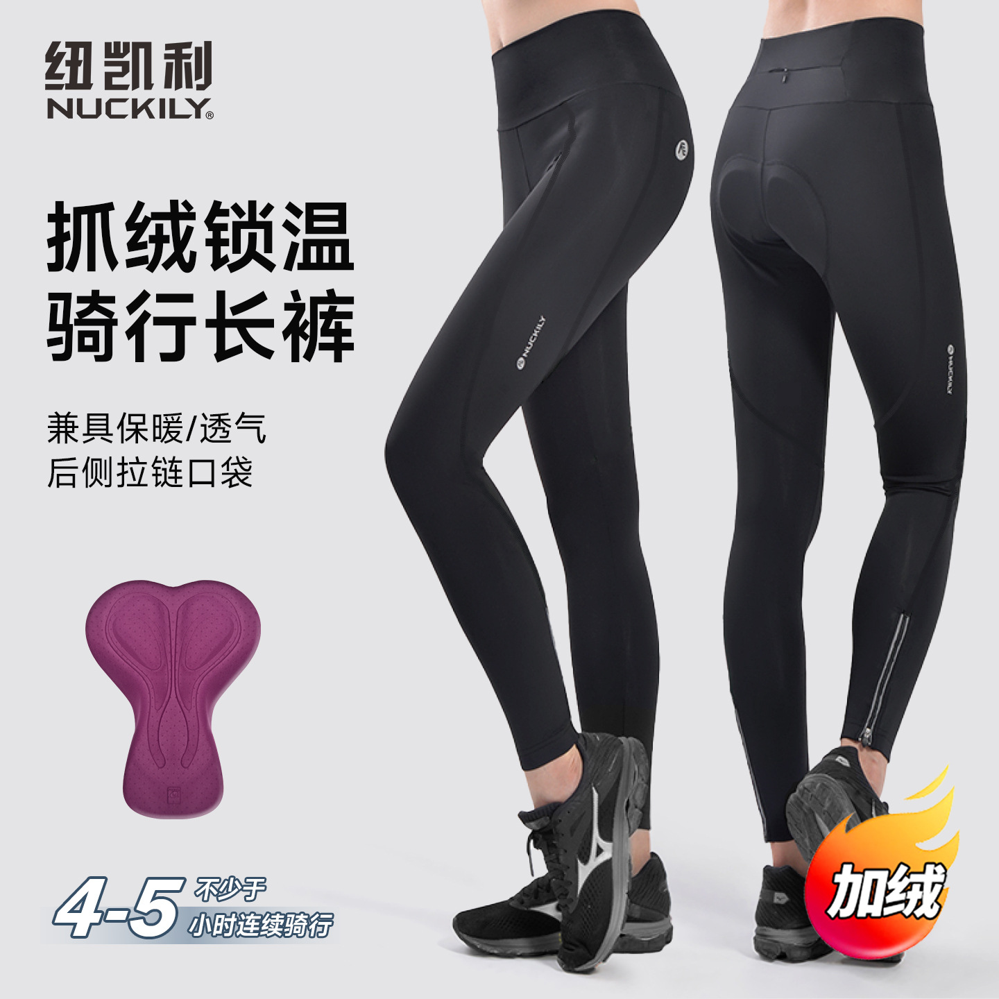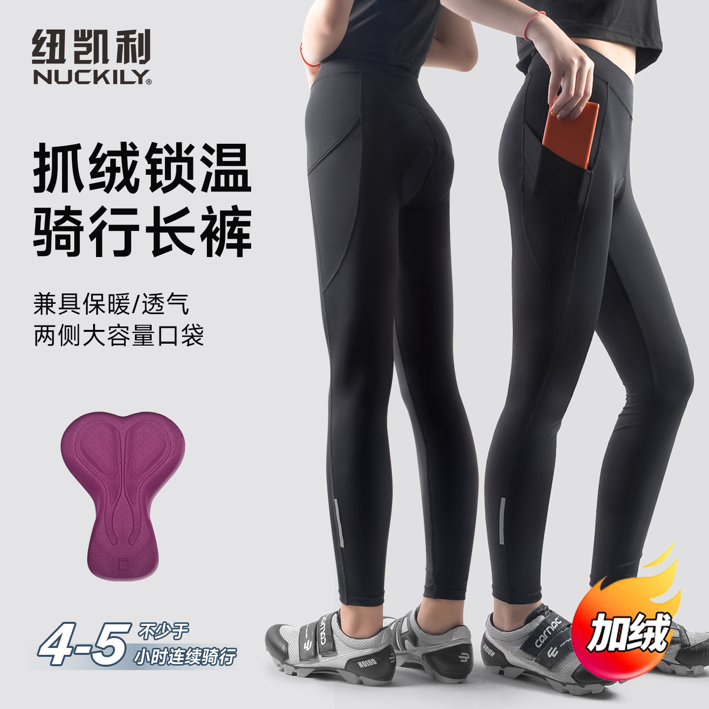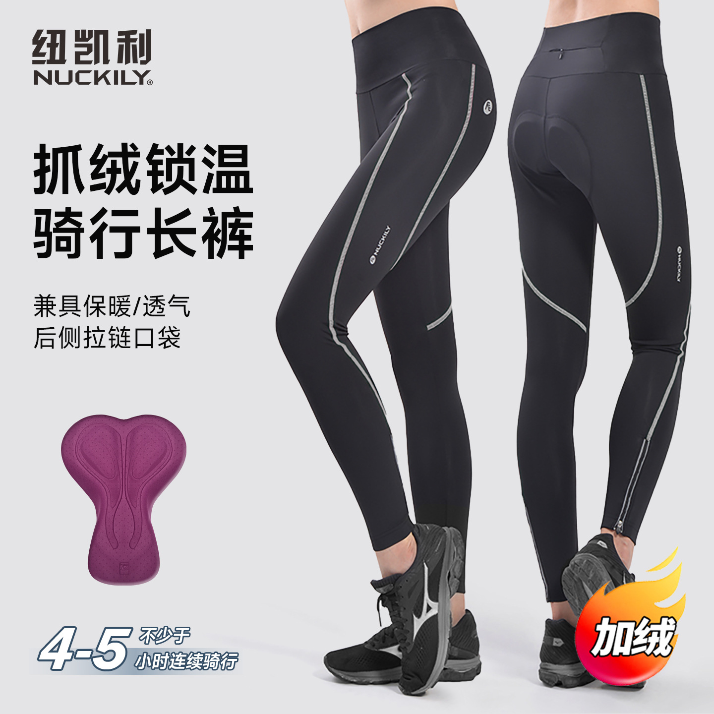 NUCKILY 가을 겨울 플리스 여성용 사이클링 팬츠 하이웨이스트 보온 여성용 긴바지 사이클링 의류 및 장비