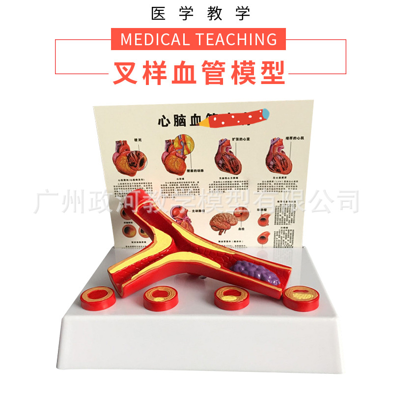 本模型,真人比例放大10倍,显示血管内/凝血以及(血栓)在动/脉/粥/样/硬化斑块不同病理阶段 有显示动脉狭窄 对人体的危害