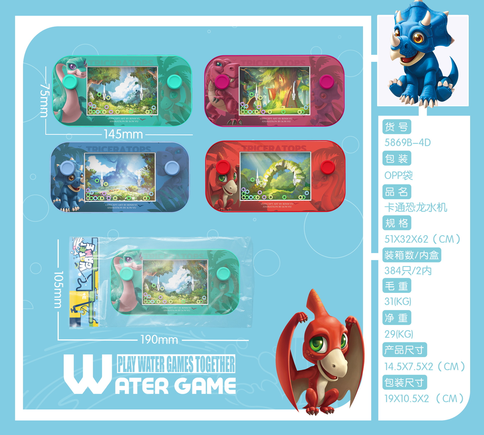 • 5869B-4D [만화 공룡 워터 머신]