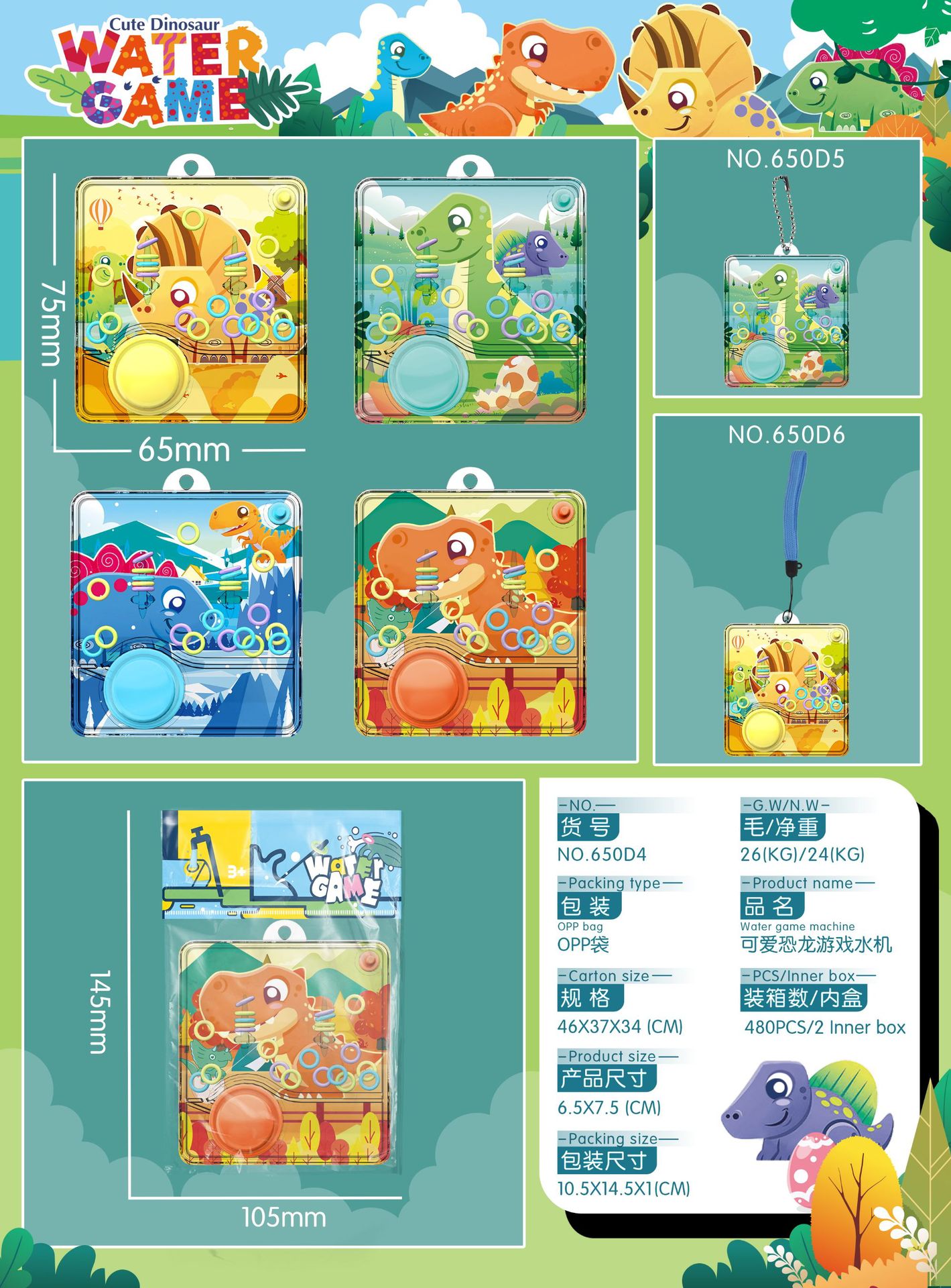 • 끈 부착 650D4 [귀여운 공룡 링 워터 머신]