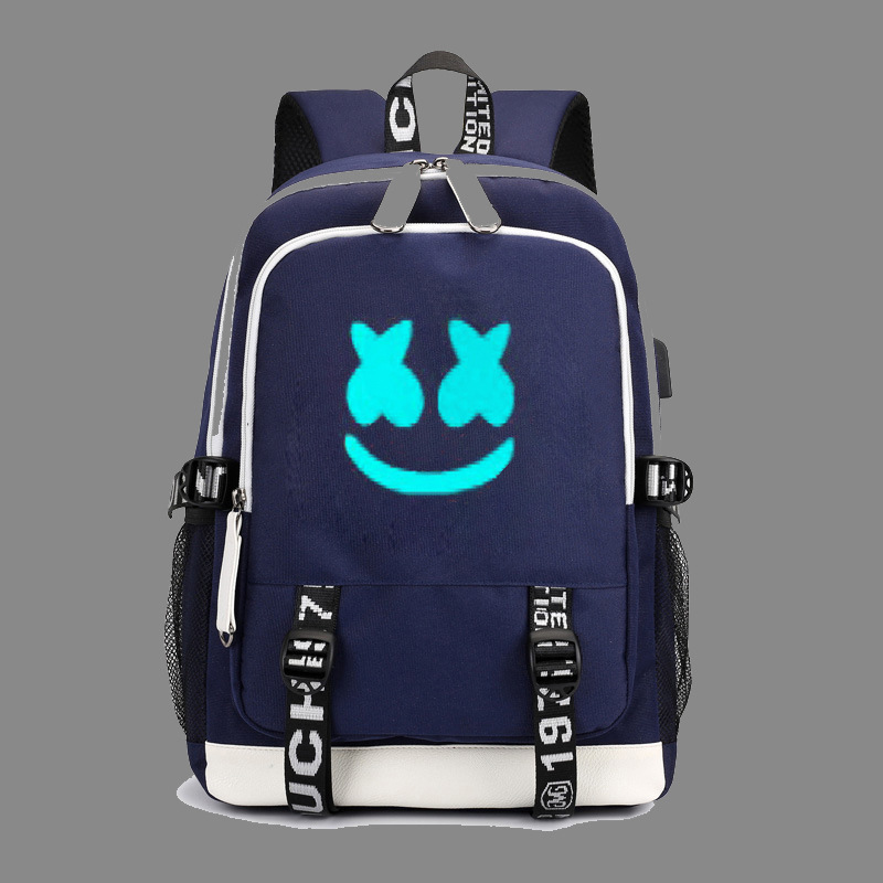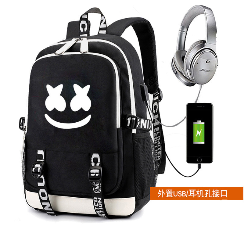 DJ 마시멜로 오디오 마시멜로 백팩 USB 충전 배낭 컴퓨터 가방 트렌디 한 학생 책가방