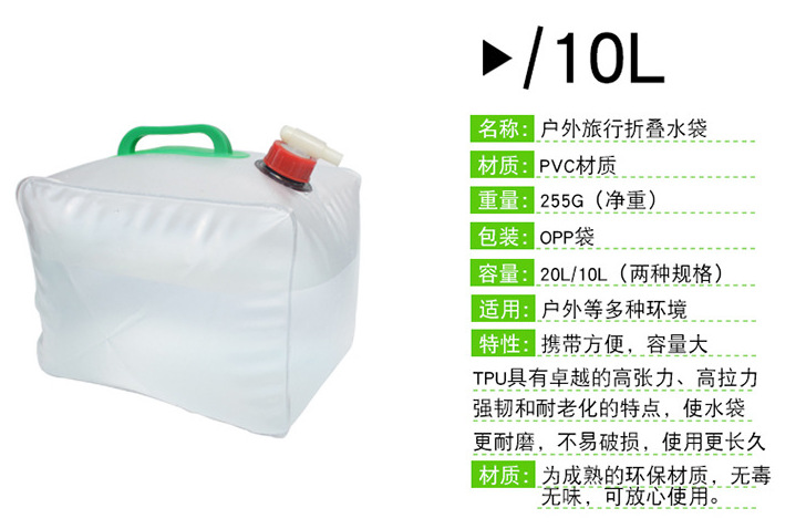 주전자 휴대용 용기 야외 식수 가방 투명 야외 접이식 물 가방 물 20l 양동이 물 보관 가방
