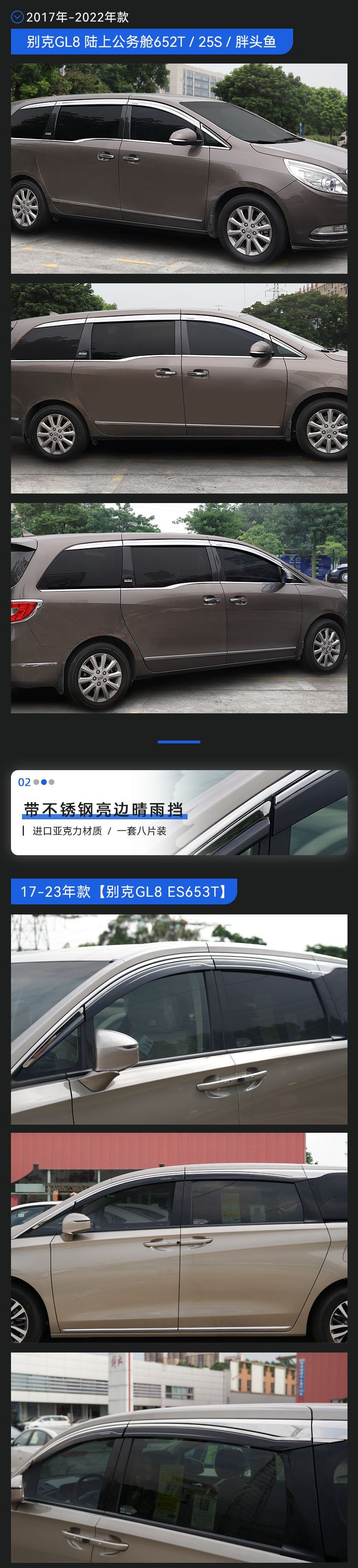 • [GL8-Business 클래스 652t] 10-지금까지 스테인리스 스틸 엣지 레인 실드가 있는 오리지널 팩토리 (8 피스 팩)