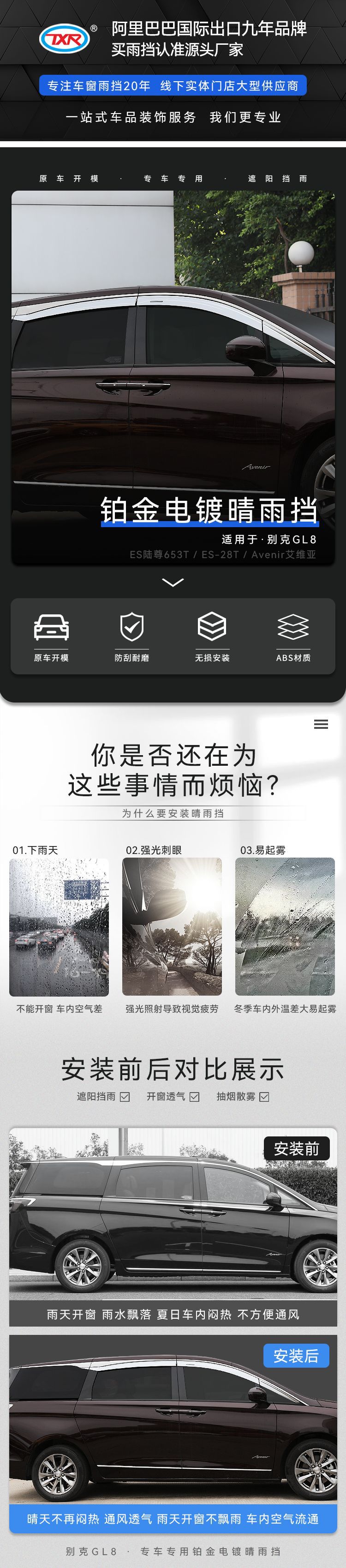 Texinrui는 뷰익 GL8 레인 쉴드에 적합합니다 Avia 뚱뚱한 머리 물고기 자동차 창 비 눈썹 수정 백금 레인 쉴드스토어 가기