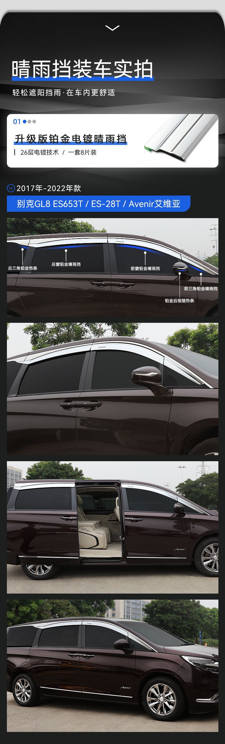 • [GL8-ES Lu Zun 653t] 17-최신 스페셜 플래티넘 레인 실드 + 백미러 트림 (10 개)