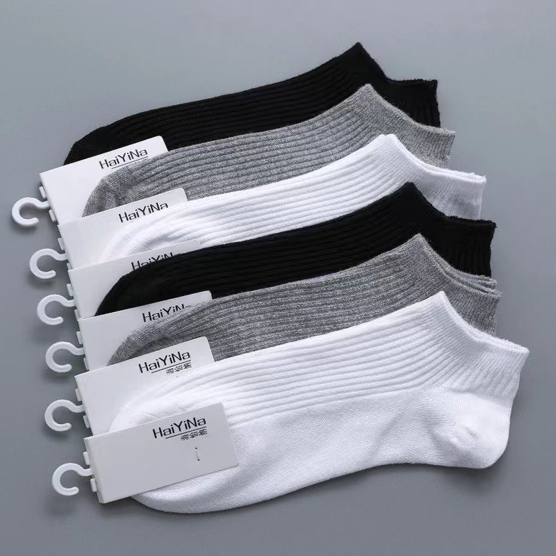 Haiyina 솔리드 컬러 코튼 양말 남성 양말 가을, 겨울 탈취제 및 땀 흡수 봄 스포츠 흰색 양말 흑백 짧은 튜브 여름 보트