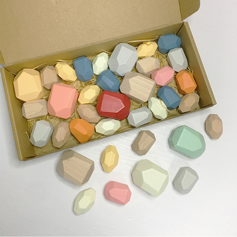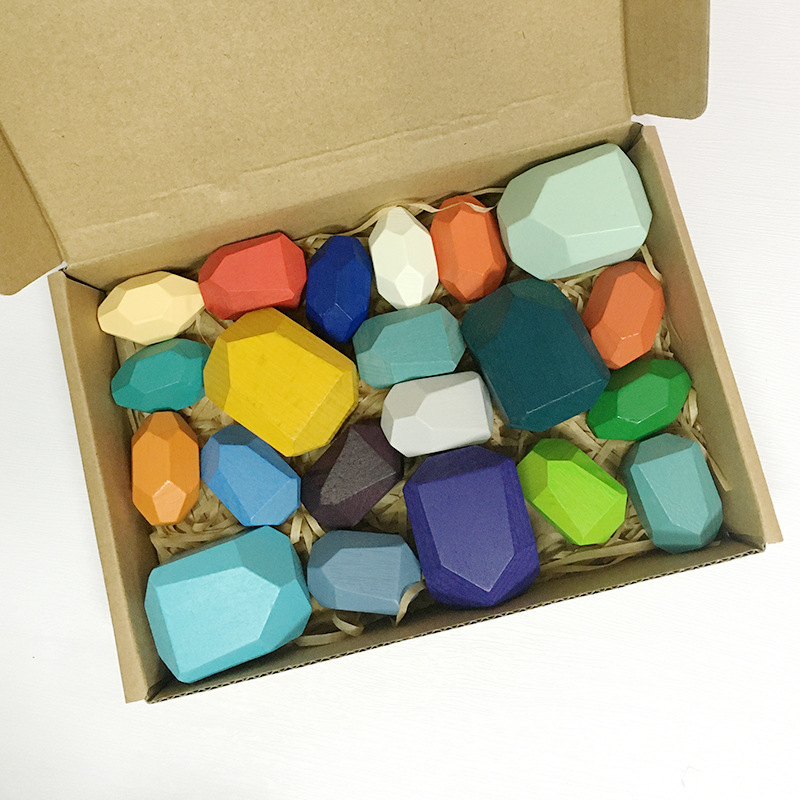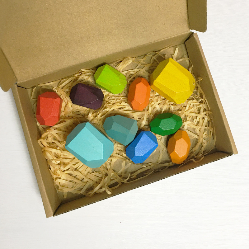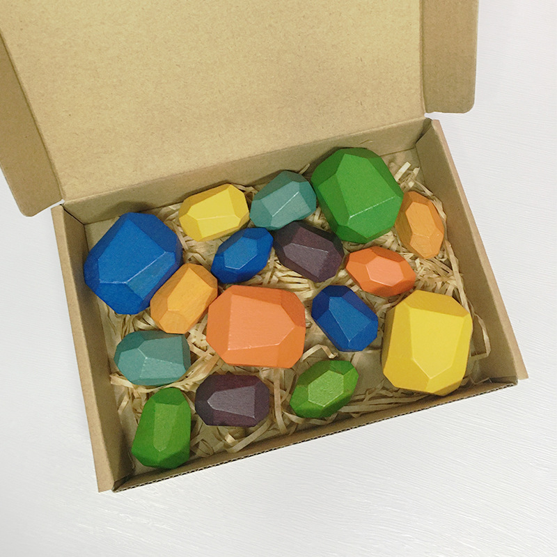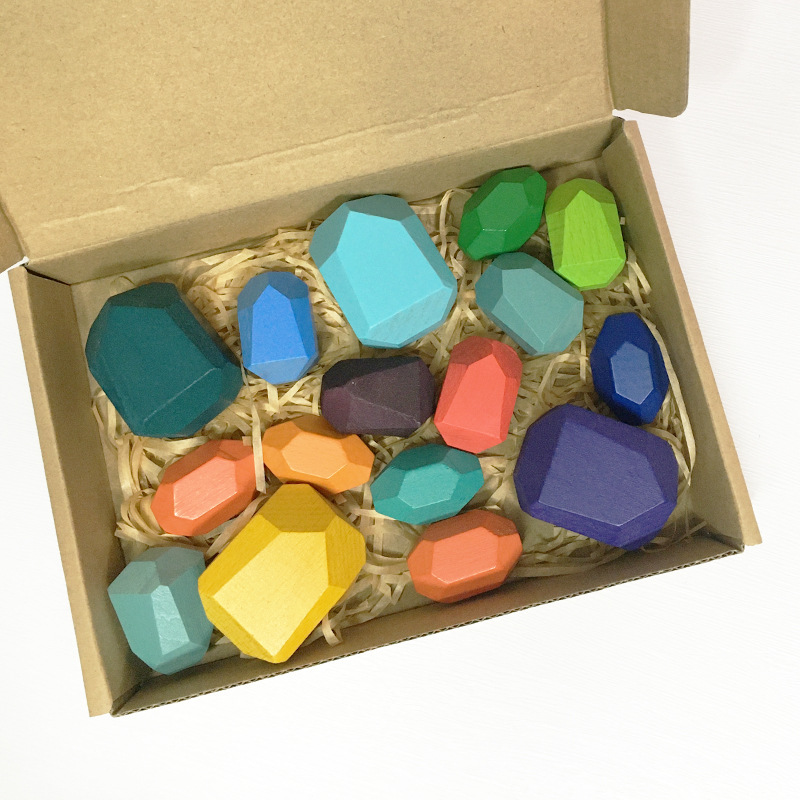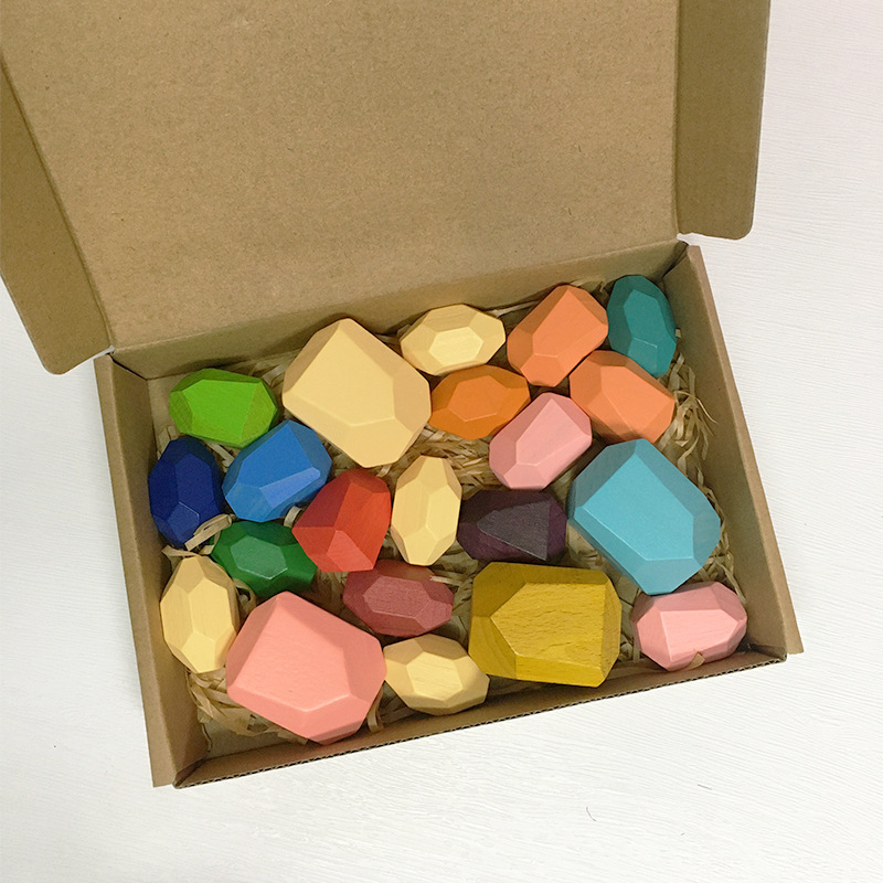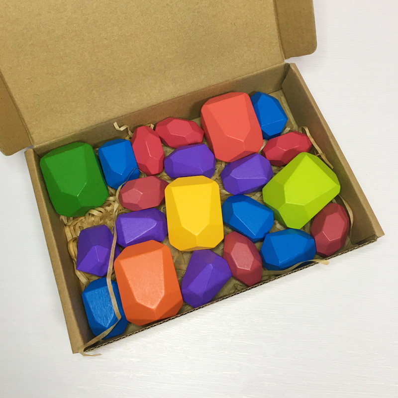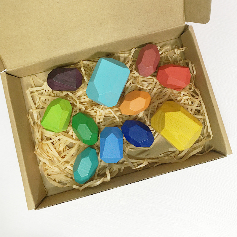 아마존 인 레인보우 빌딩 블록 돌 쌓인 하이 컬러 어린이 퍼즐 빌딩 블록 대형 입자 나무 장난감