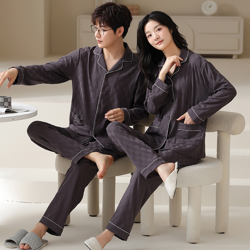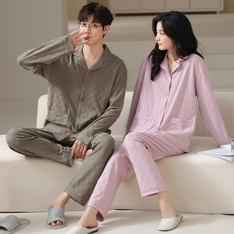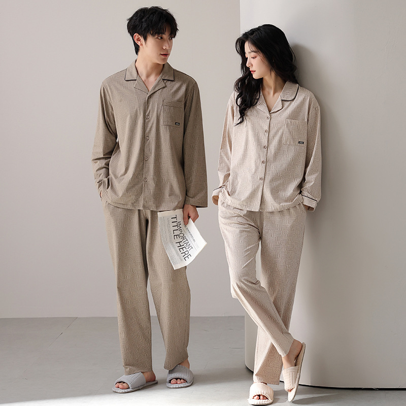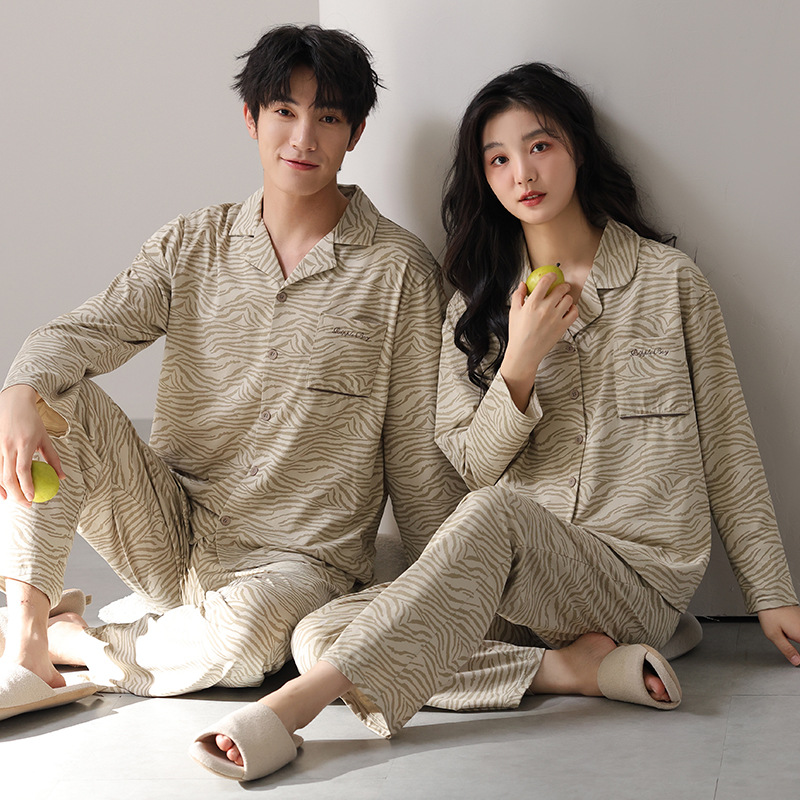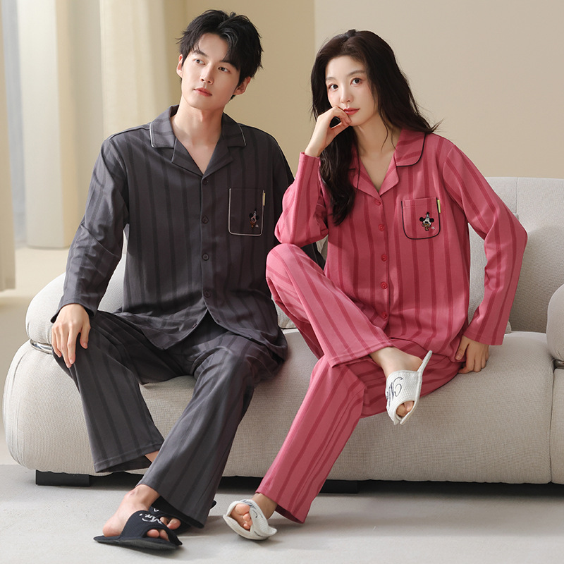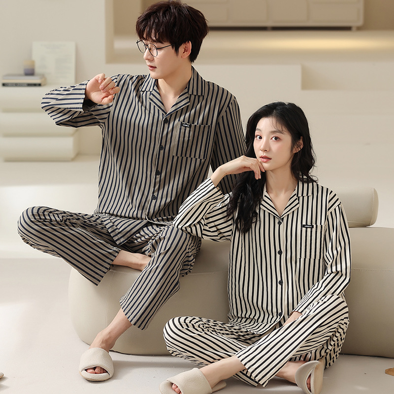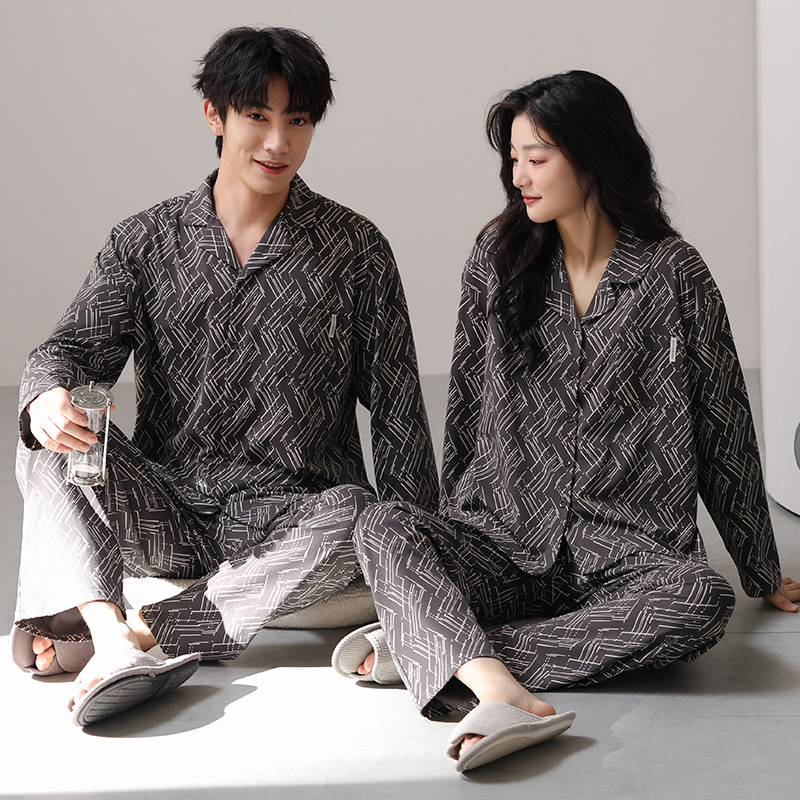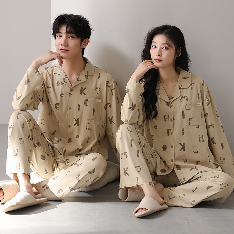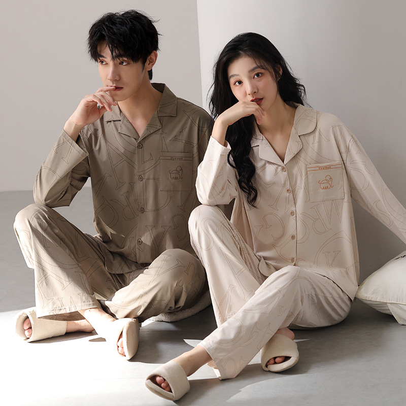 고품질 한국 스타일 커플 잠옷 모달 코튼 가을 겨울 신상 여성 긴팔 가디건 남성 가을 홈웨어스토어 가기