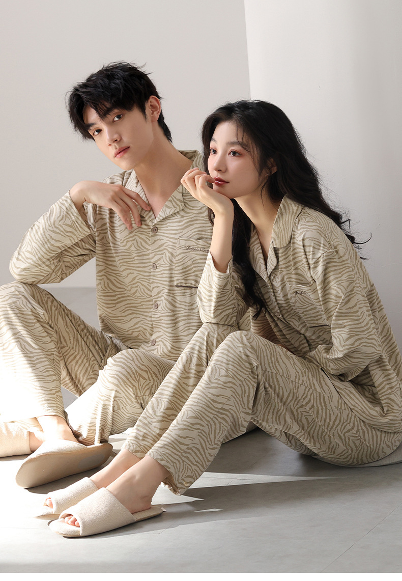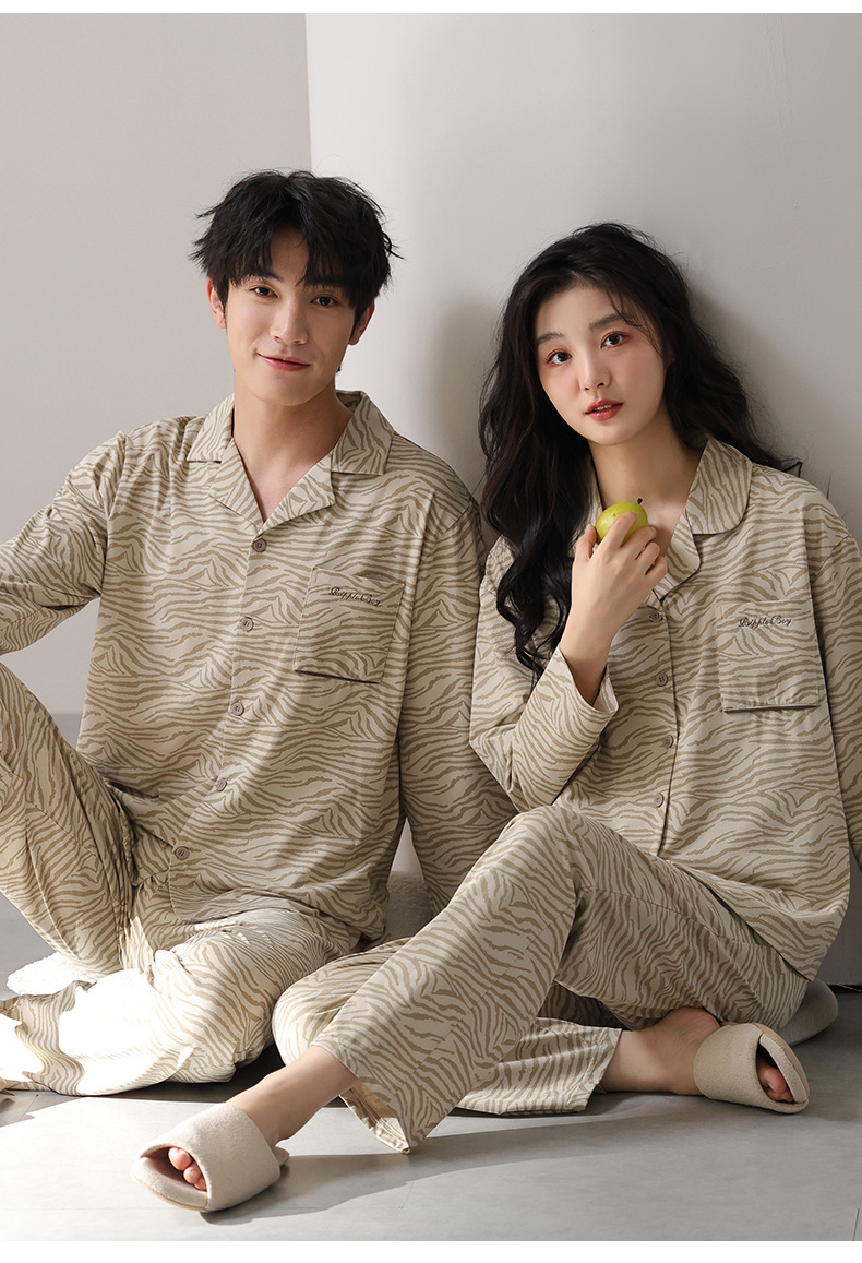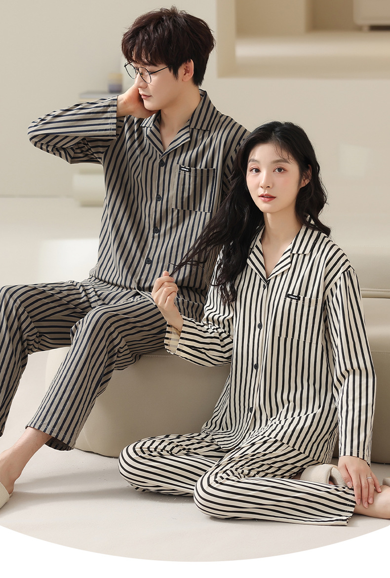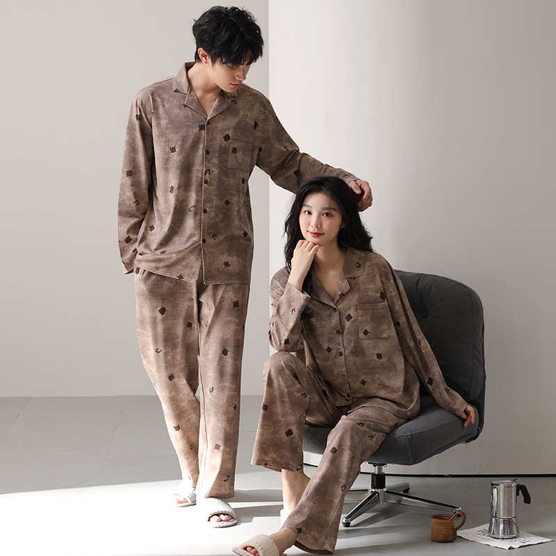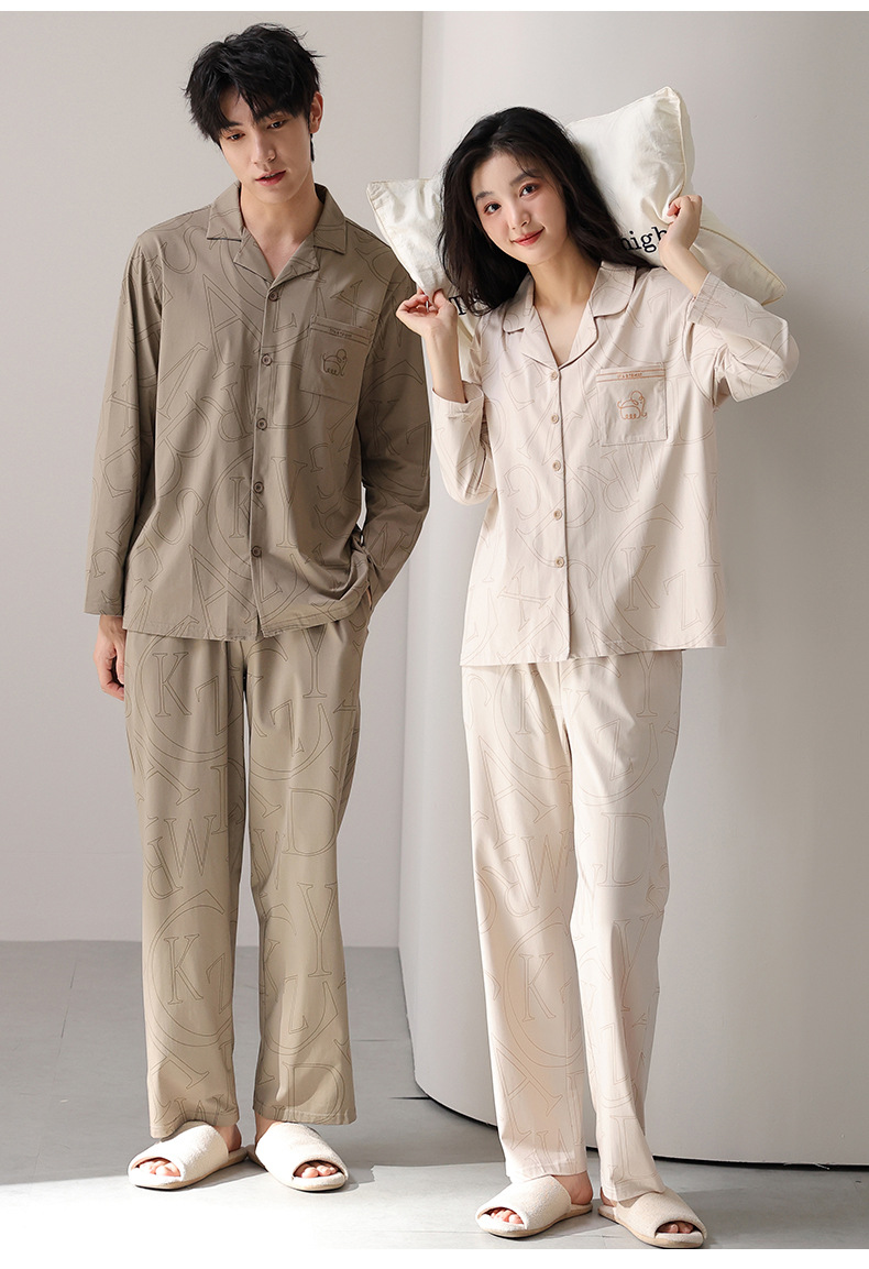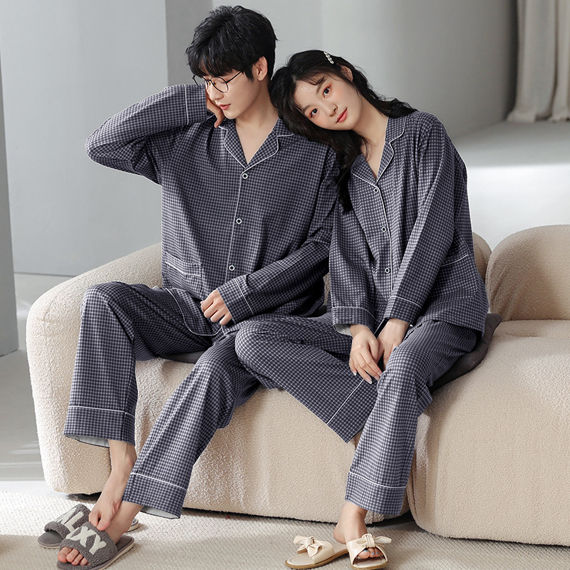고품질 한국 스타일 커플 잠옷 모달 코튼 가을 겨울 신상 여성 긴팔 가디건 남성 가을 홈웨어스토어 가기