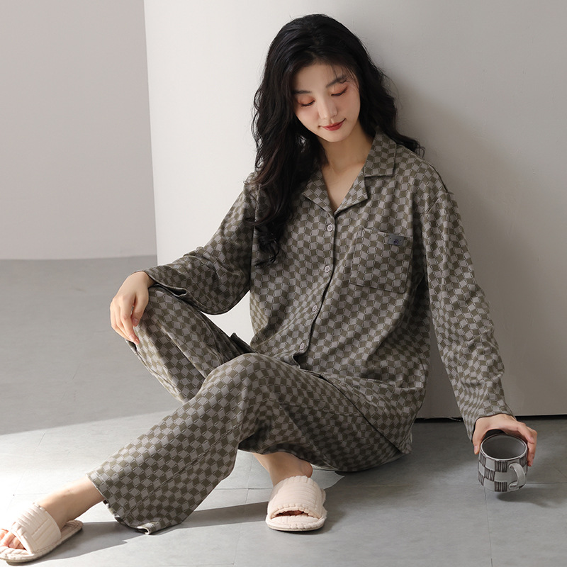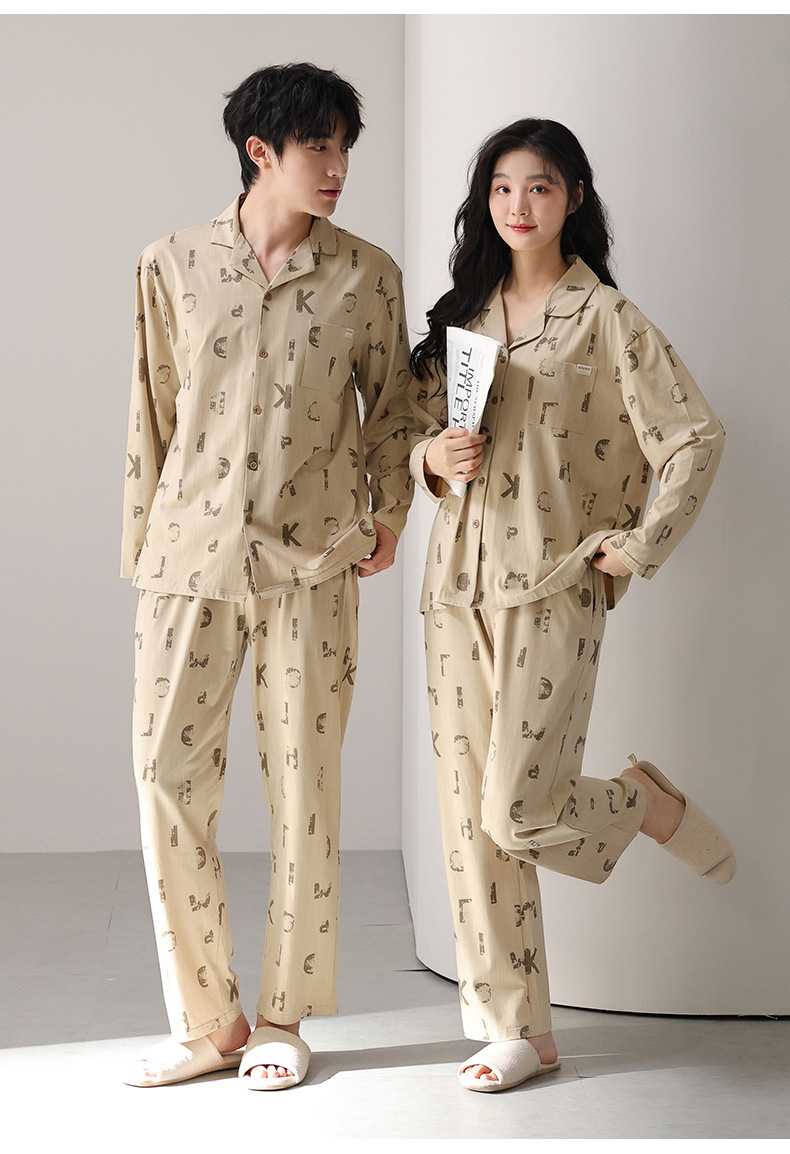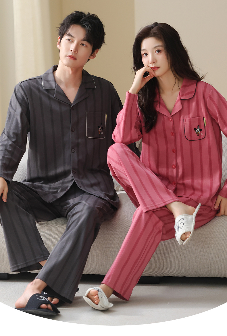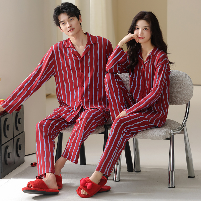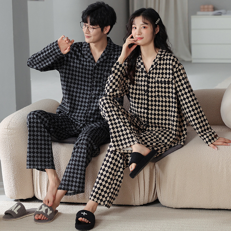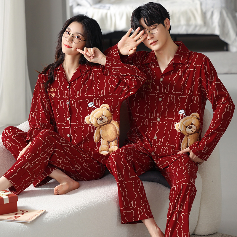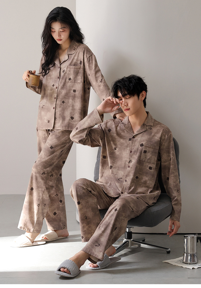 고품질 한국 스타일 커플 잠옷 모달 코튼 가을 겨울 신상 여성 긴팔 가디건 남성 가을 홈웨어스토어 가기