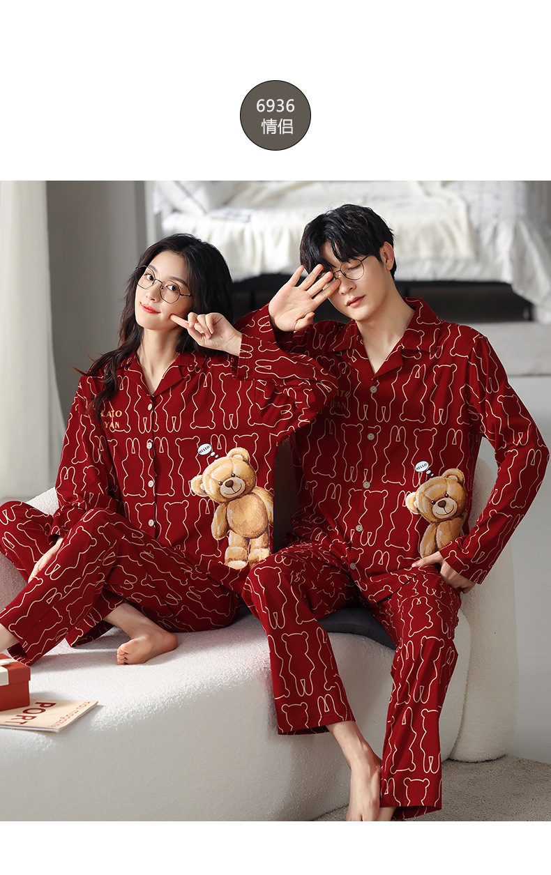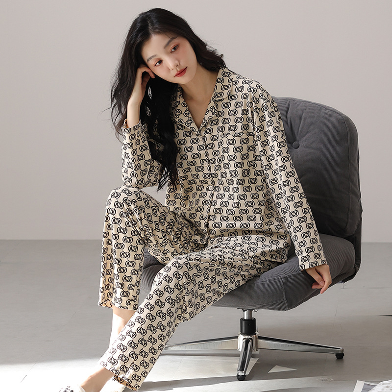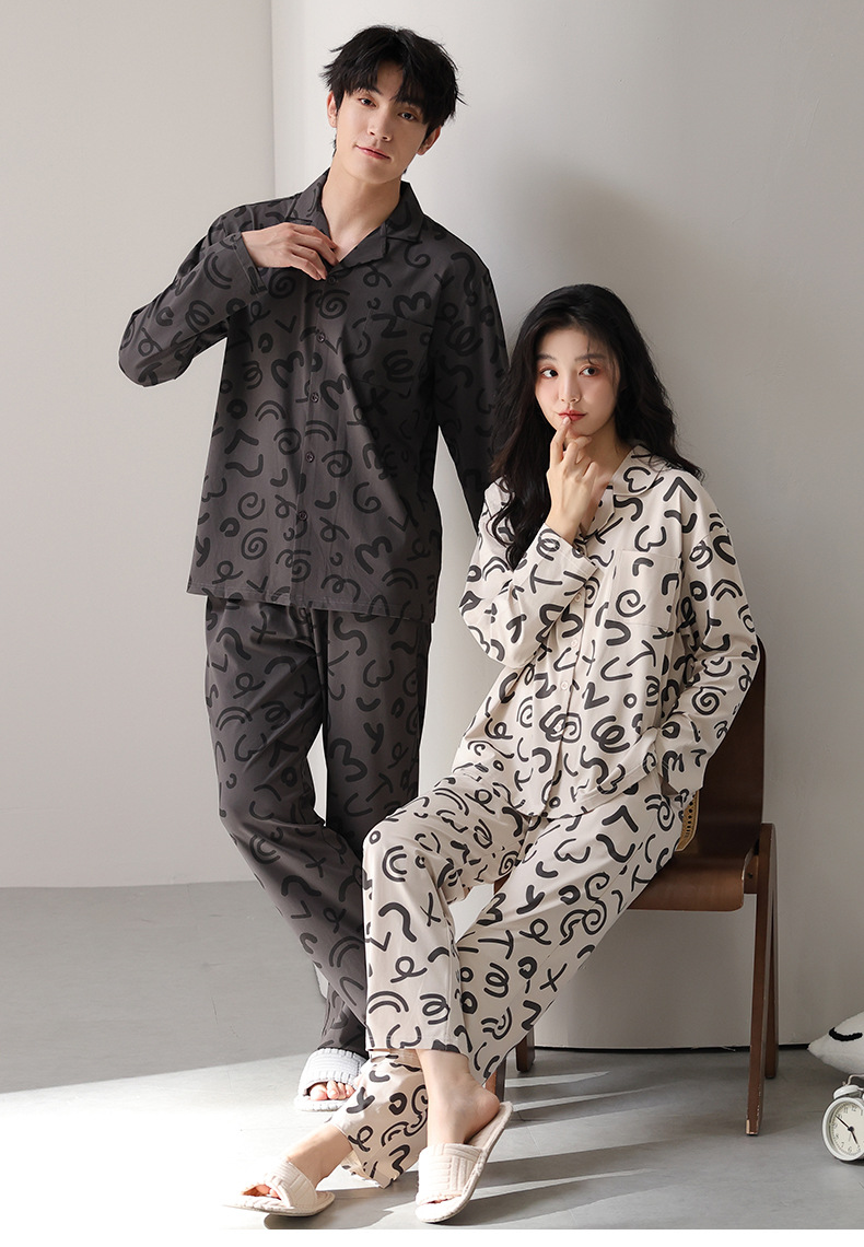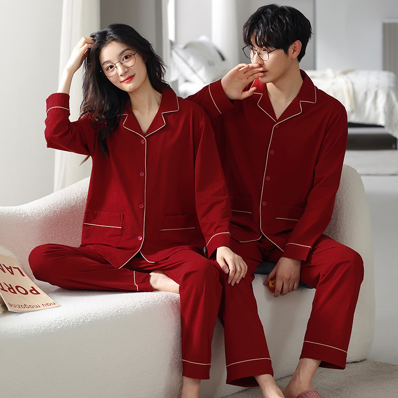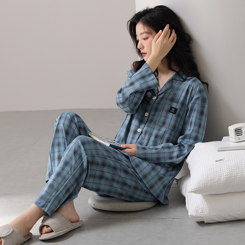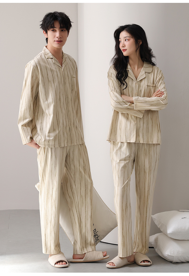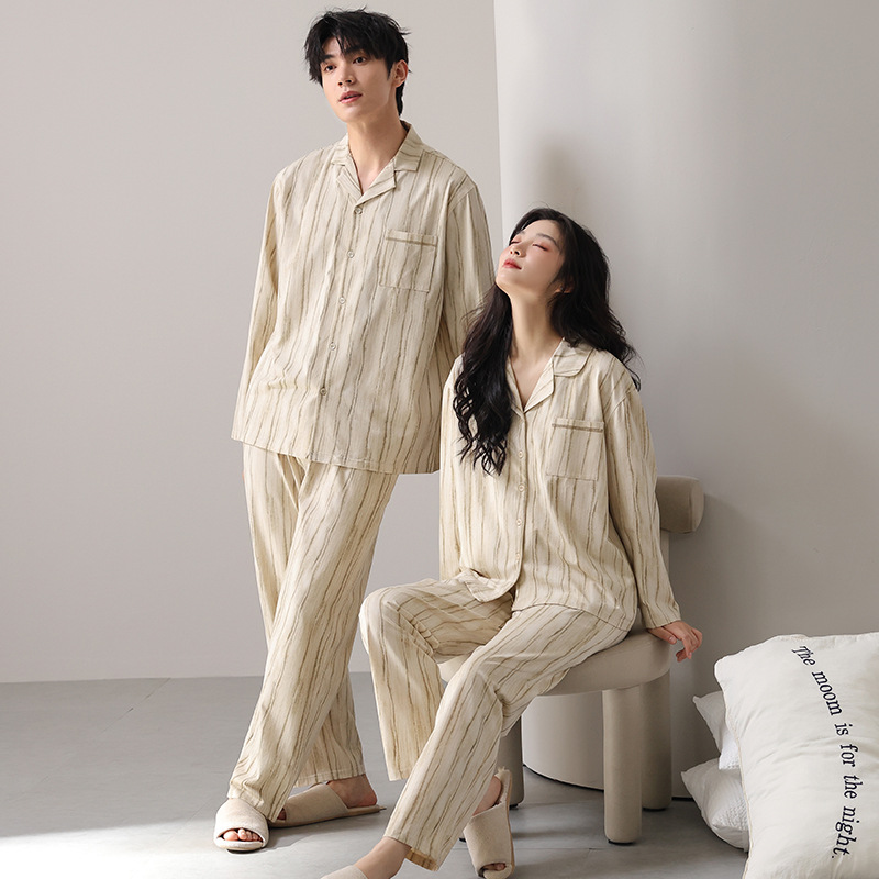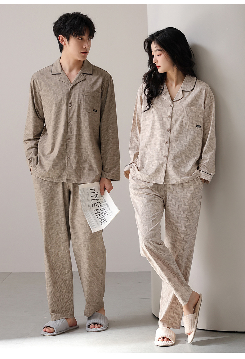 고품질 한국 스타일 커플 잠옷 모달 코튼 가을 겨울 신상 여성 긴팔 가디건 남성 가을 홈웨어스토어 가기