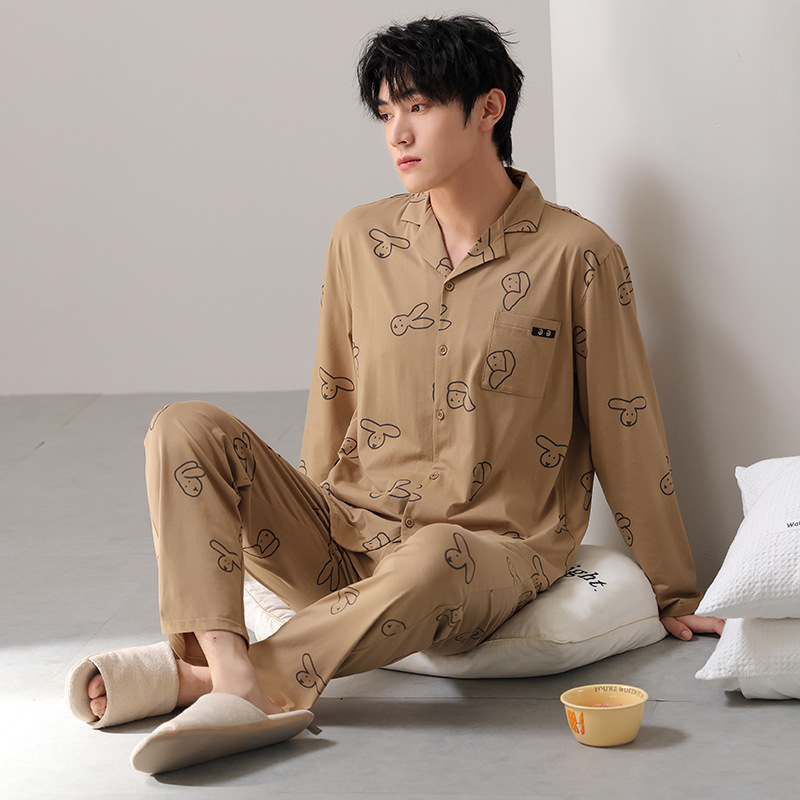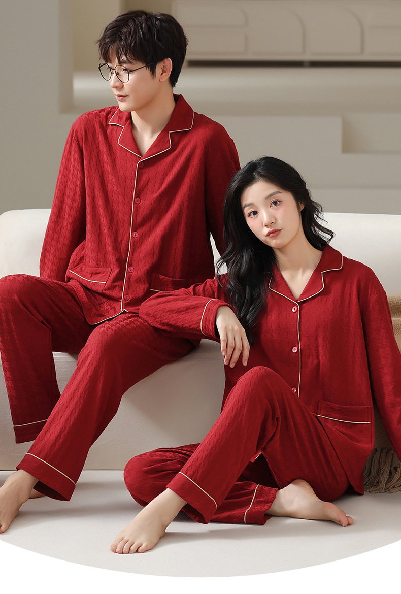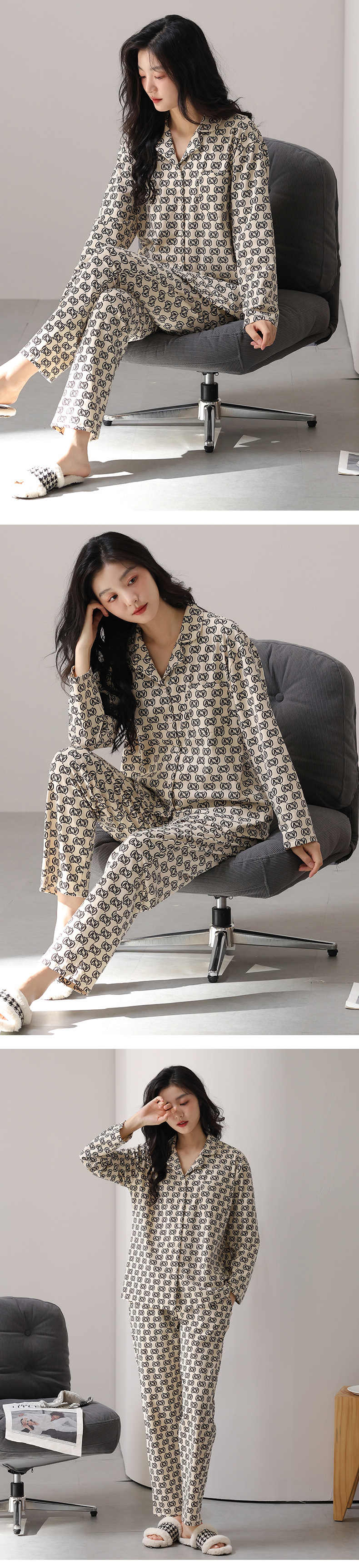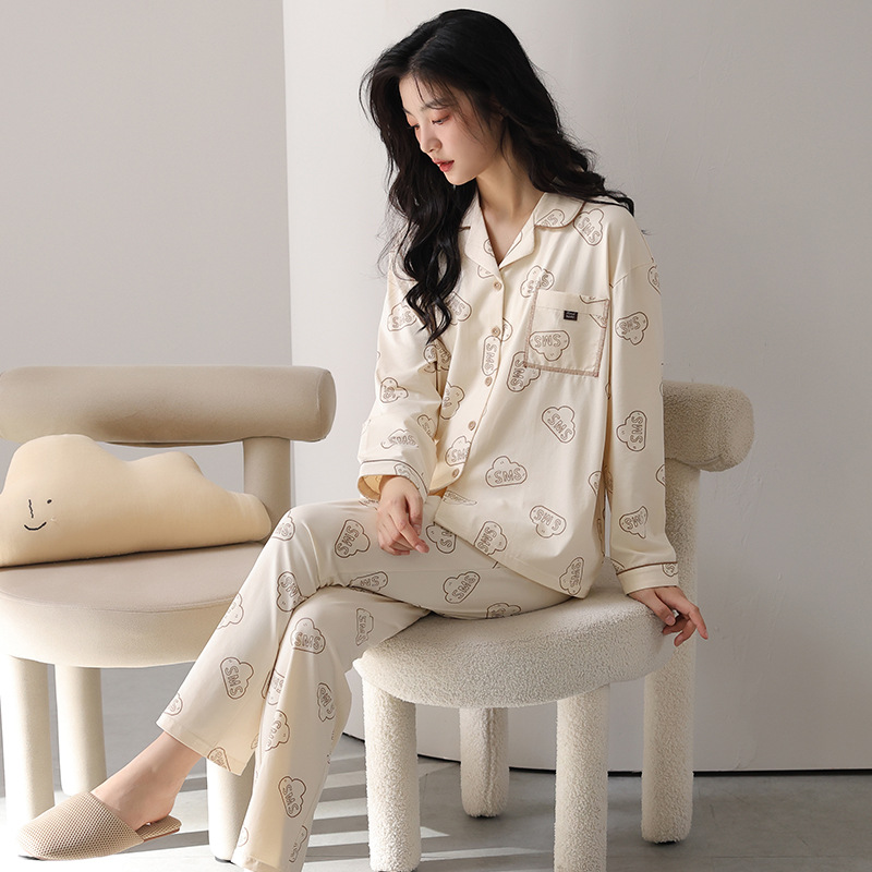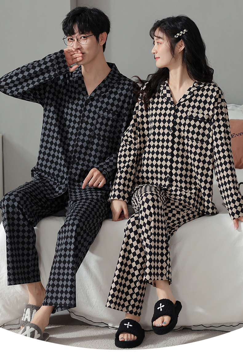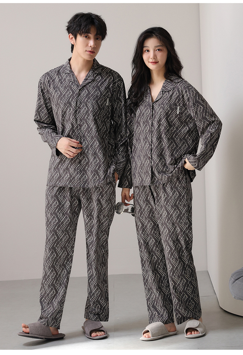 고품질 한국 스타일 커플 잠옷 모달 코튼 가을 겨울 신상 여성 긴팔 가디건 남성 가을 홈웨어스토어 가기