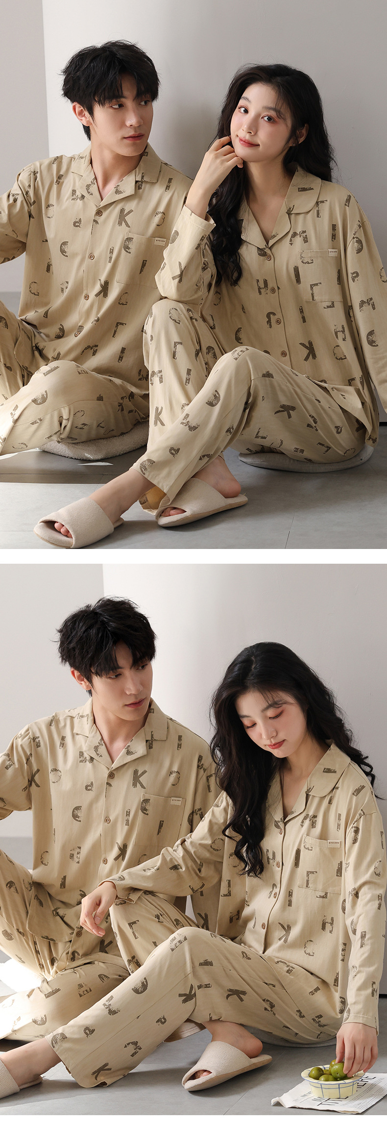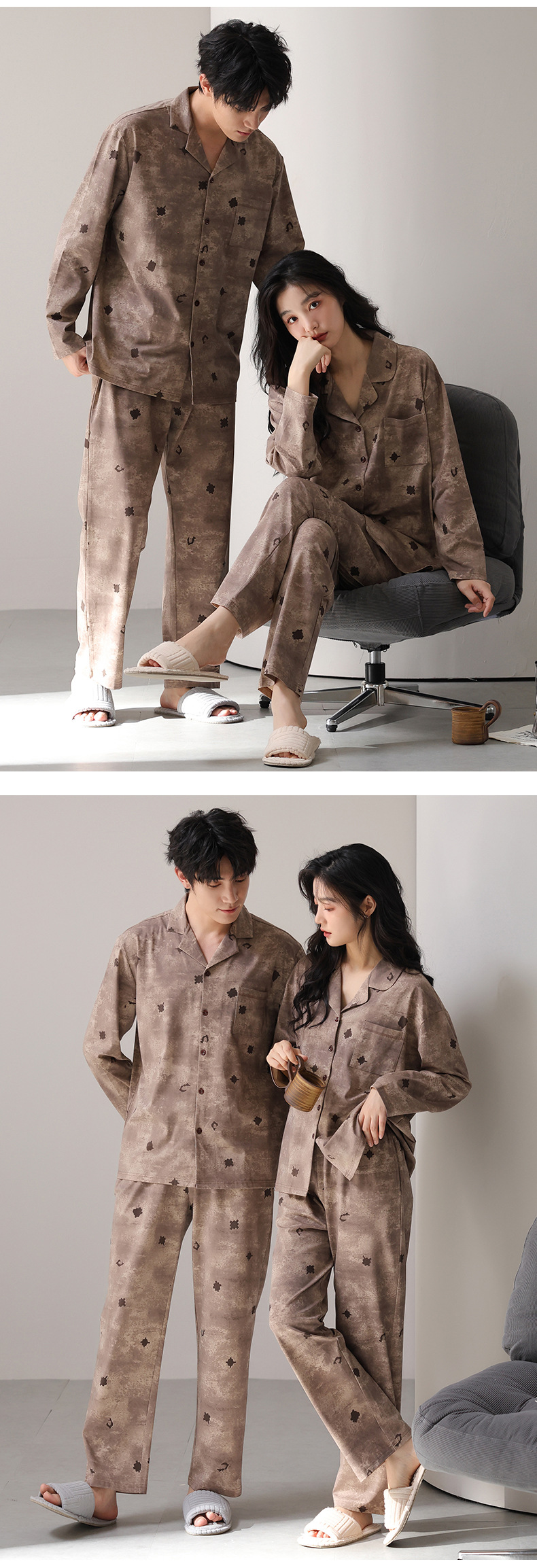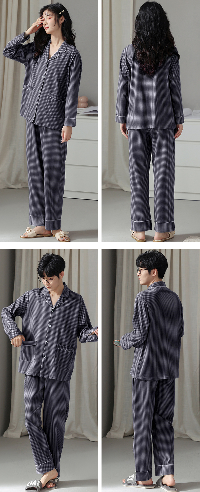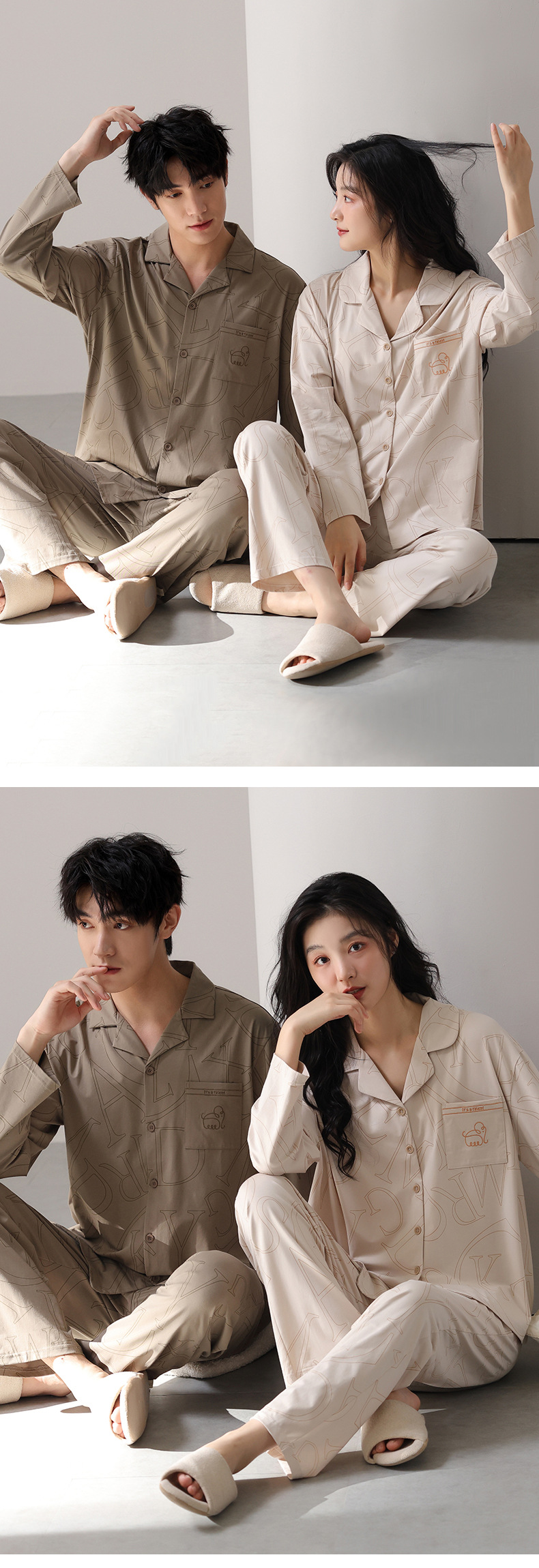 고품질 한국 스타일 커플 잠옷 모달 코튼 가을 겨울 신상 여성 긴팔 가디건 남성 가을 홈웨어스토어 가기