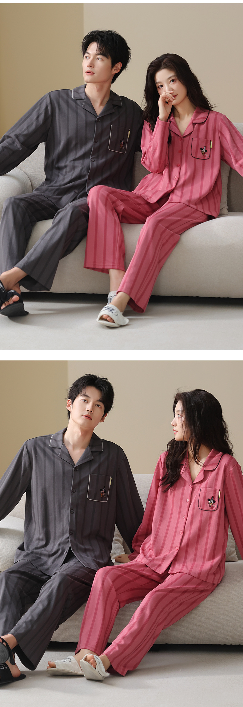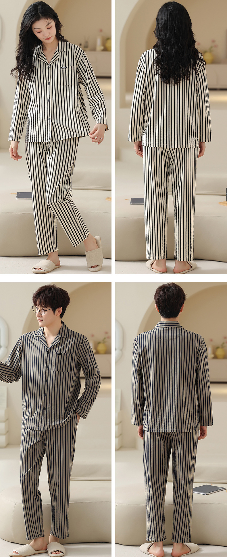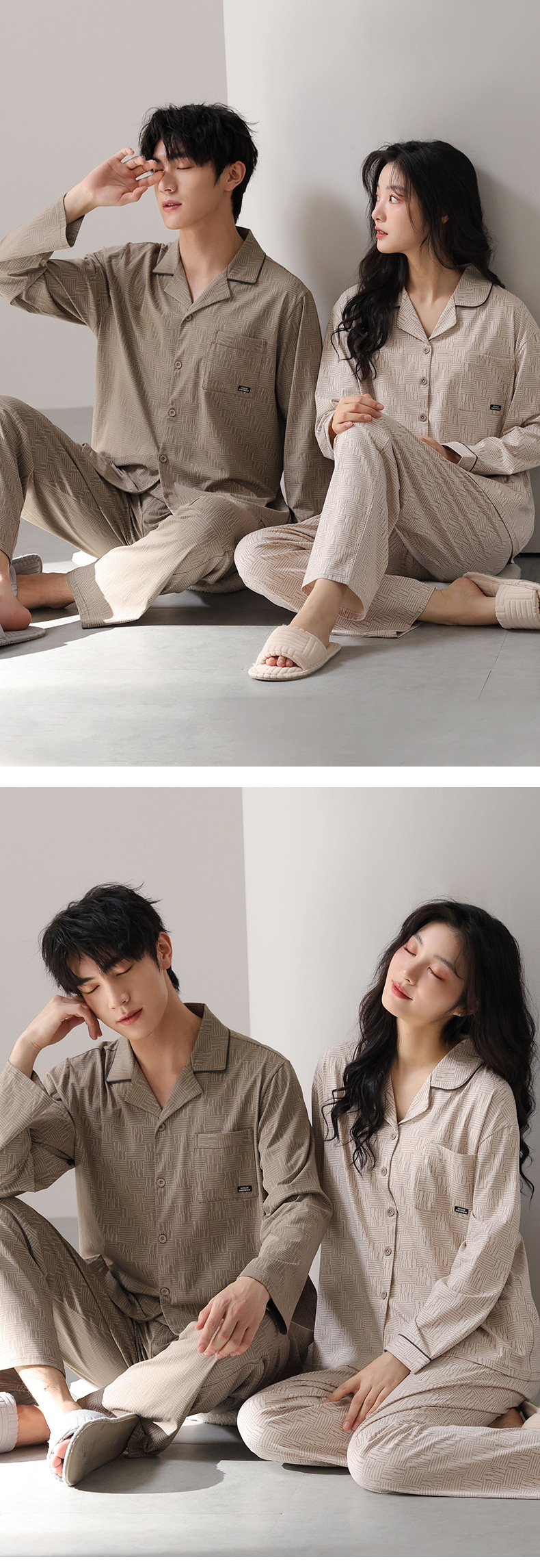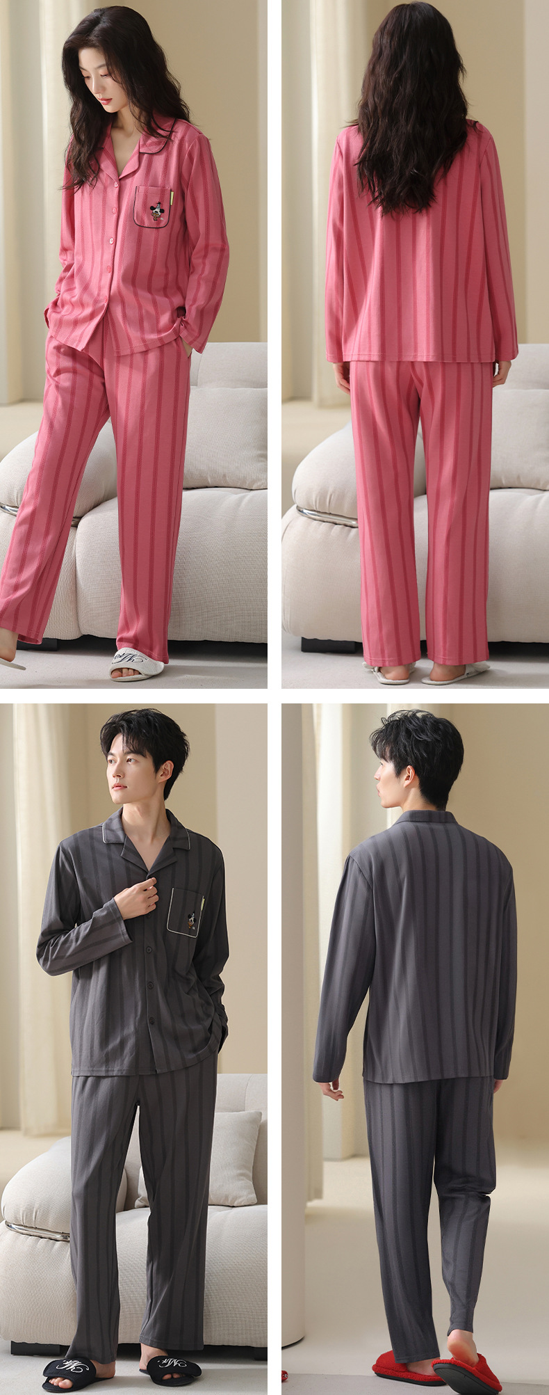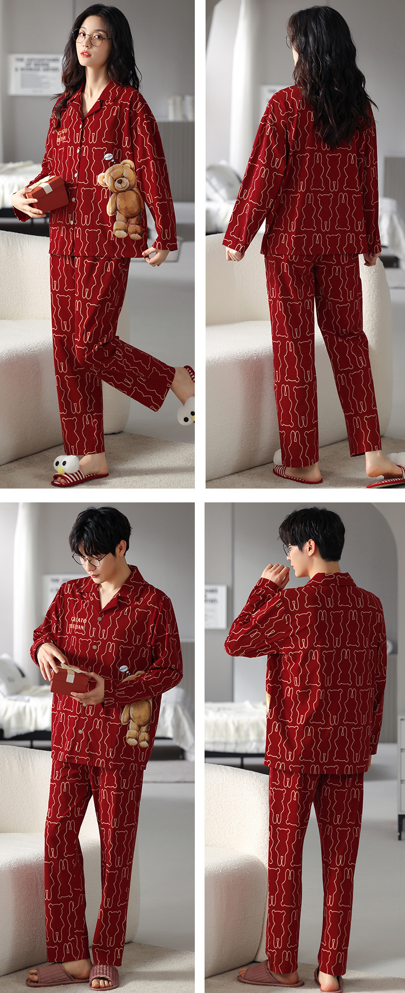 고품질 한국 스타일 커플 잠옷 모달 코튼 가을 겨울 신상 여성 긴팔 가디건 남성 가을 홈웨어스토어 가기