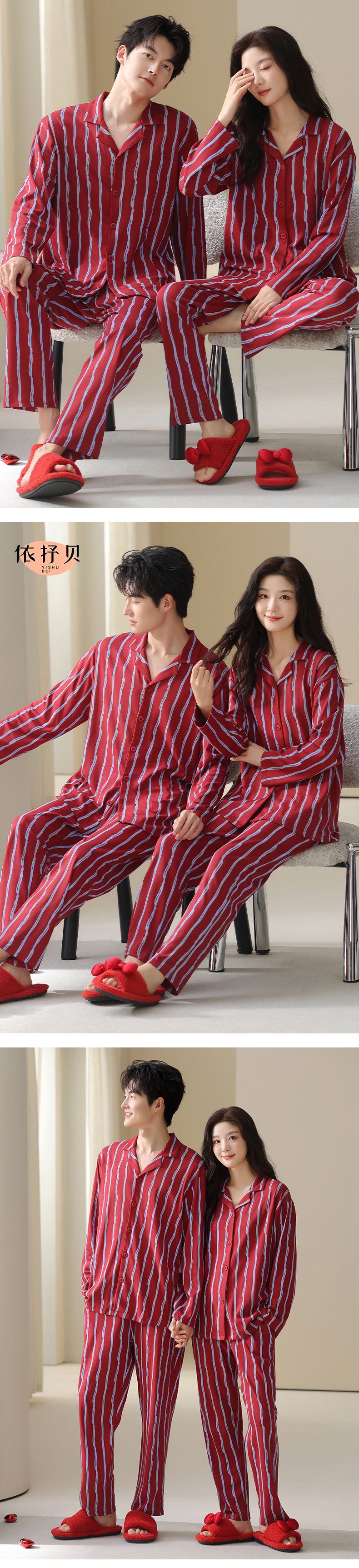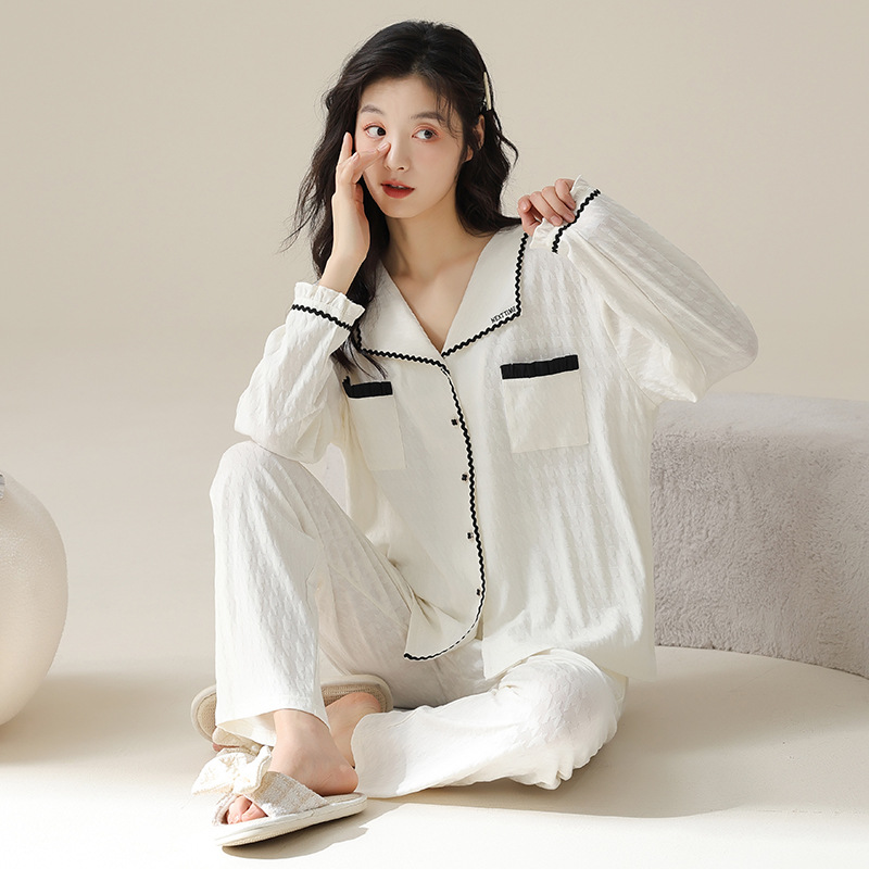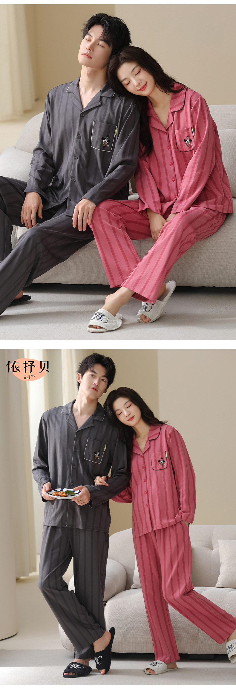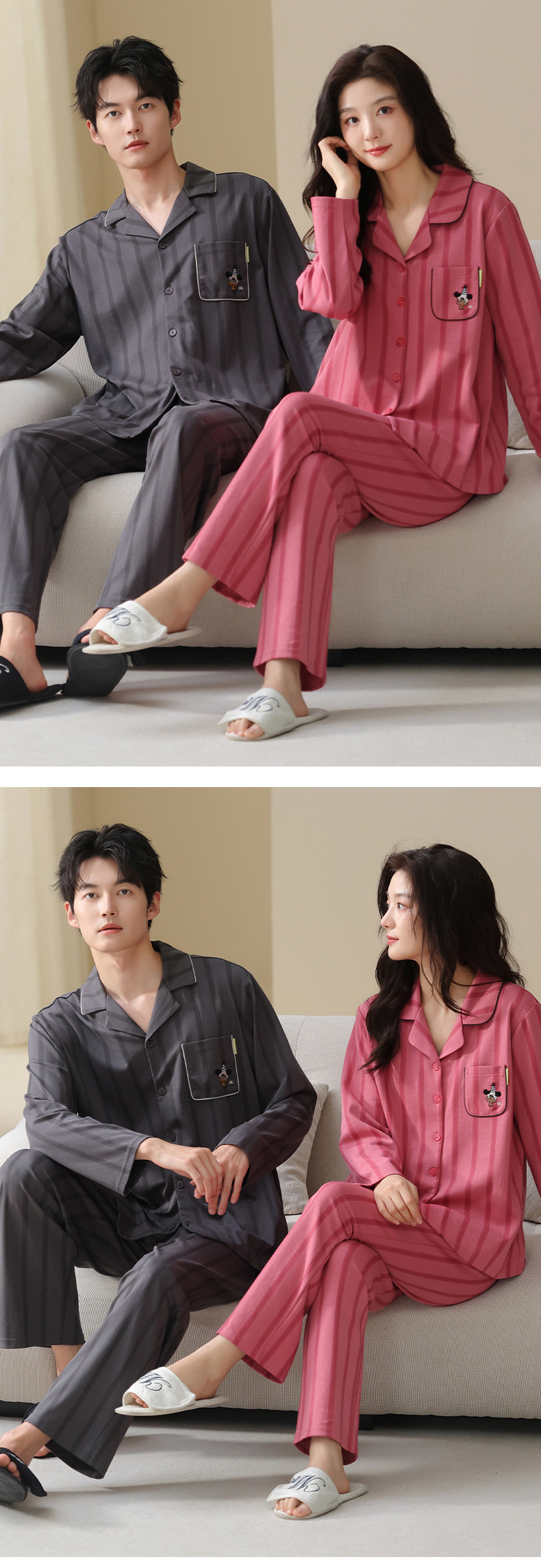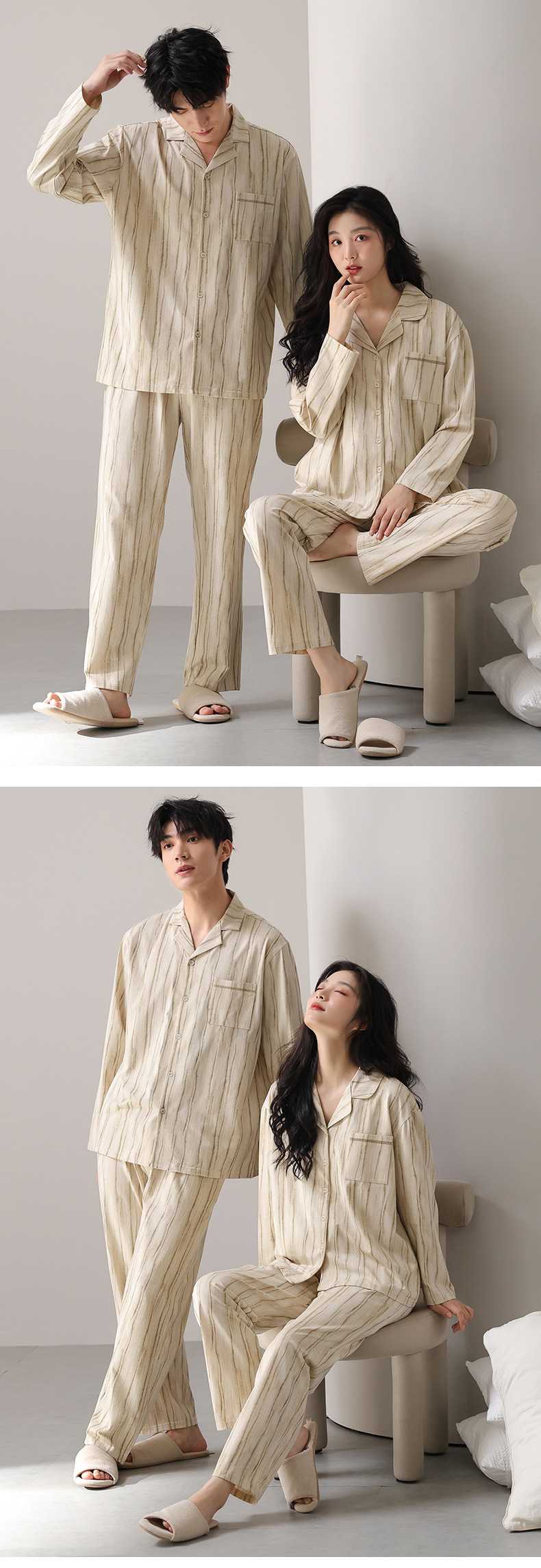 고품질 한국 스타일 커플 잠옷 모달 코튼 가을 겨울 신상 여성 긴팔 가디건 남성 가을 홈웨어스토어 가기