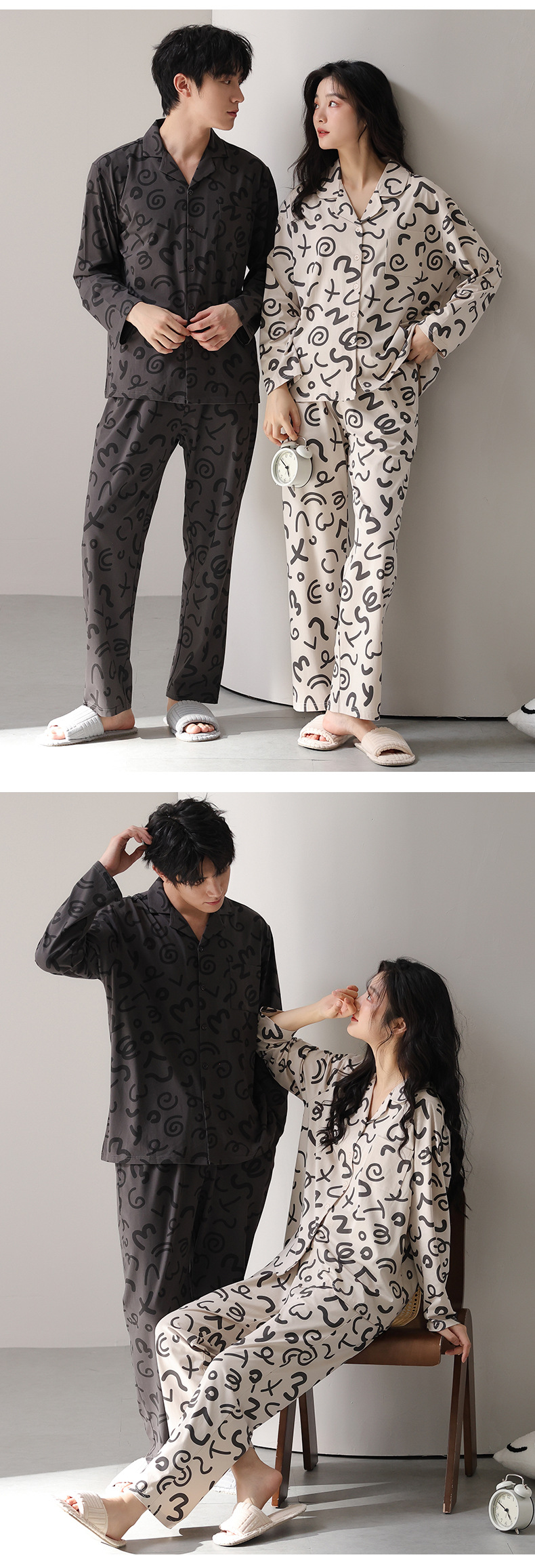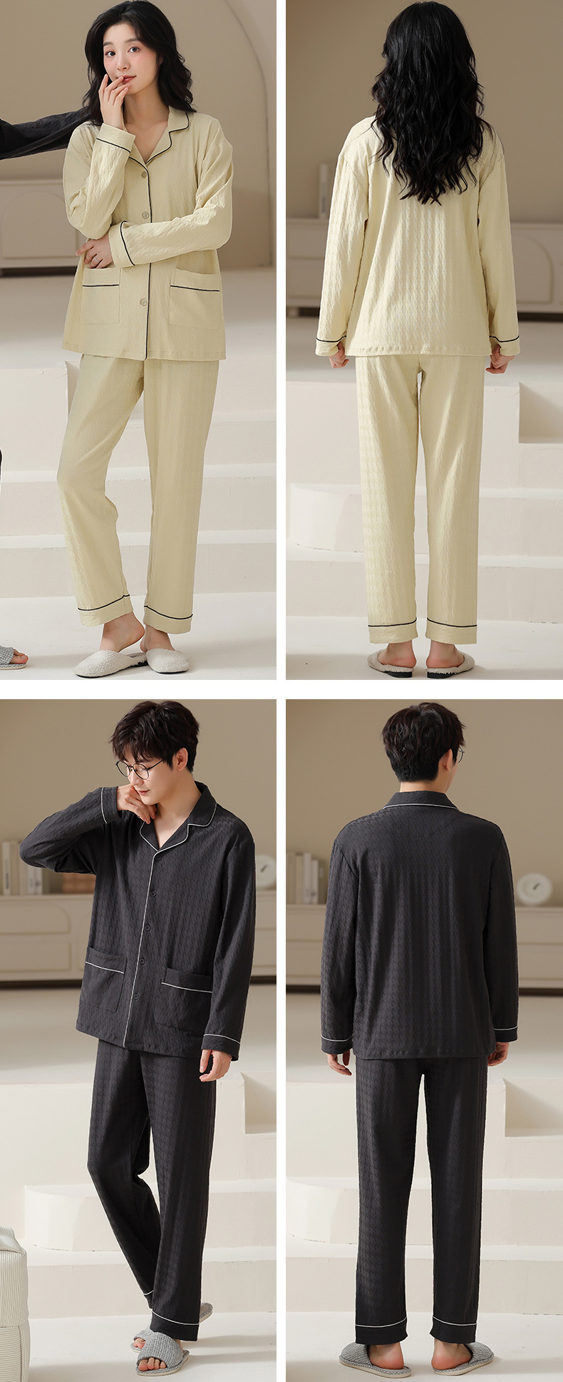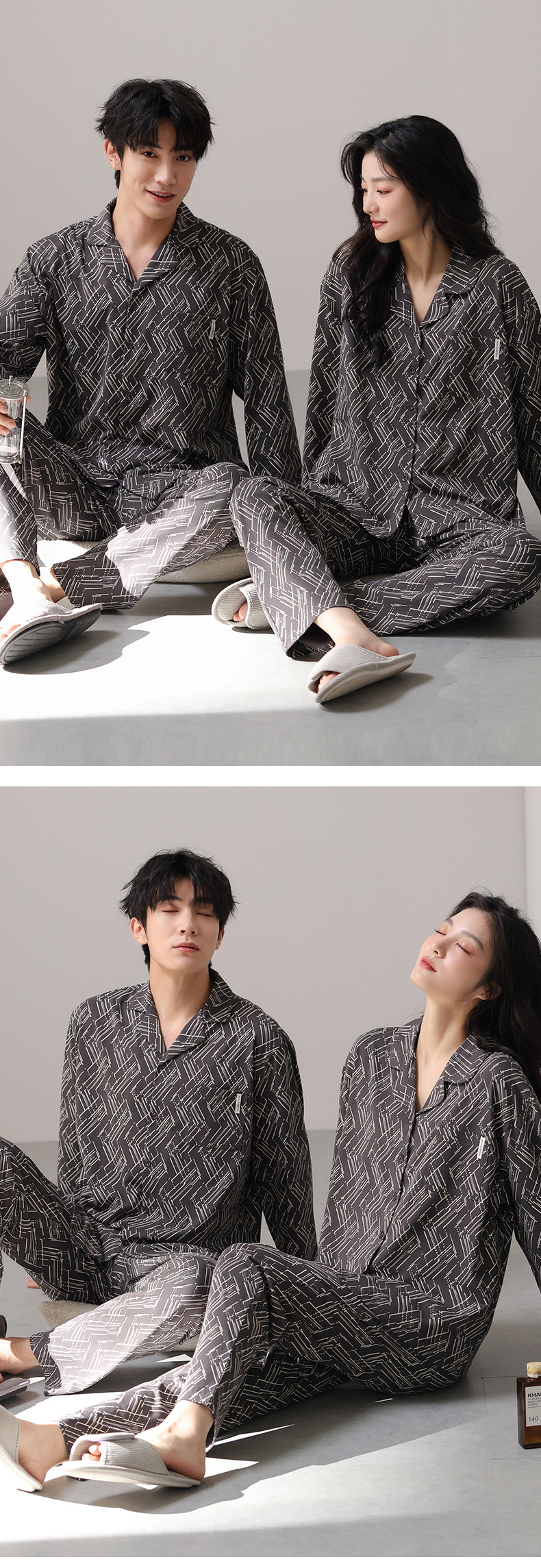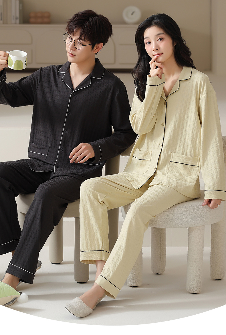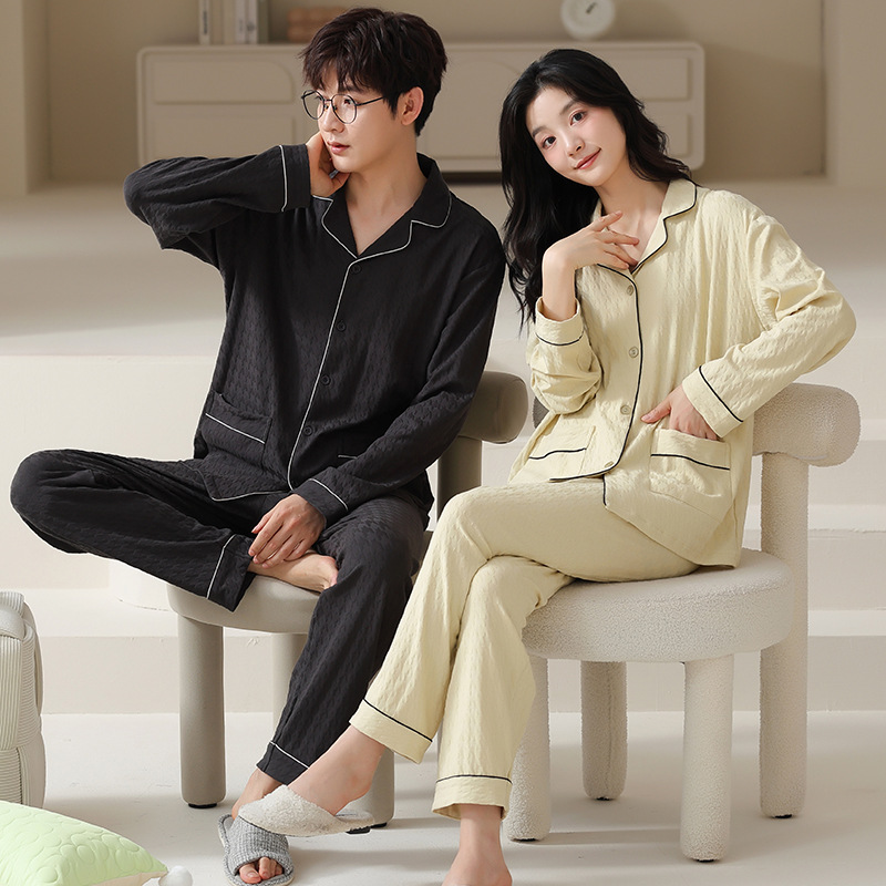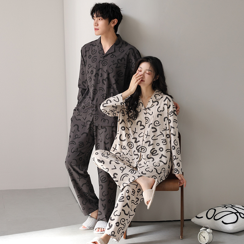고품질 한국 스타일 커플 잠옷 모달 코튼 가을 겨울 신상 여성 긴팔 가디건 남성 가을 홈웨어