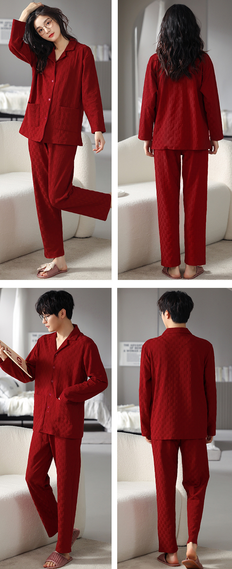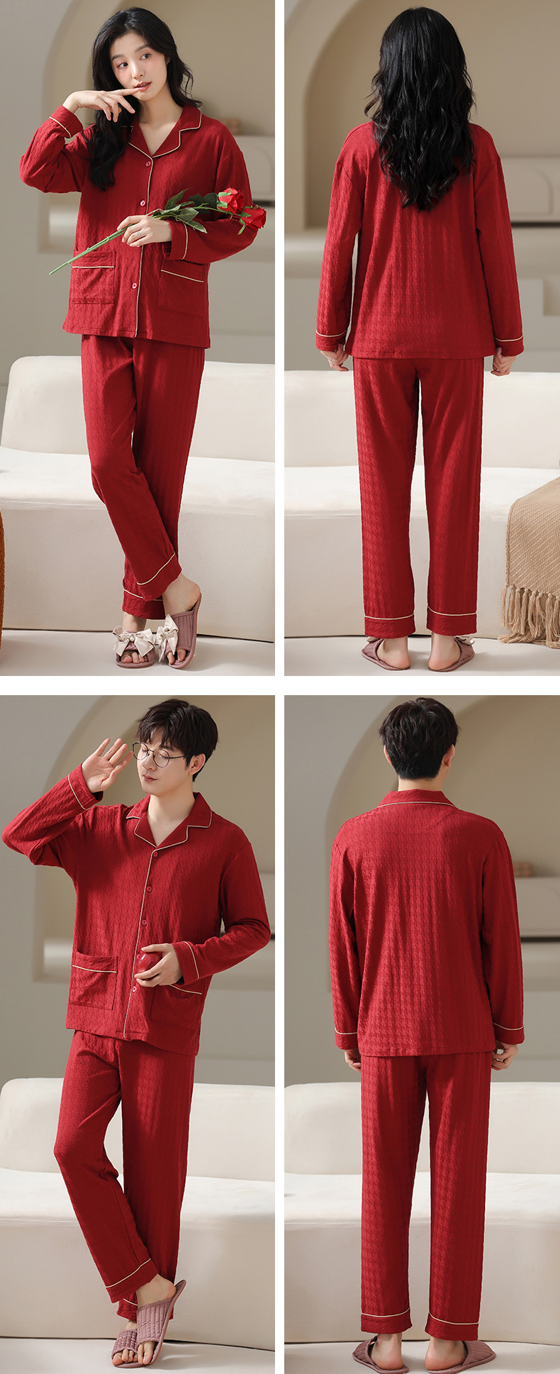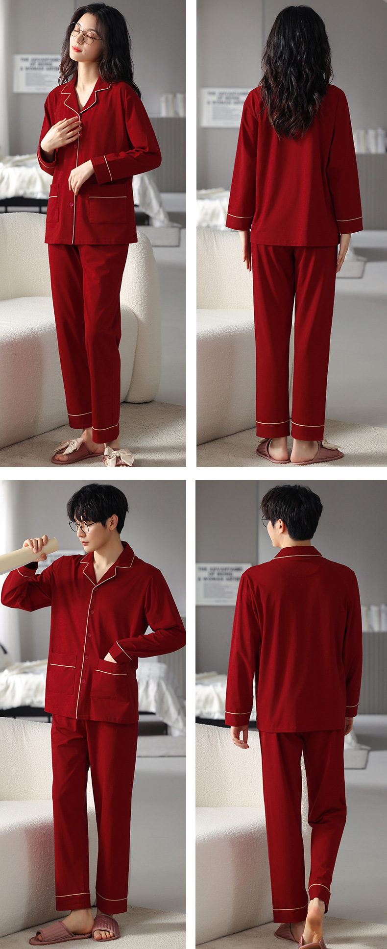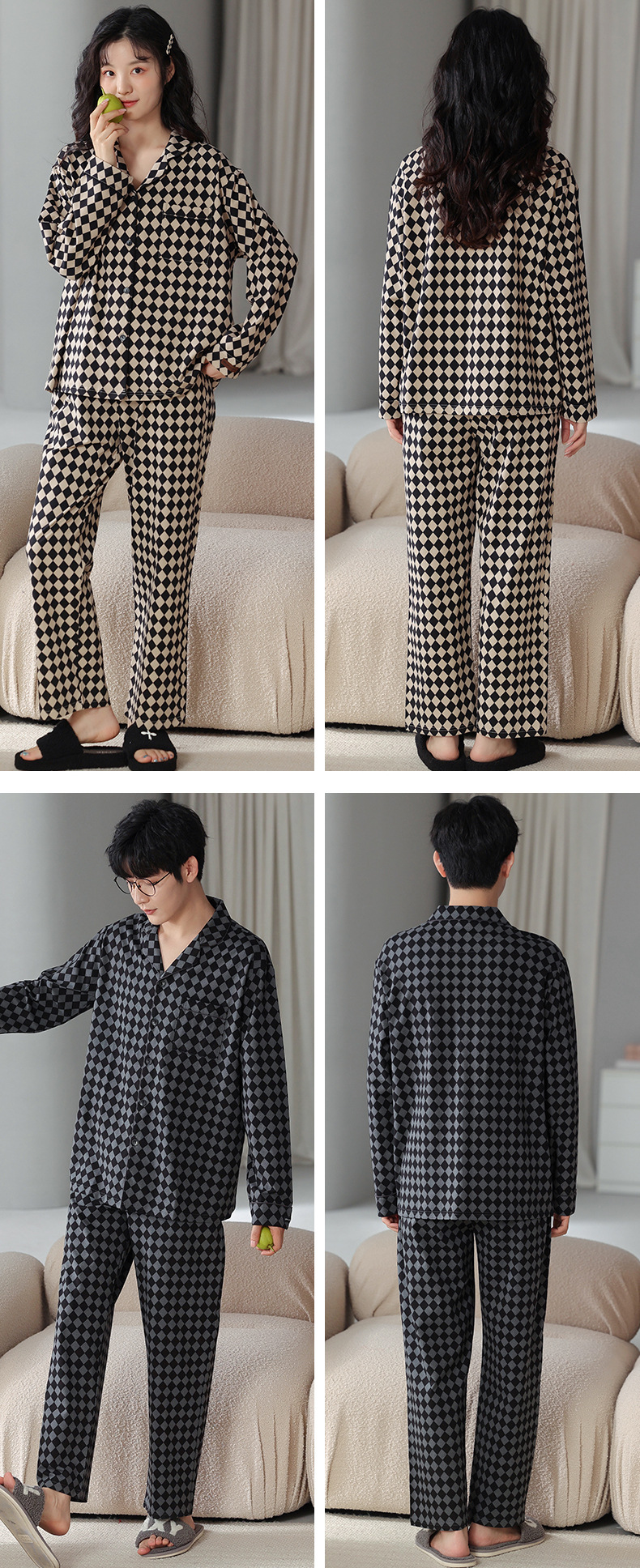 고품질 한국 스타일 커플 잠옷 모달 코튼 가을 겨울 신상 여성 긴팔 가디건 남성 가을 홈웨어