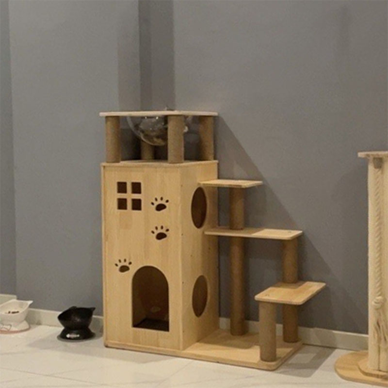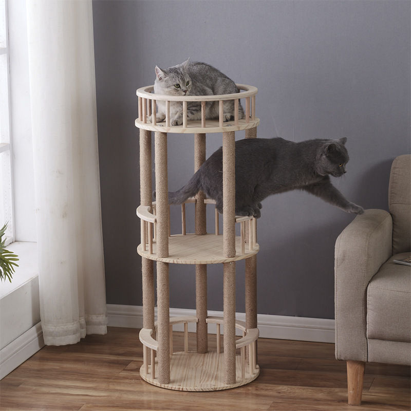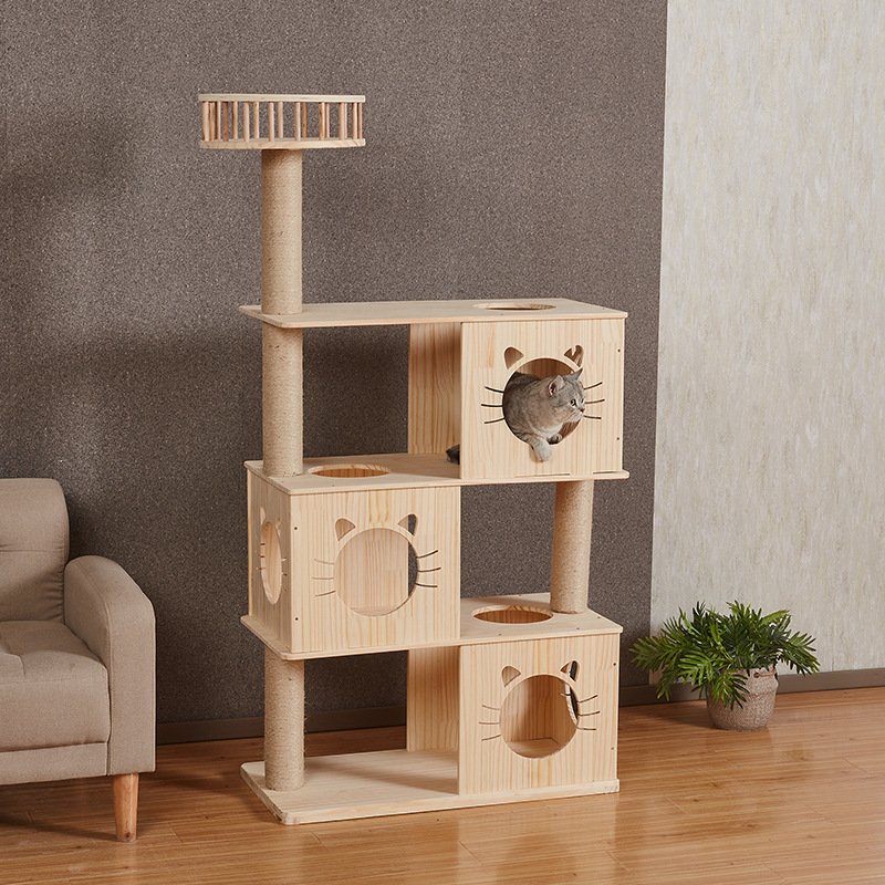 제조업체 고양이 클라이밍 프레임 원목 고양이 집 나무 일체형 하우스 빌라 스크래치 기둥 플랫폼 장난감 용품 애완 고양이스토어 가기