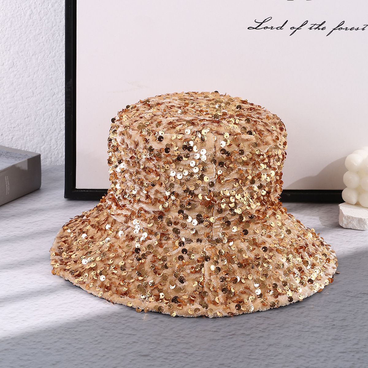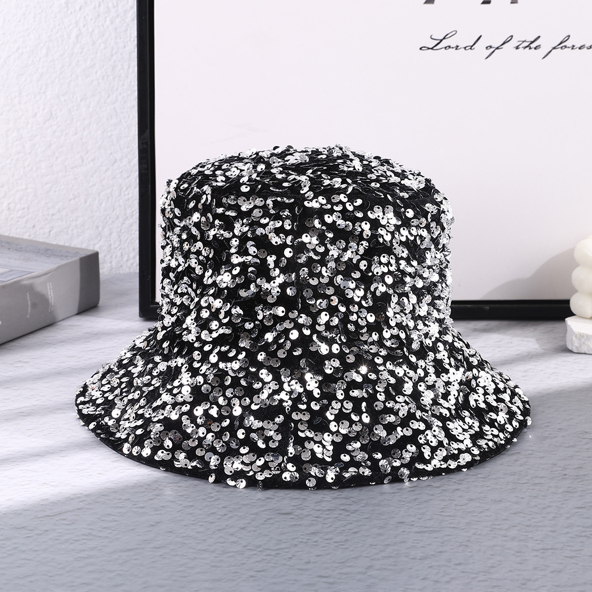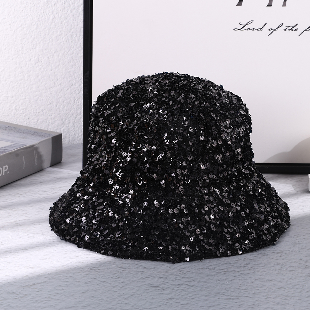 春季新款亮片渔夫帽欧美跨境电商洋气优雅盆帽有内胆折叠遮脸帽子