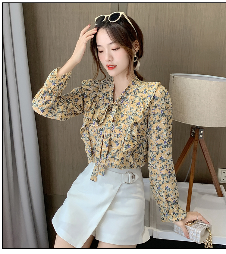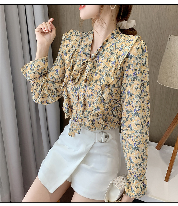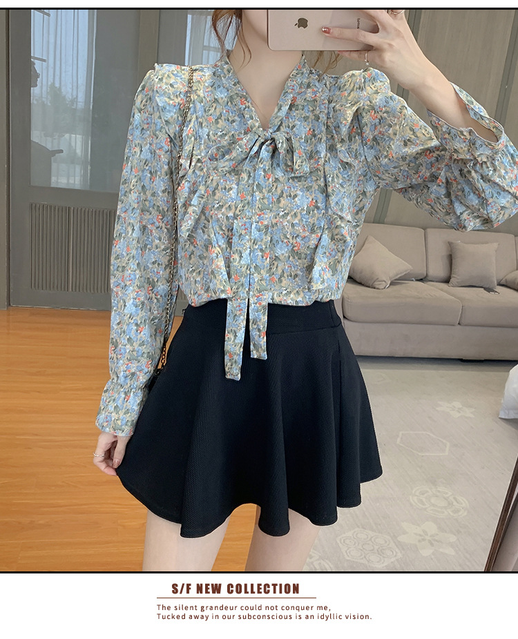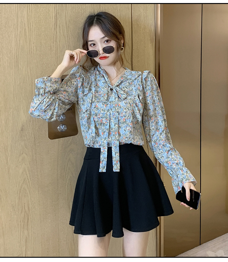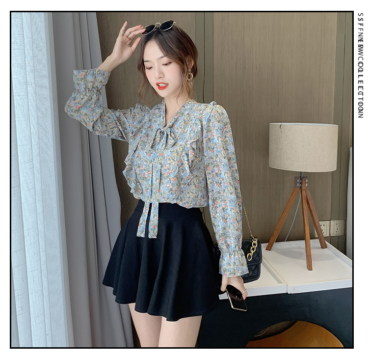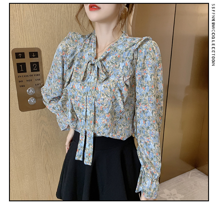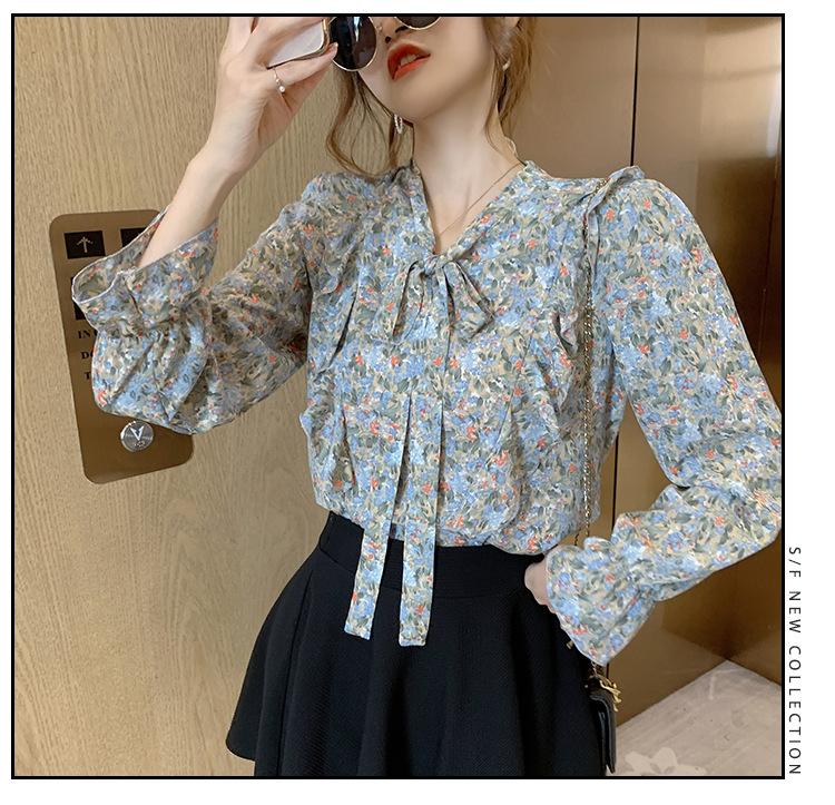 크로스보더 신상품 상의 2026 봄 가을 긴팔 한국 스타일 세련되고 패셔너블한 만능 상의 리본 쉬폰 블라우스스토어 가기