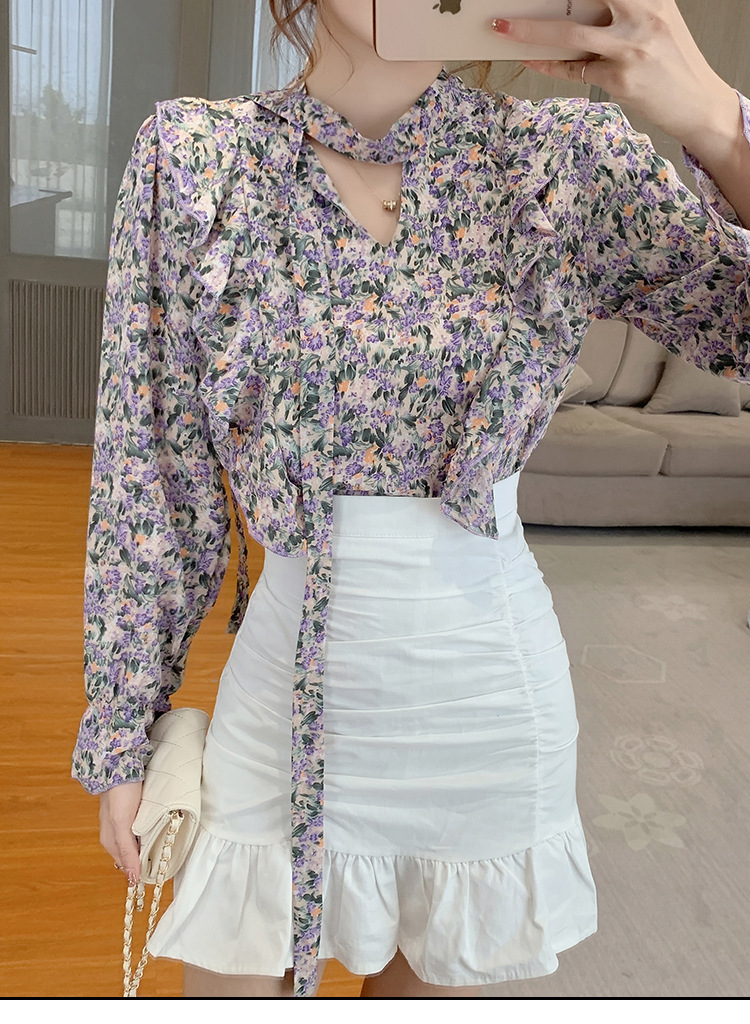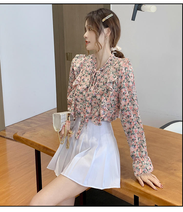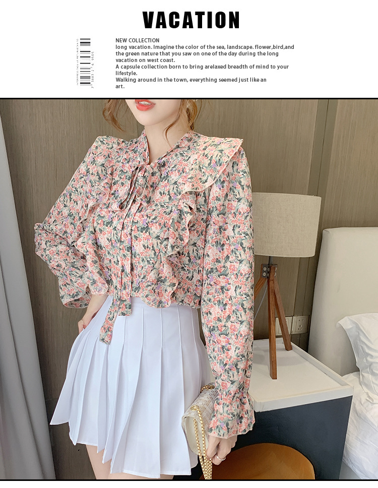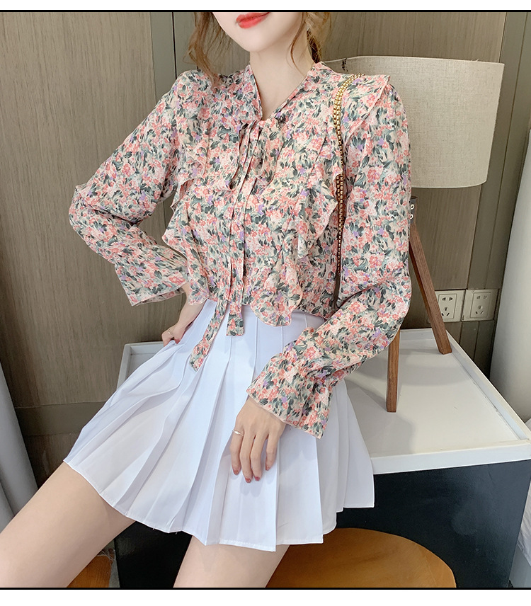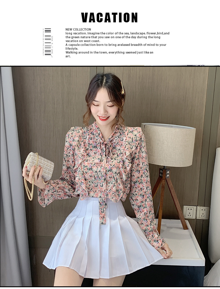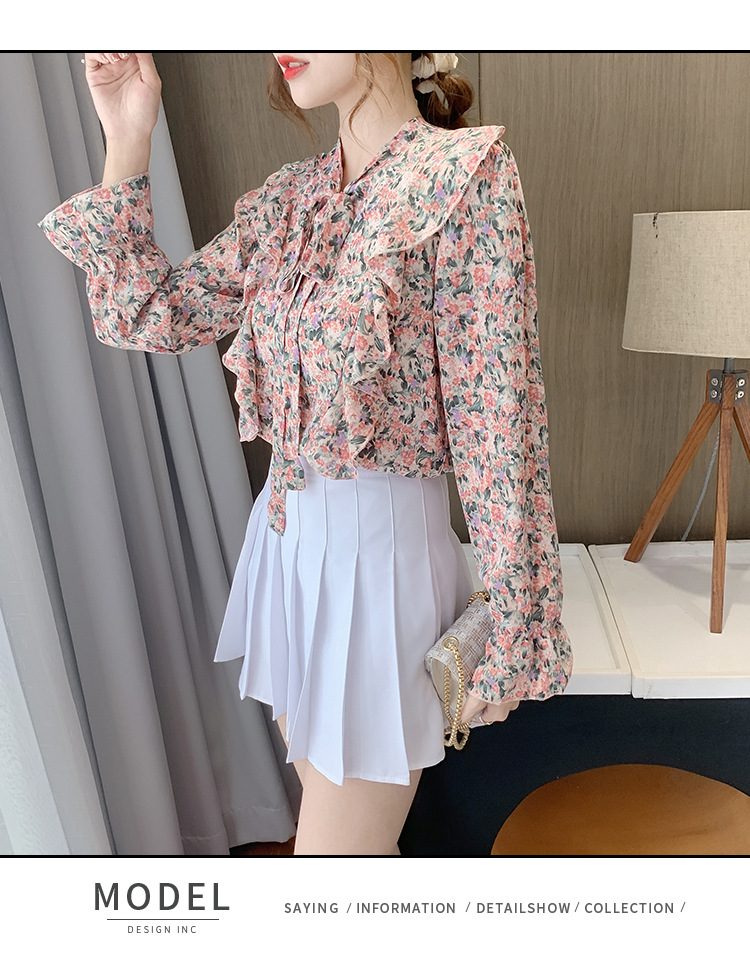 크로스보더 신상품 상의 2026 봄 가을 긴팔 한국 스타일 세련되고 패셔너블한 만능 상의 리본 쉬폰 블라우스스토어 가기