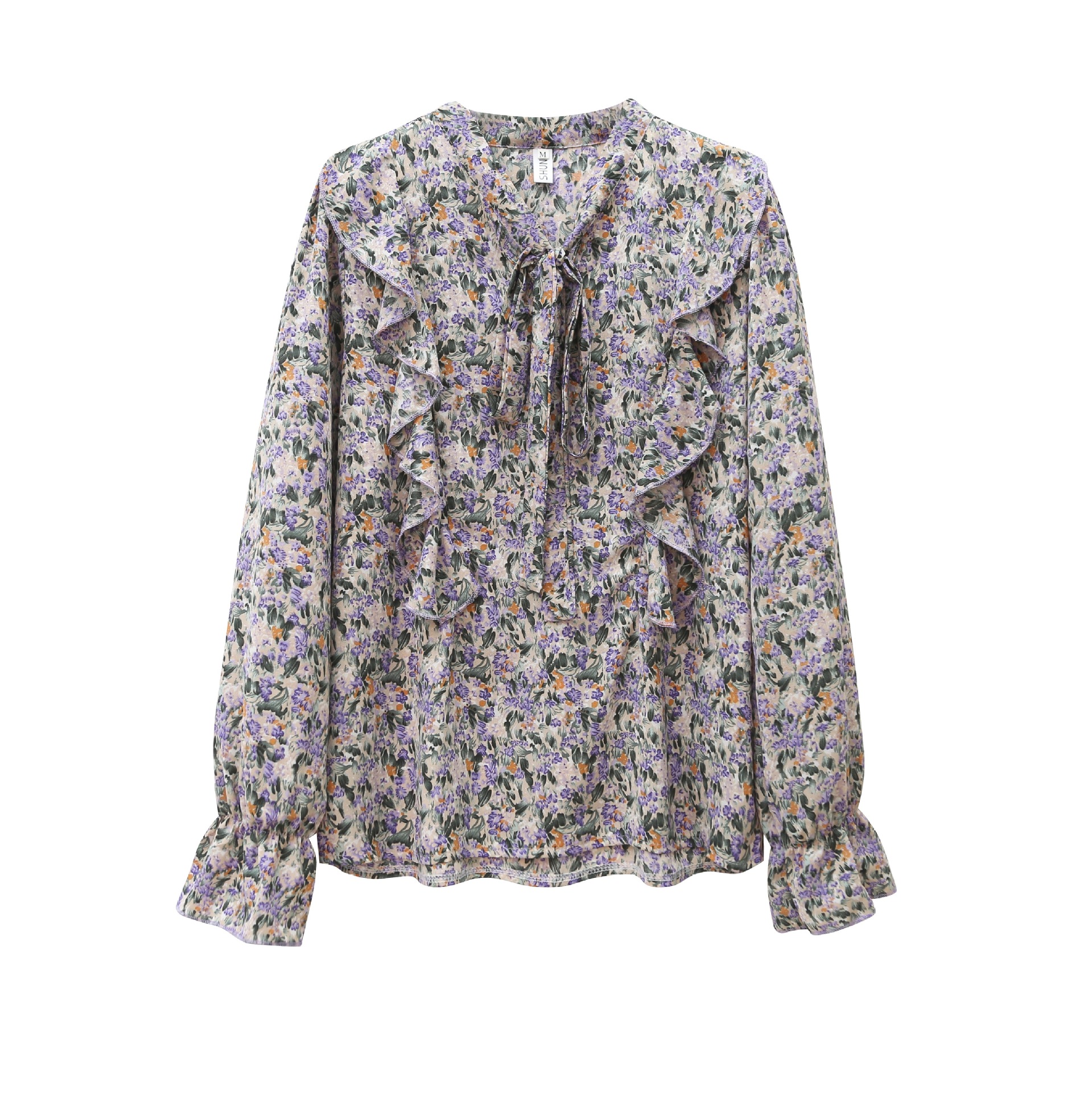 크로스보더 신상품 상의 2026 봄 가을 긴팔 한국 스타일 세련되고 패셔너블한 만능 상의 리본 쉬폰 블라우스