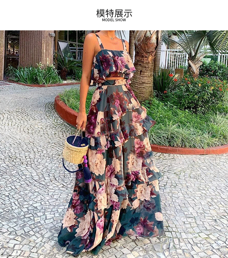 2025년 해외 직구 아마존 유럽 및 미국 여성 의류 신상 패션 플로럴 탑 레이스업 러플 케이크 스커트 세트 여성용스토어 가기