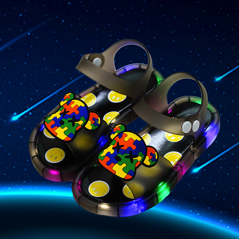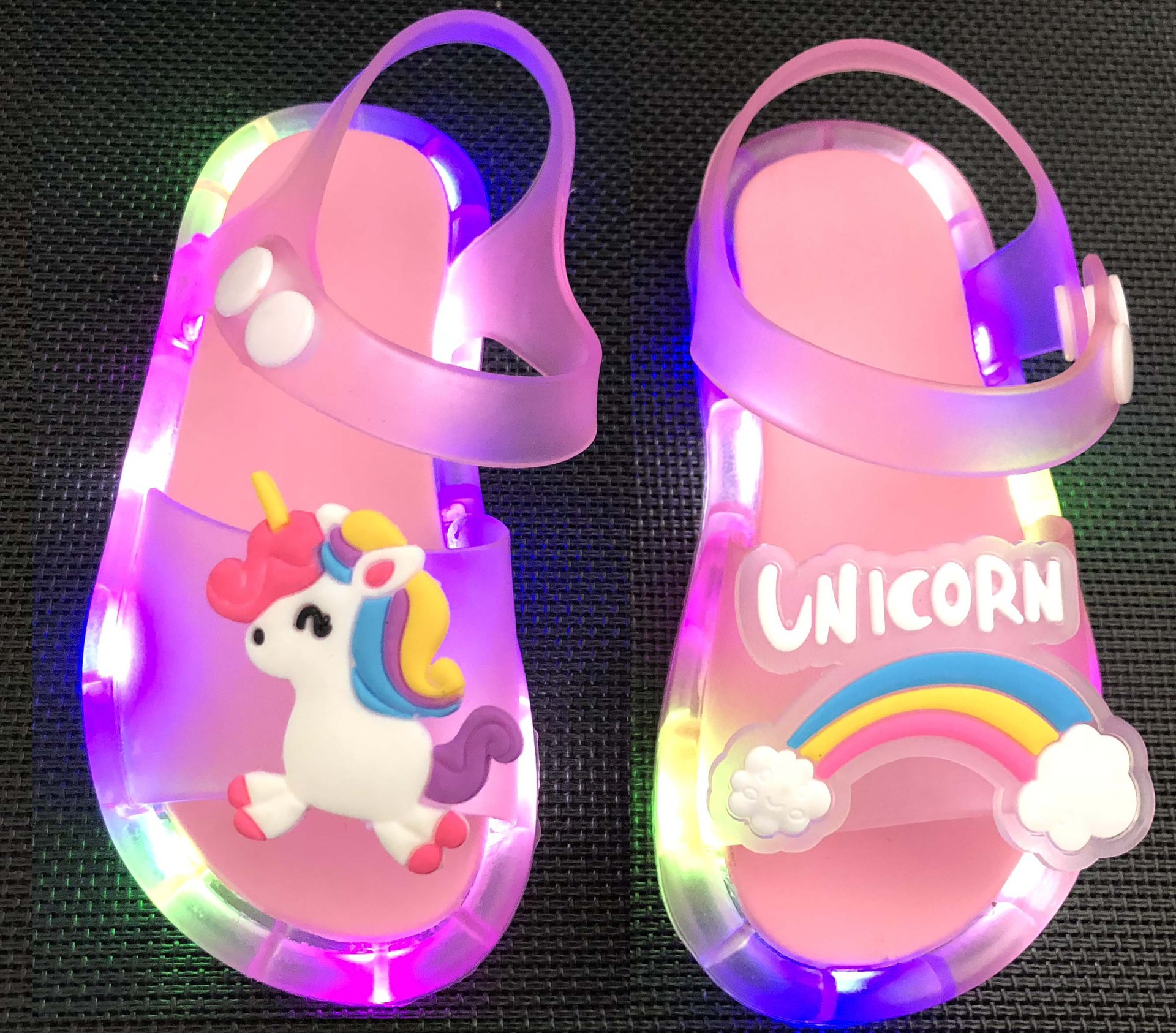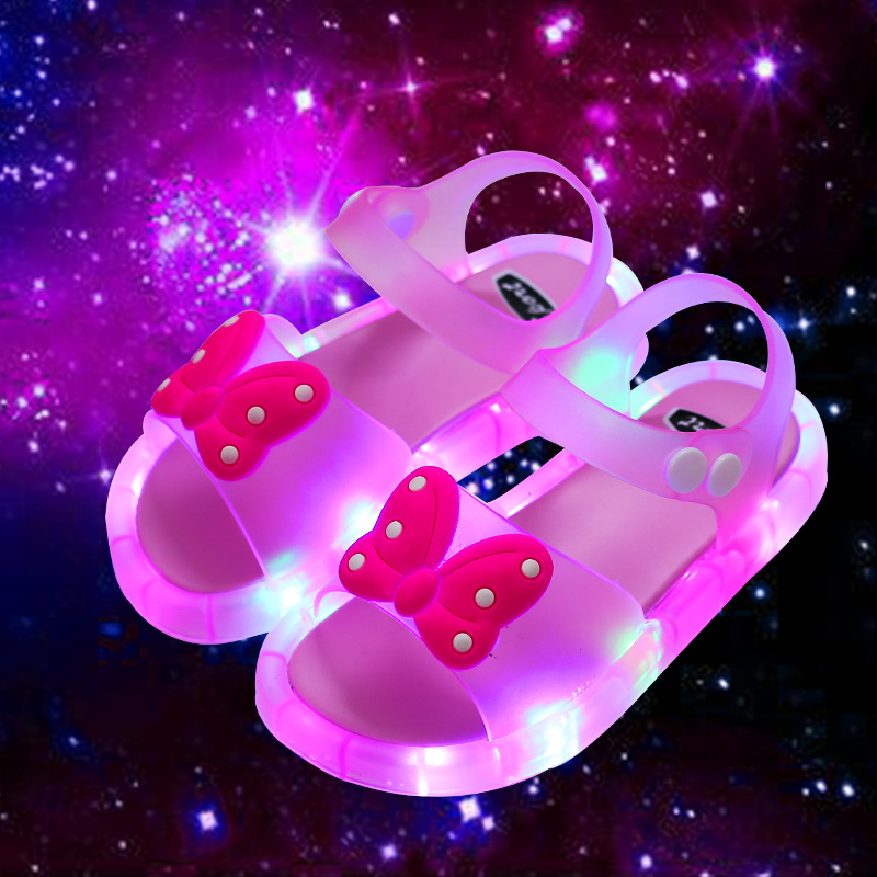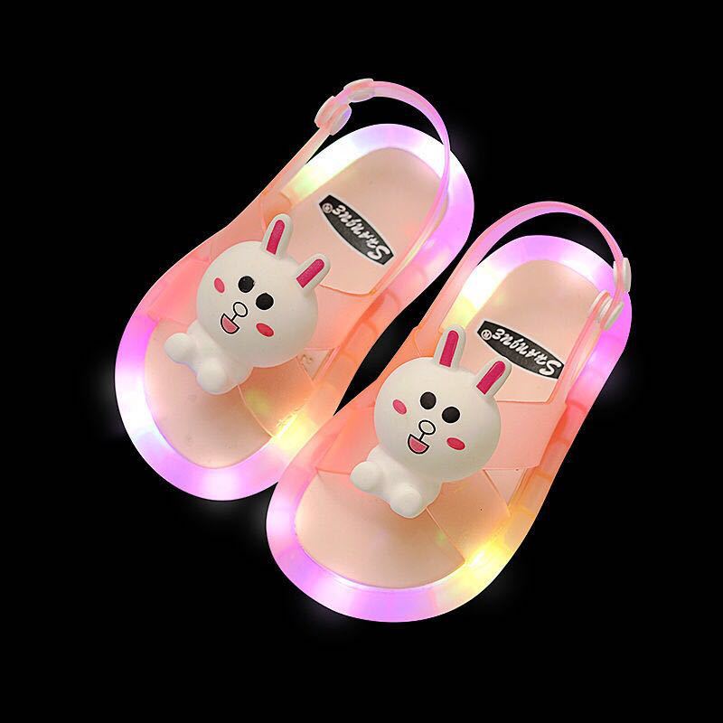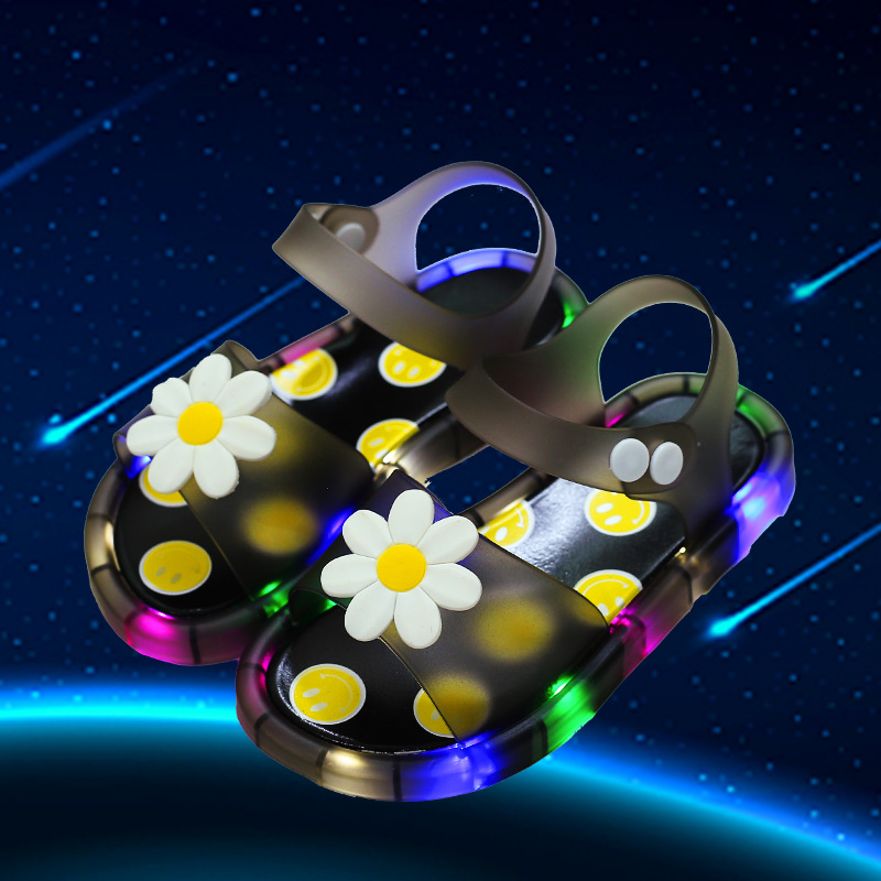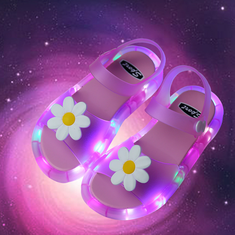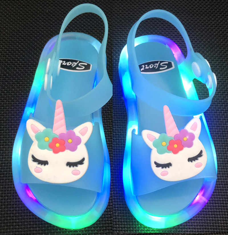 어린이 샌들 빛나는 슬리퍼 딸기 국화 유니콘 빛나는 샌들 크로스 미러 리틀 레드 북스토어 가기