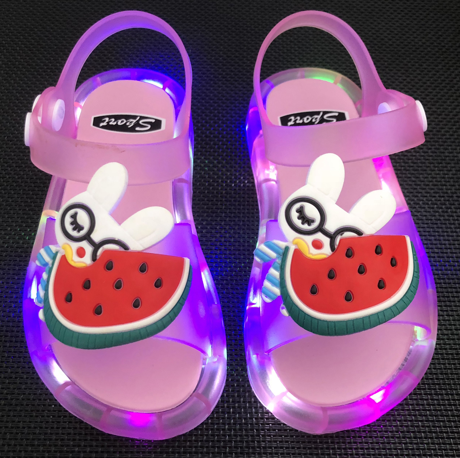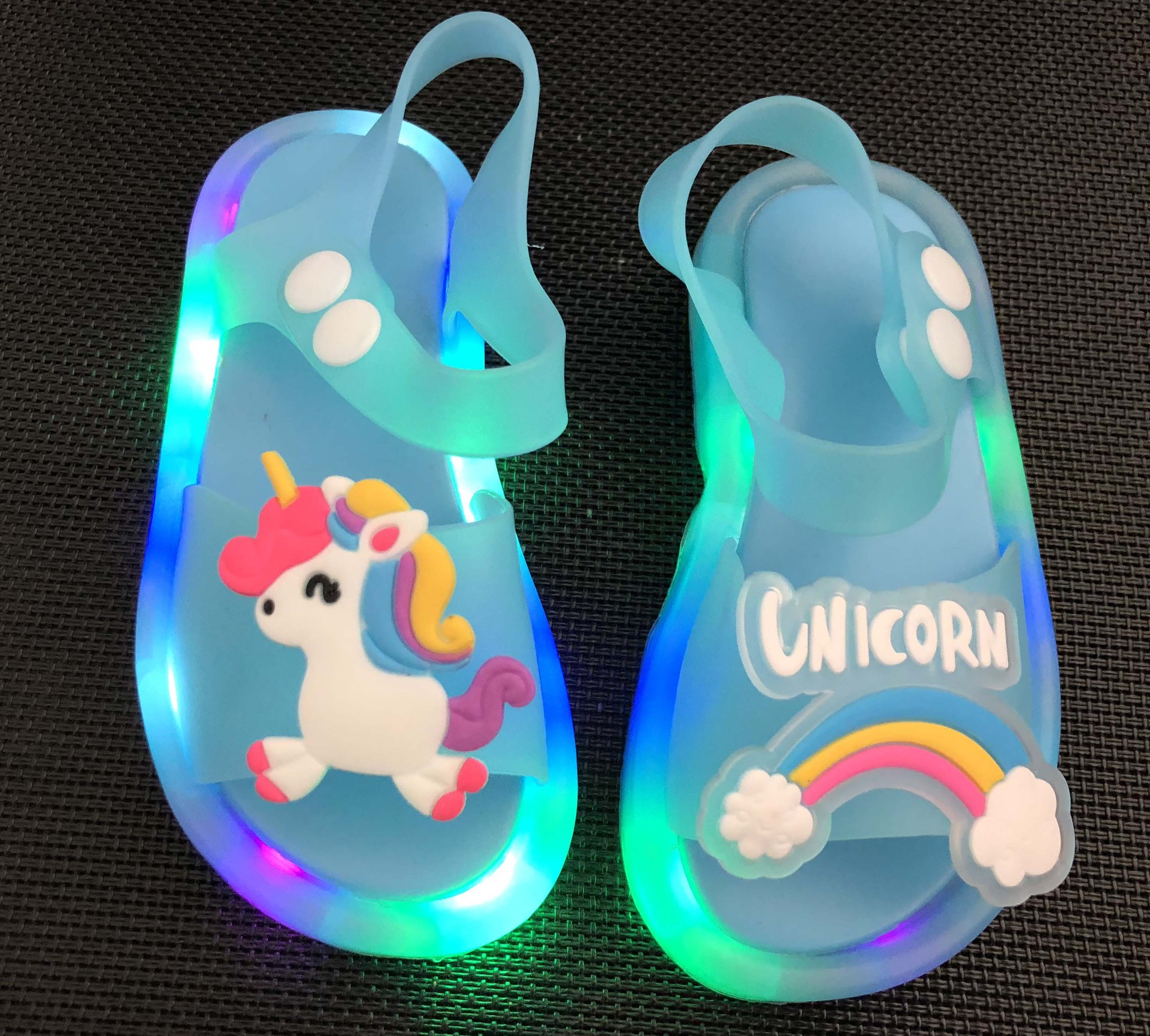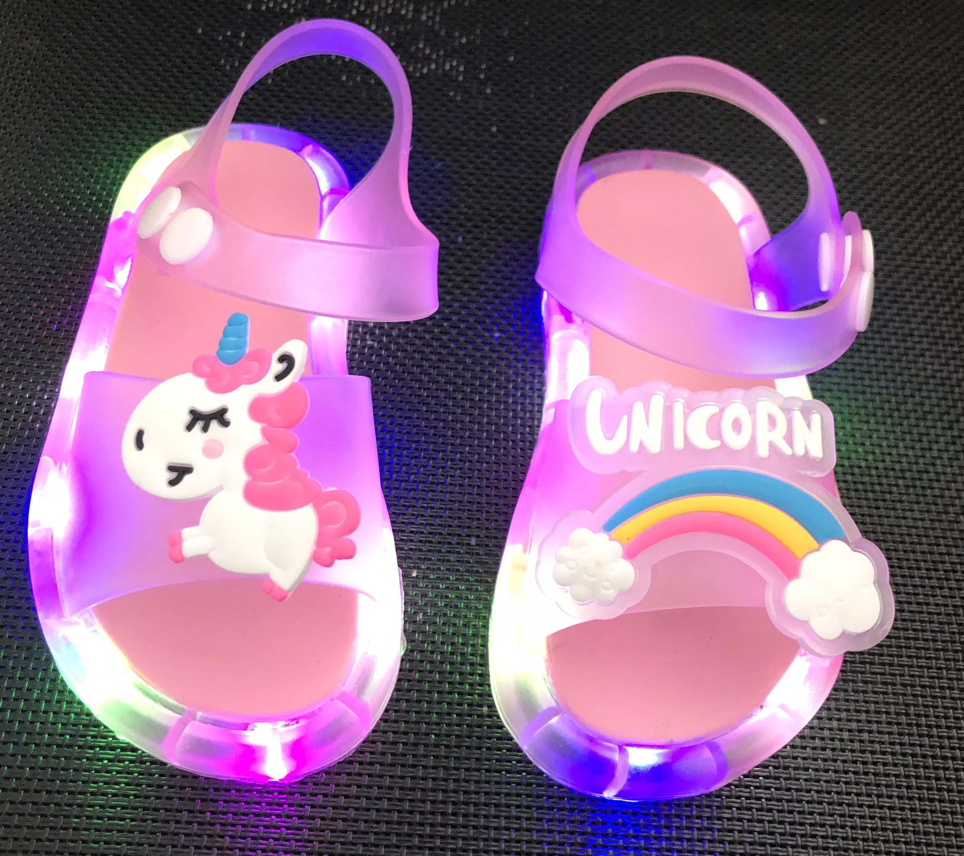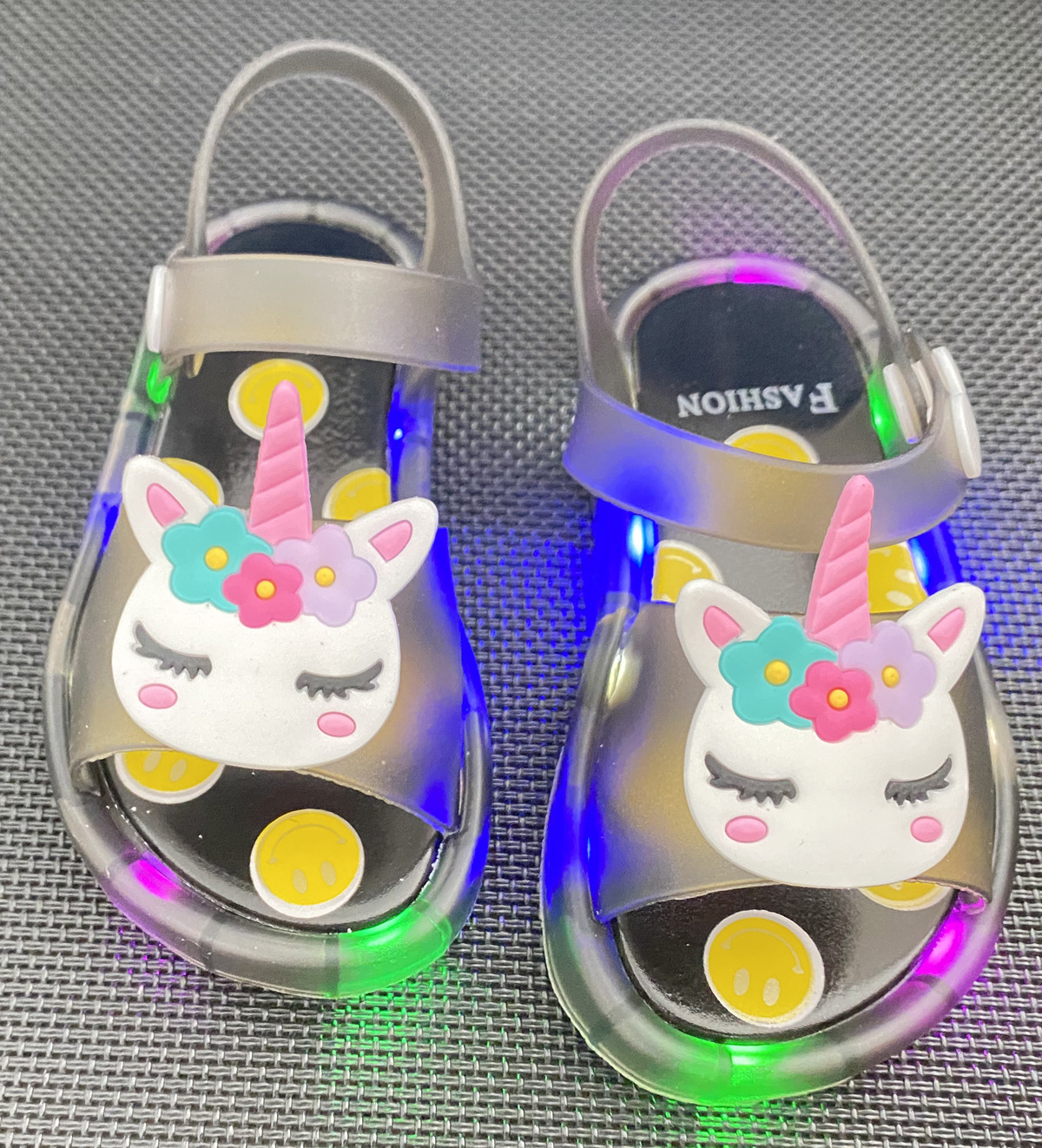 어린이 샌들 빛나는 슬리퍼 딸기 국화 유니콘 빛나는 샌들 크로스 미러 리틀 레드 북스토어 가기