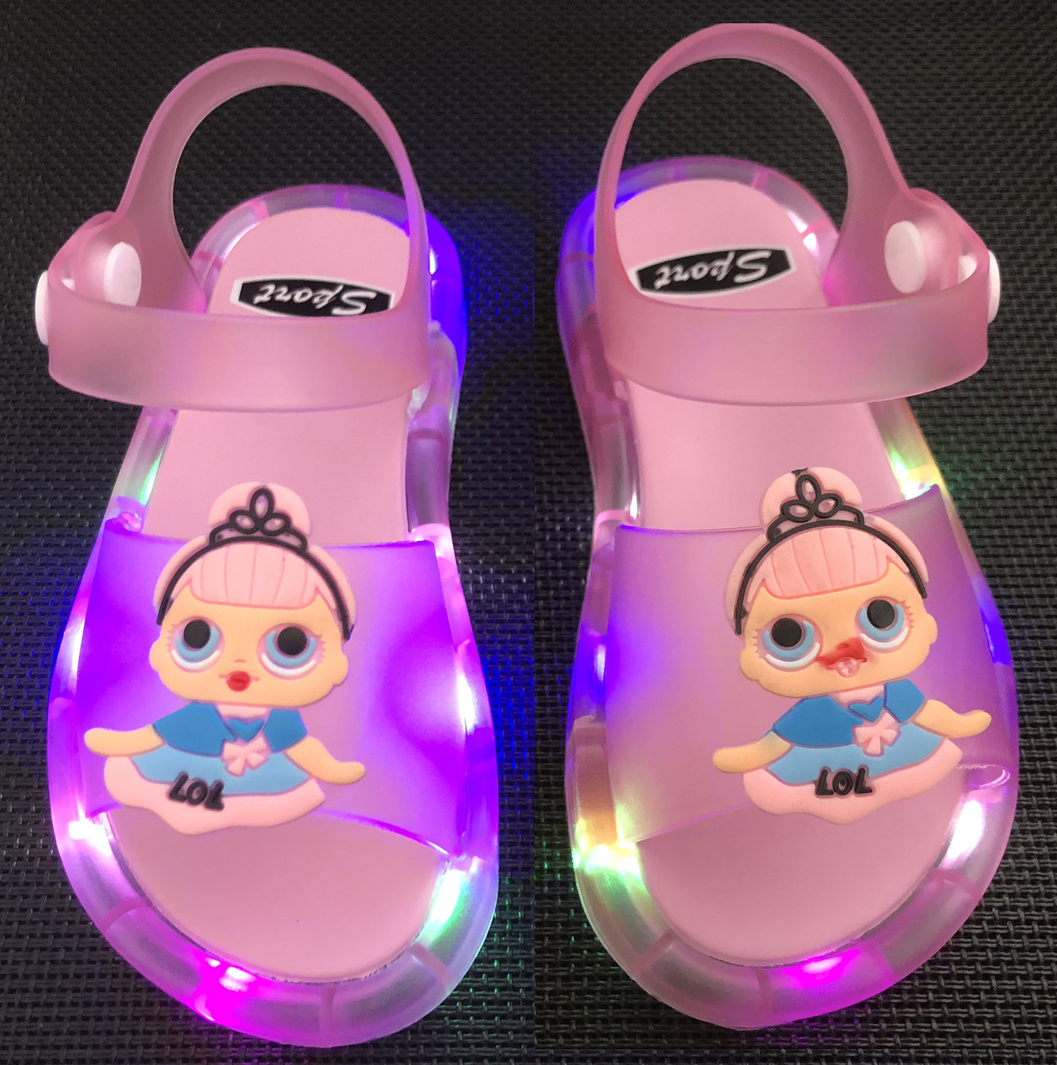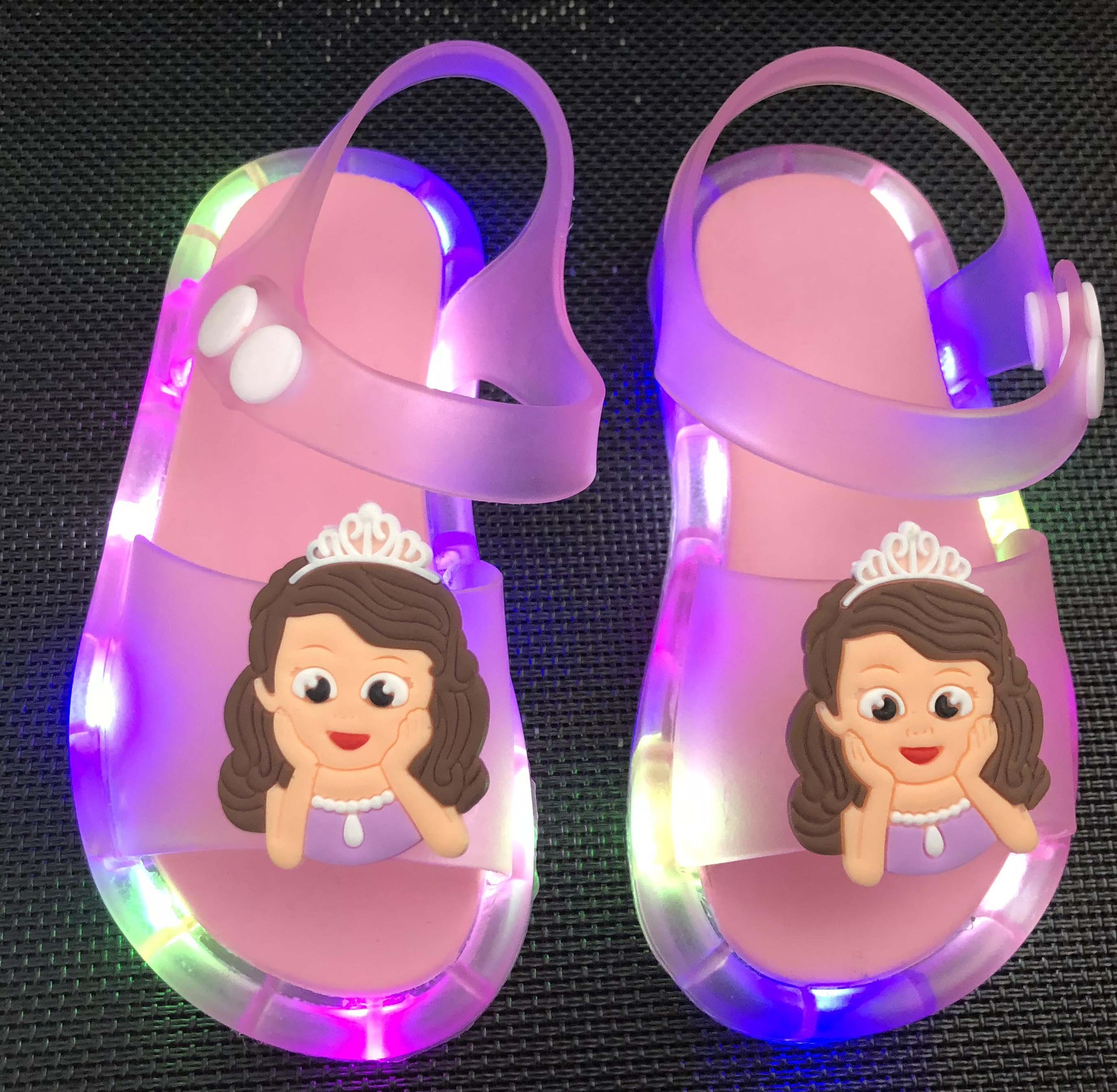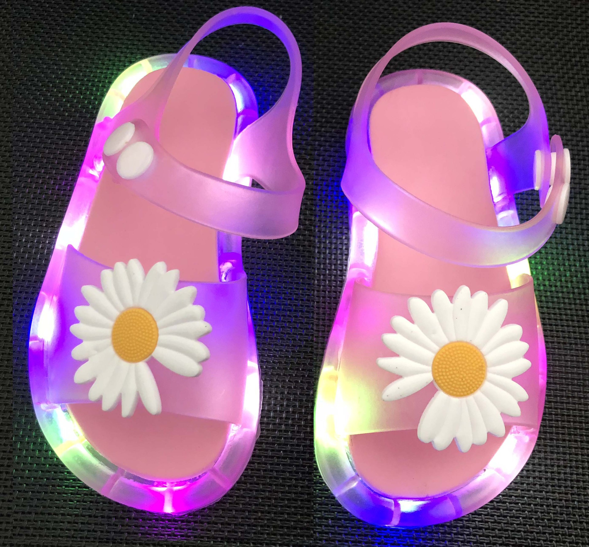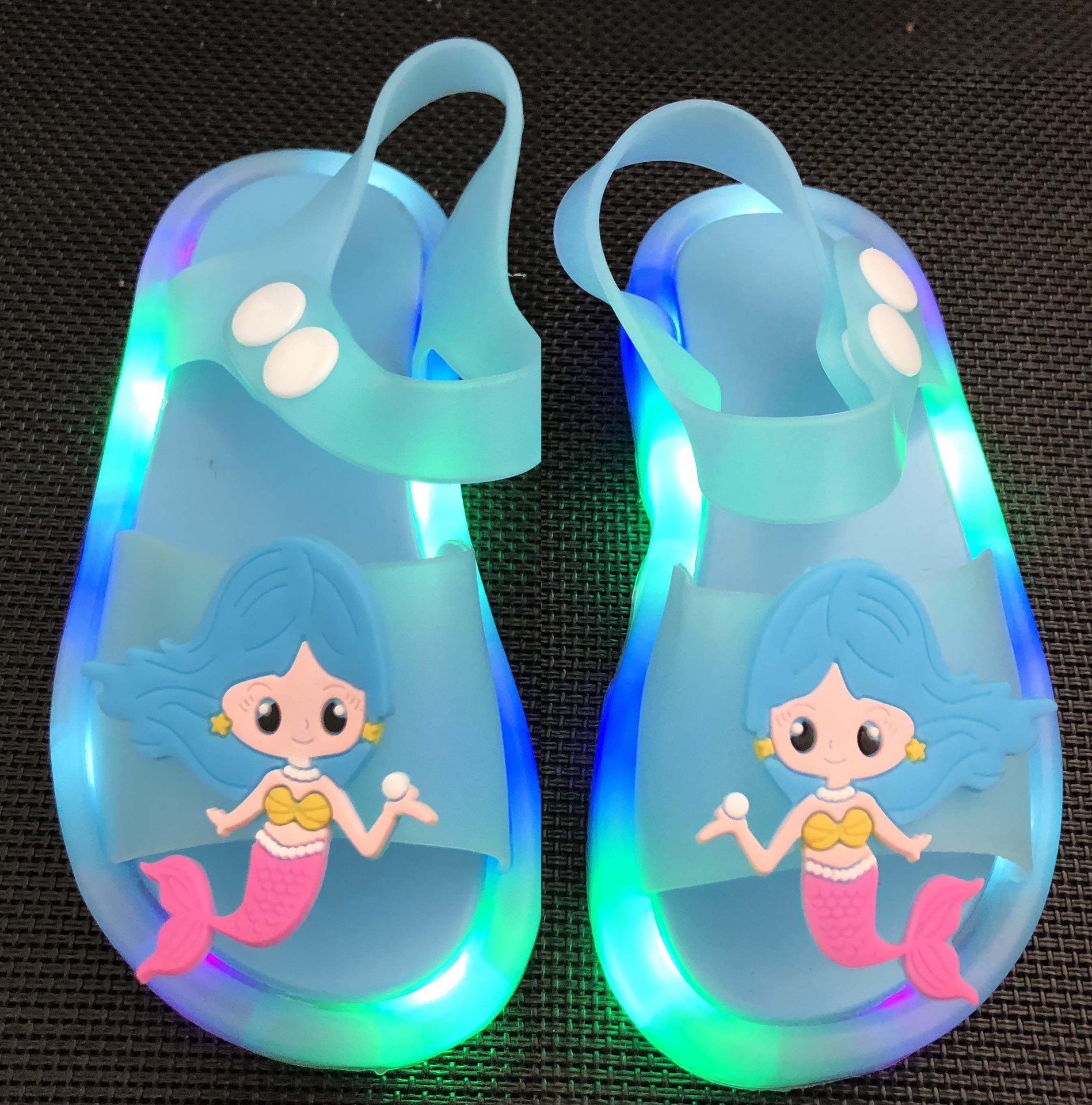 어린이 샌들 빛나는 슬리퍼 딸기 국화 유니콘 빛나는 샌들 크로스 미러 리틀 레드 북스토어 가기