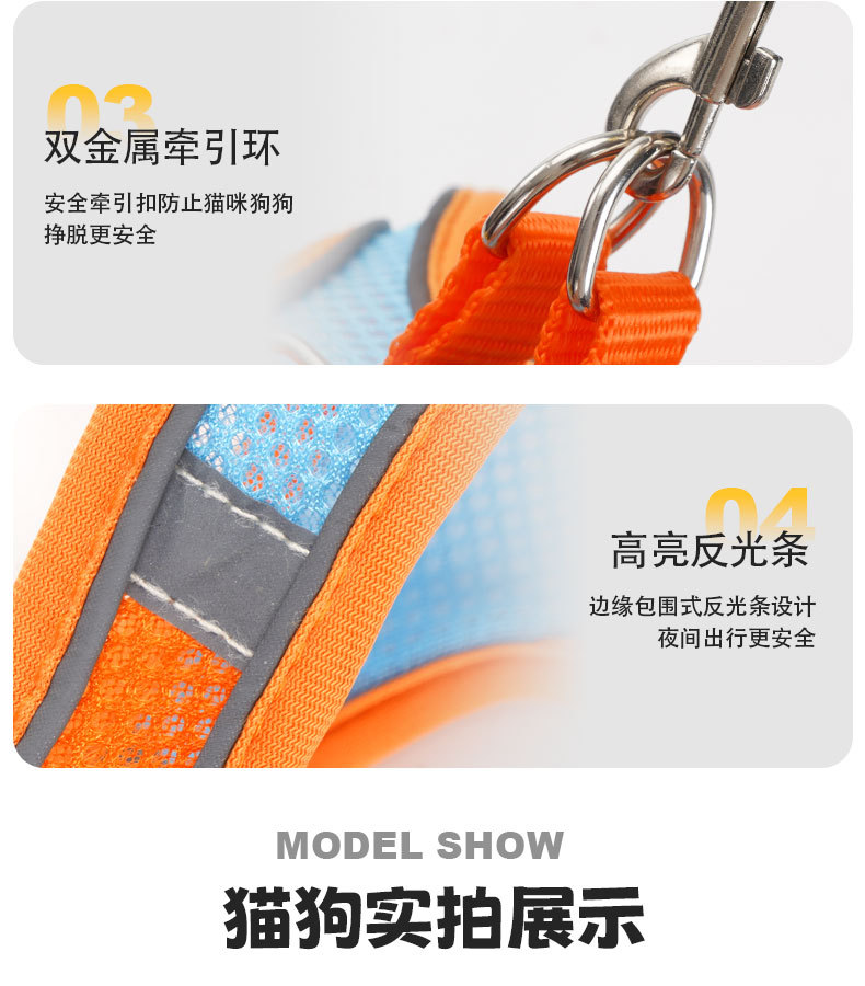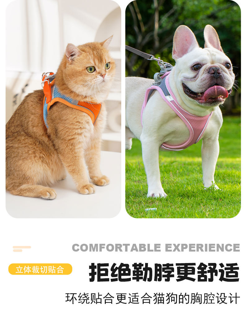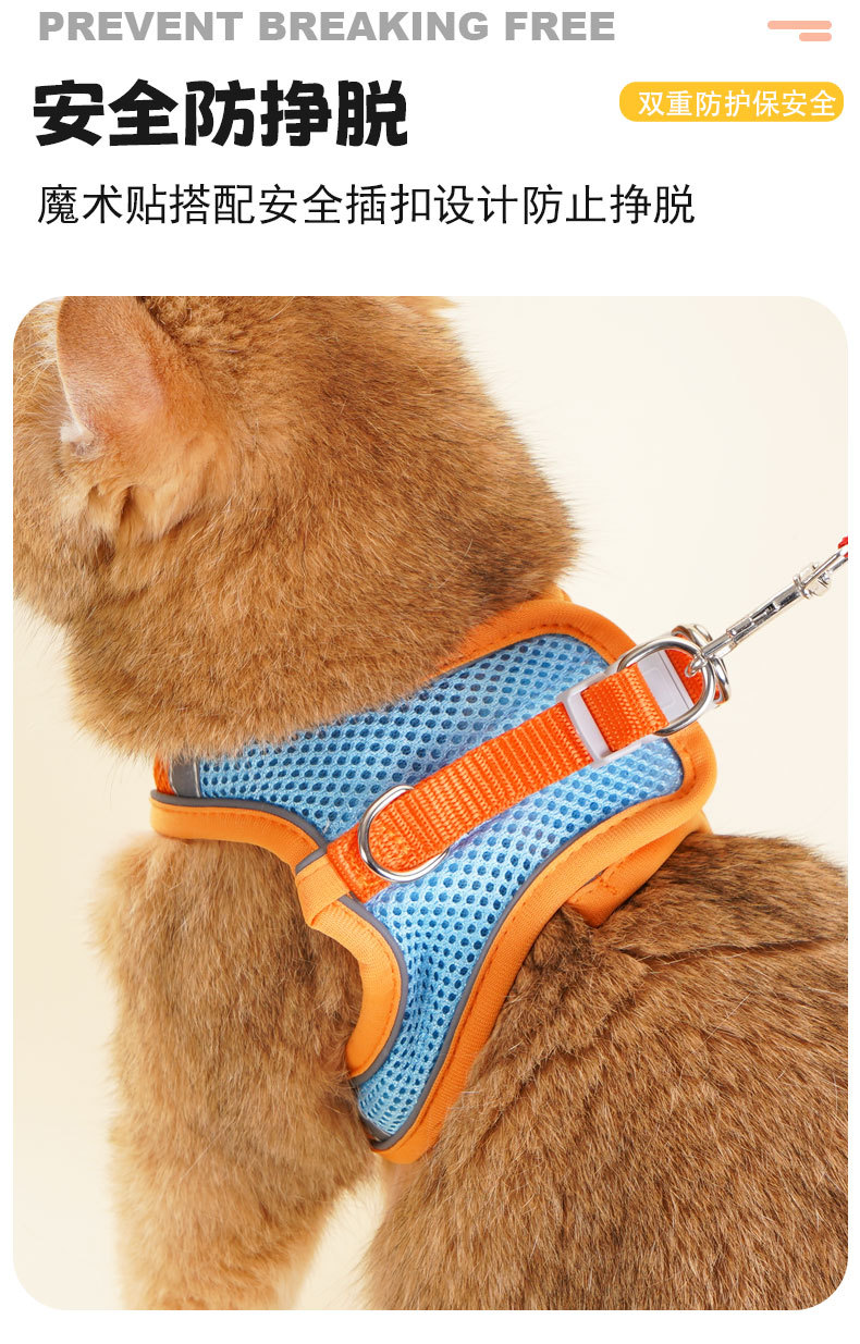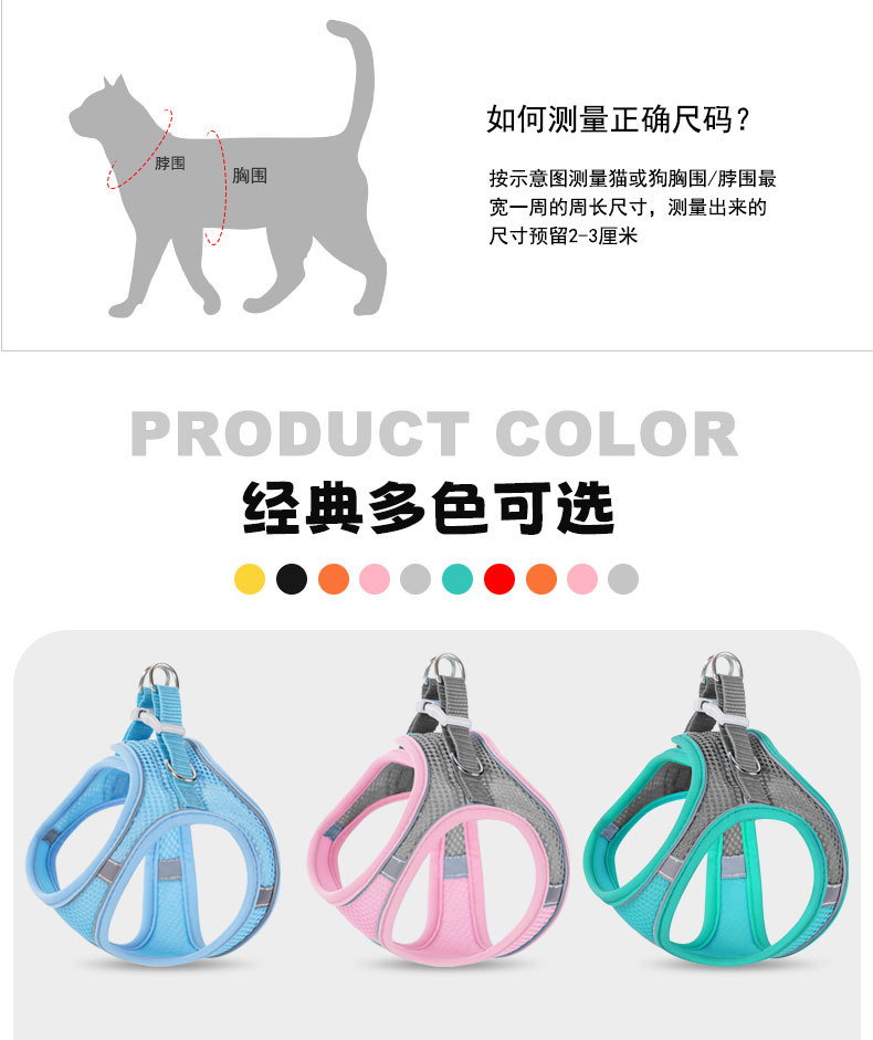 새로운 애완 동물 가죽 끈 조끼 스타일 고양이와 개 하네스 반사 고양이 가죽 끈 애완 동물 용품 소스 재고 있음스토어 가기