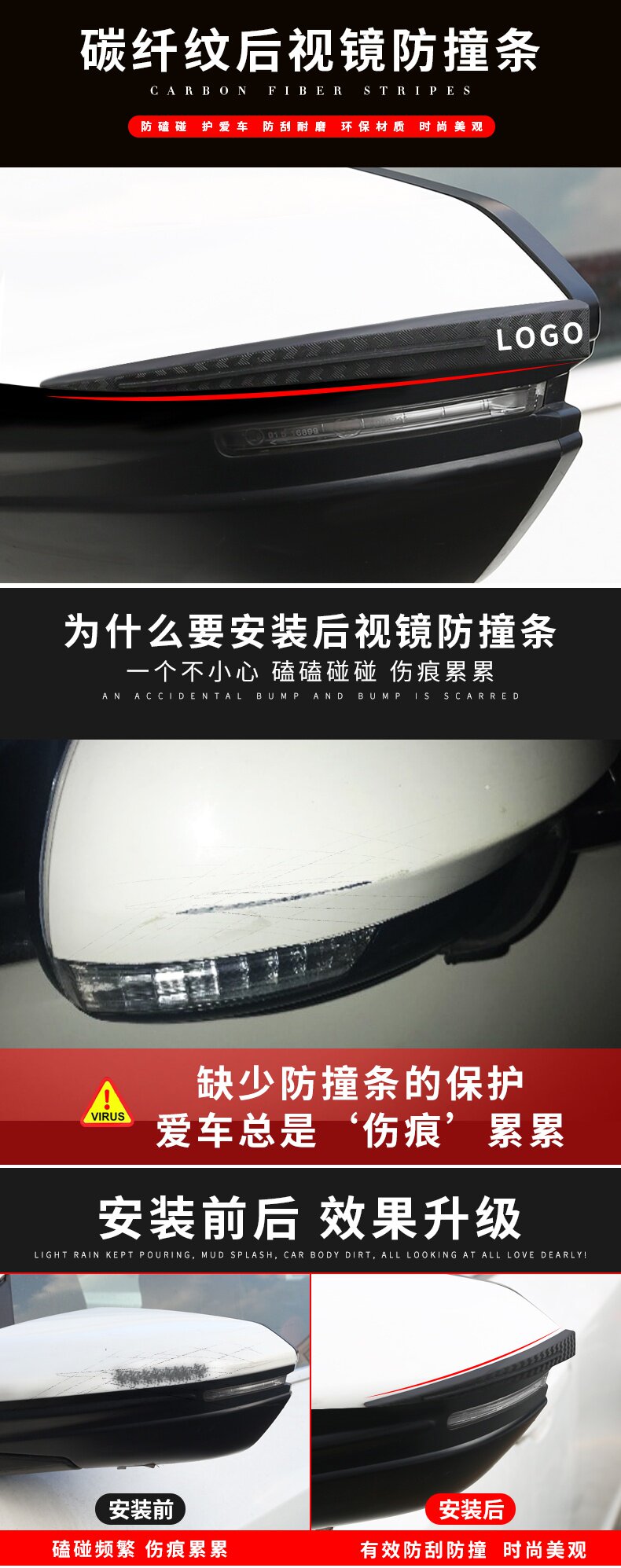 • 백미러 충돌 방지 스트립-블랙-2 개