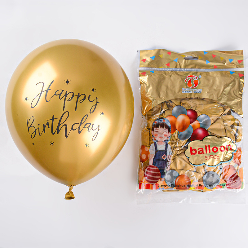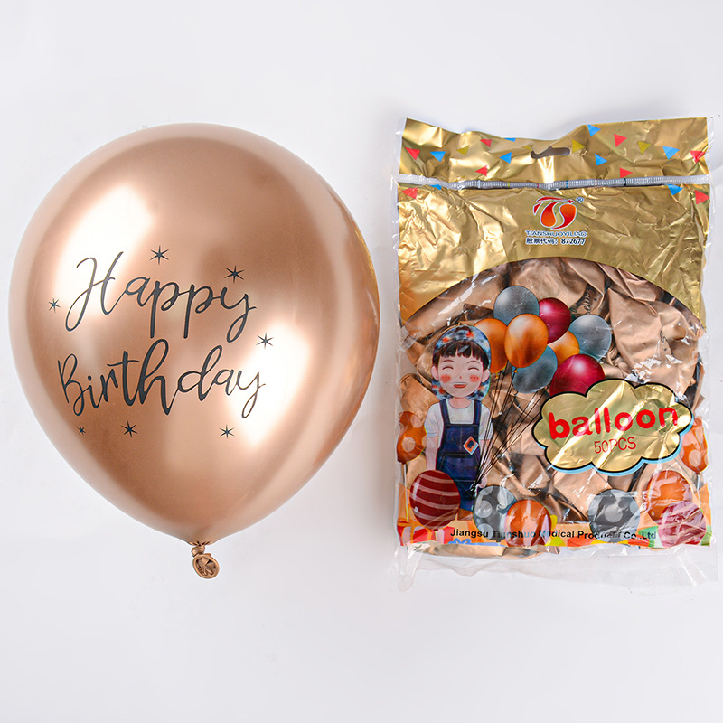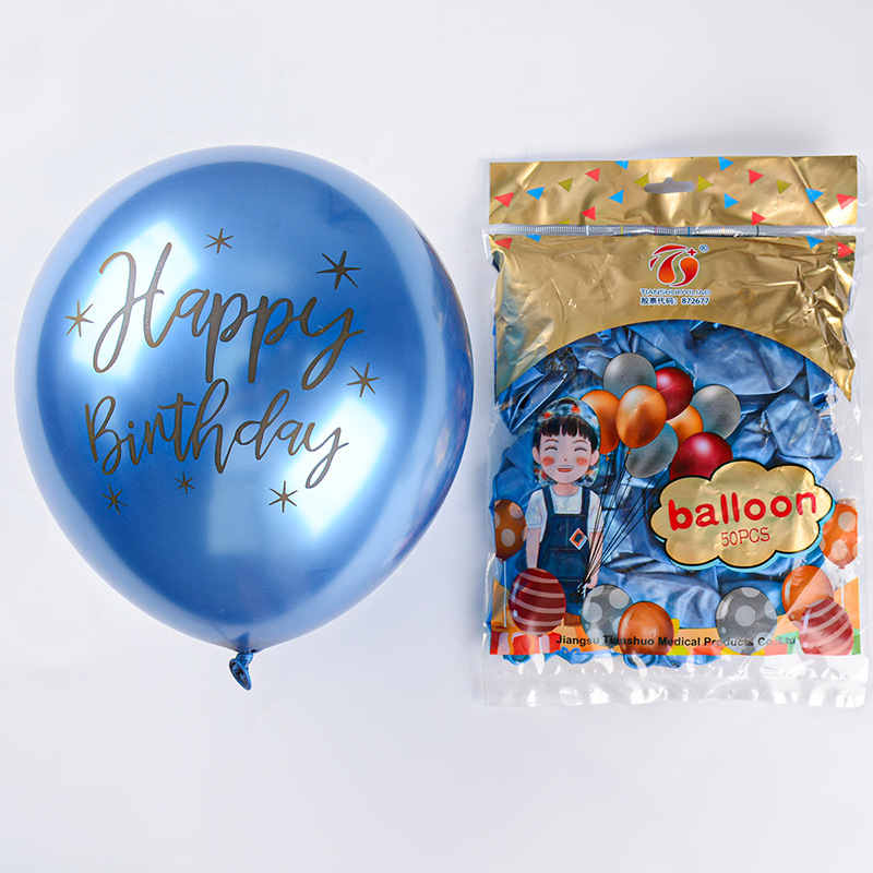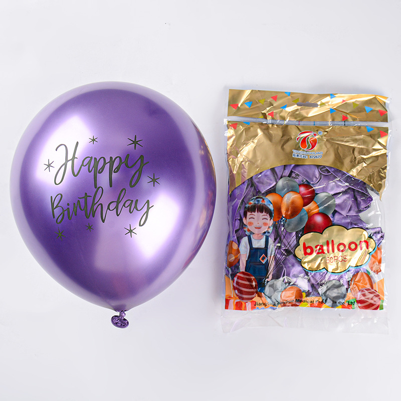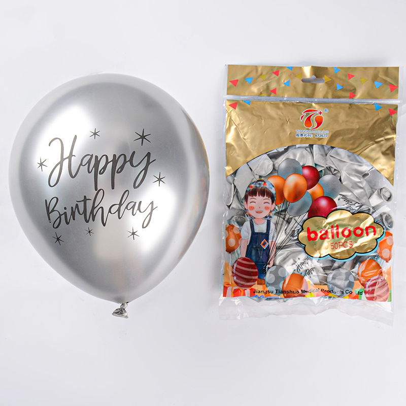 12 인치 2.8g 크롬 컬러 라텍스 풍선 인쇄 생일 축하 금속 풍선 생일 파티 장식
