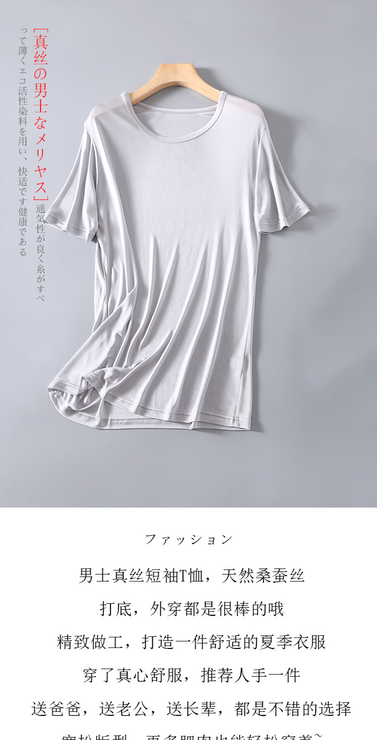 여름 남자의 라운드 넥 반팔 티셔츠 뽕나무 실크 티셔츠 느슨한 실크 티셔츠 베이스 셔츠 플러스 사이즈 탑스토어 가기