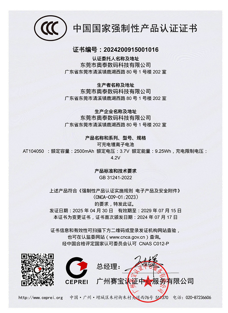 폴리머 리튬 배터리 3C 인증 글로벌 인증서 CE 인증 CB 인증 KC 헤드폰 스피커 충전용 리튬 배터리
