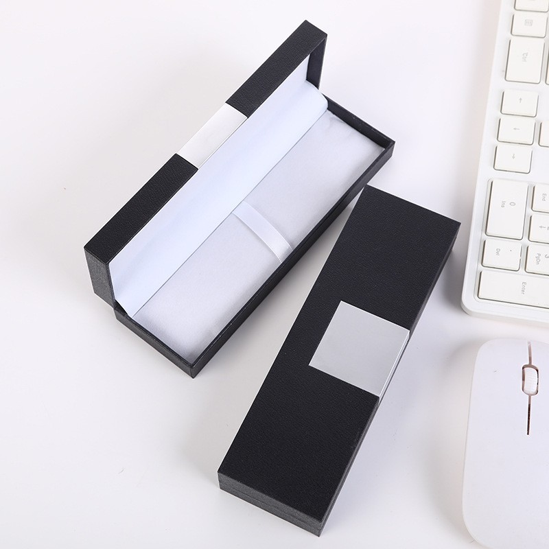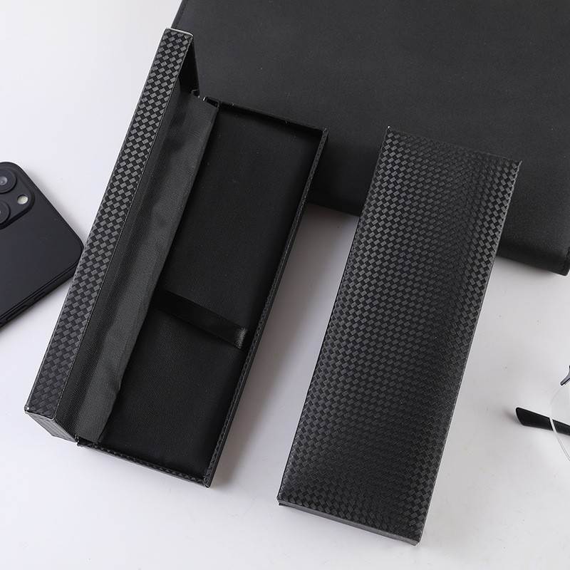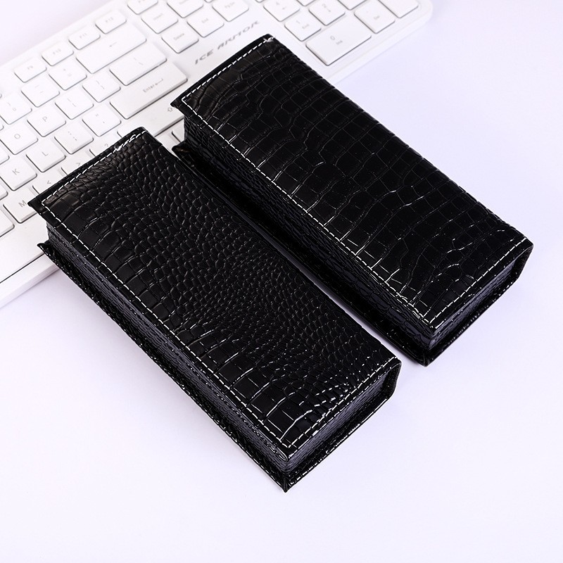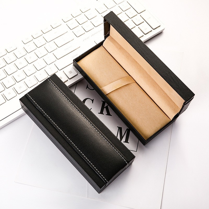 블랙 비즈니스 펜 케이스, 로고 인쇄 가능, 직사각형 펜 케이스, PU 플립 커버, 선물 포장, 문구 도매스토어 가기