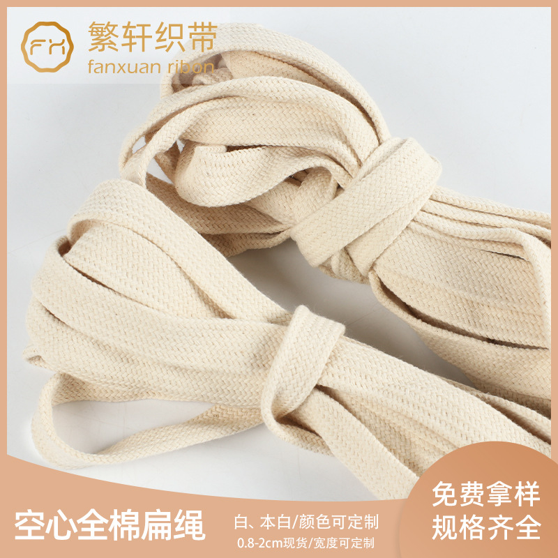 全棉扁绳, 棉织带,棉绳,抽绳, 帽绳, 鞋带,双层扁绳,空心编织带,可染色可订制,