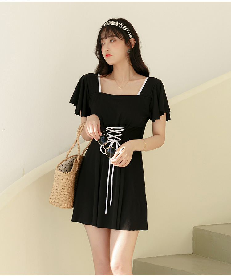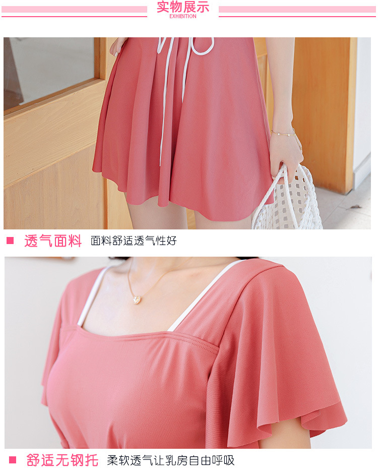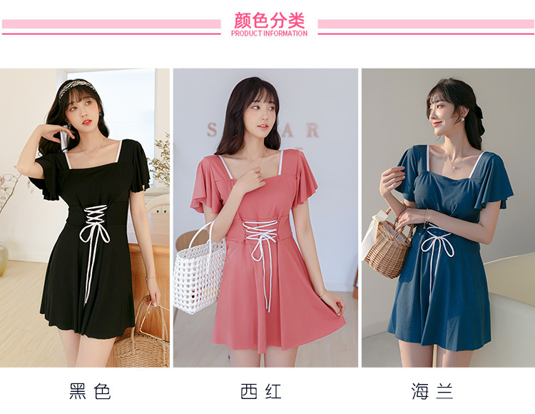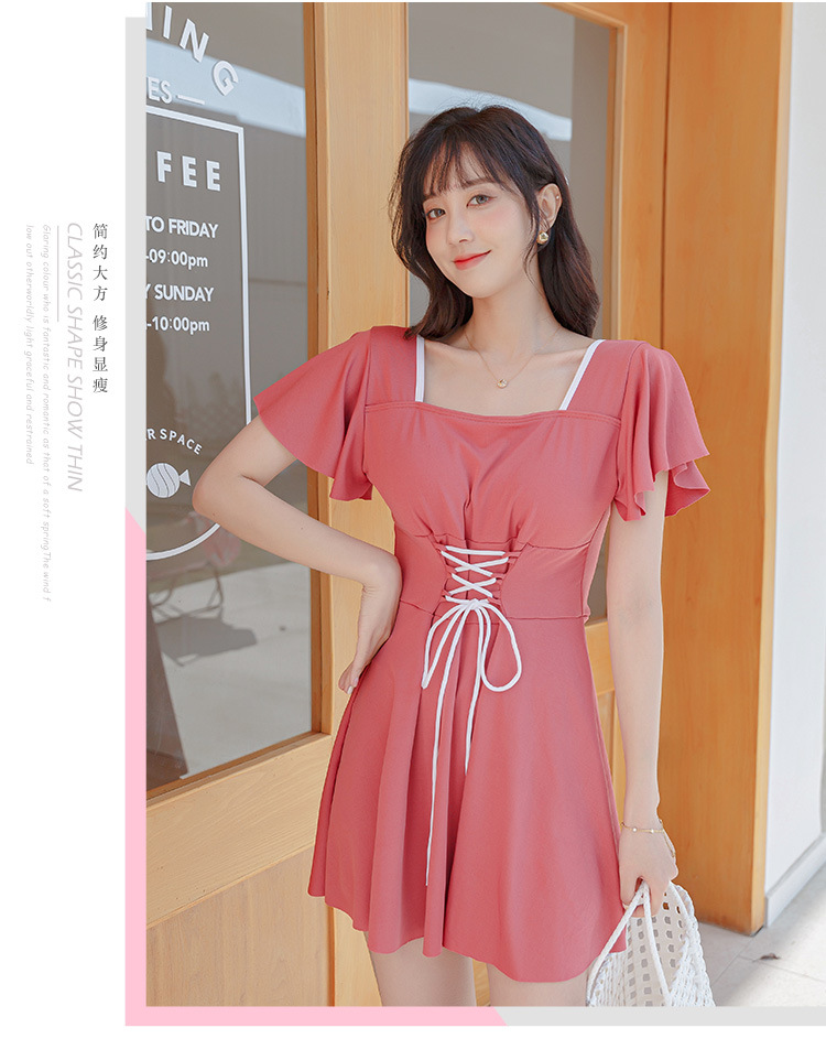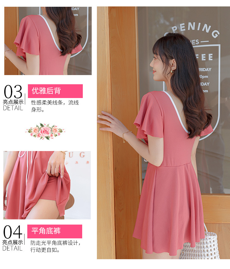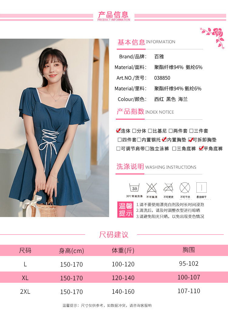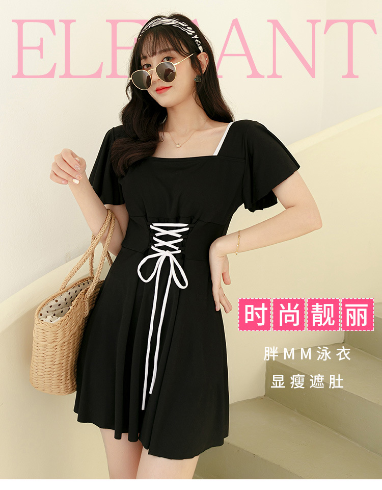 플러스 사이즈 수영복 여성용 통통녀 살점 취재 유행 슬림핏 수영복 단색 느슨한 원피스 스커트 온천 수영복스토어 가기