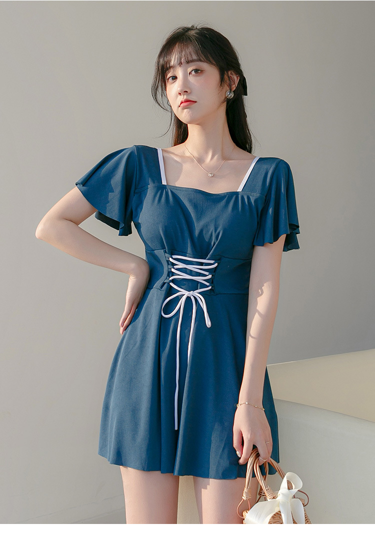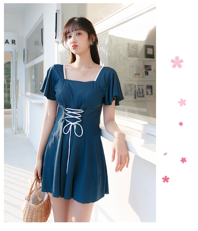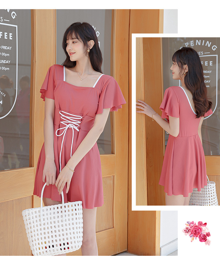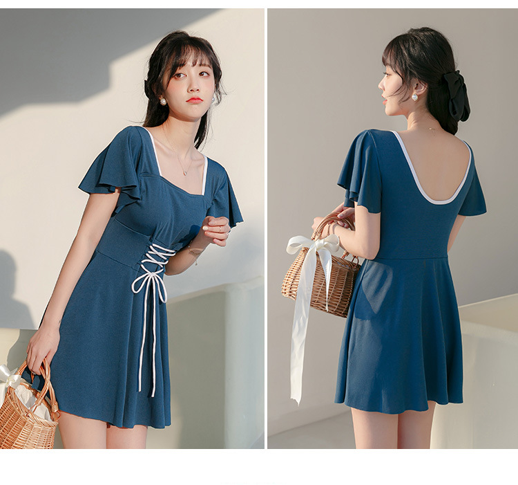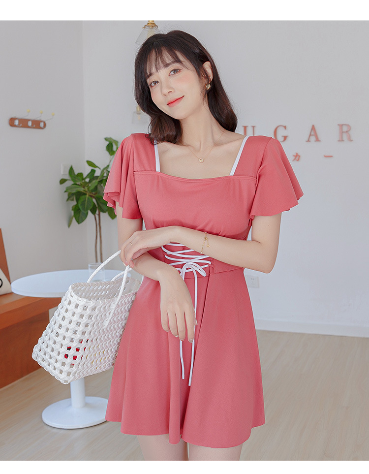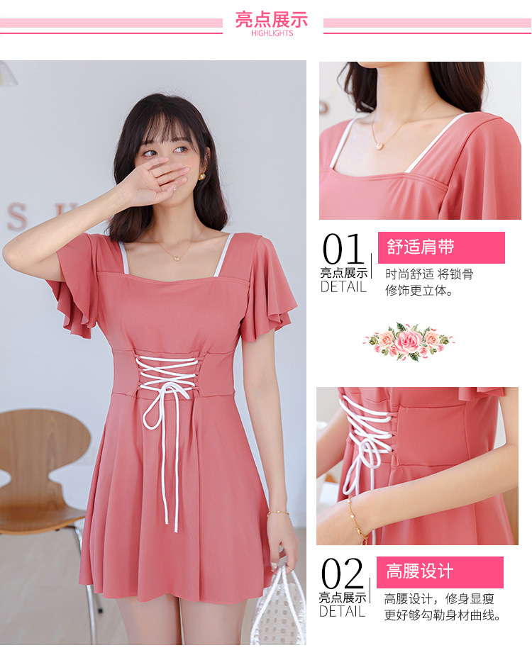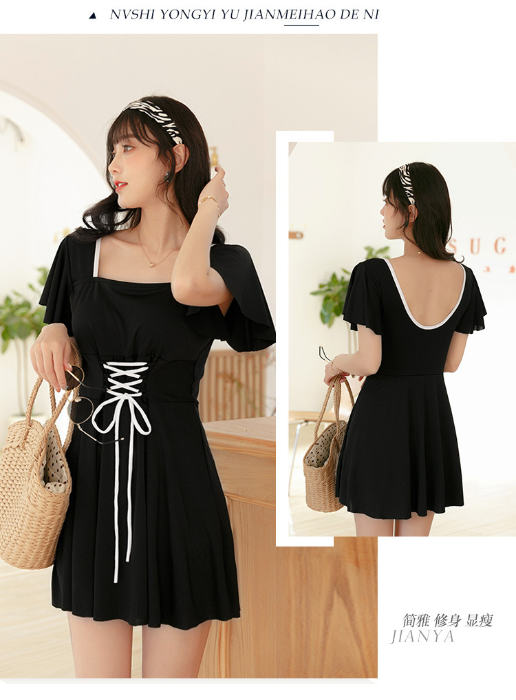 플러스 사이즈 수영복 여성용 통통녀 살점 취재 유행 슬림핏 수영복 단색 느슨한 원피스 스커트 온천 수영복스토어 가기