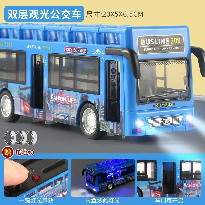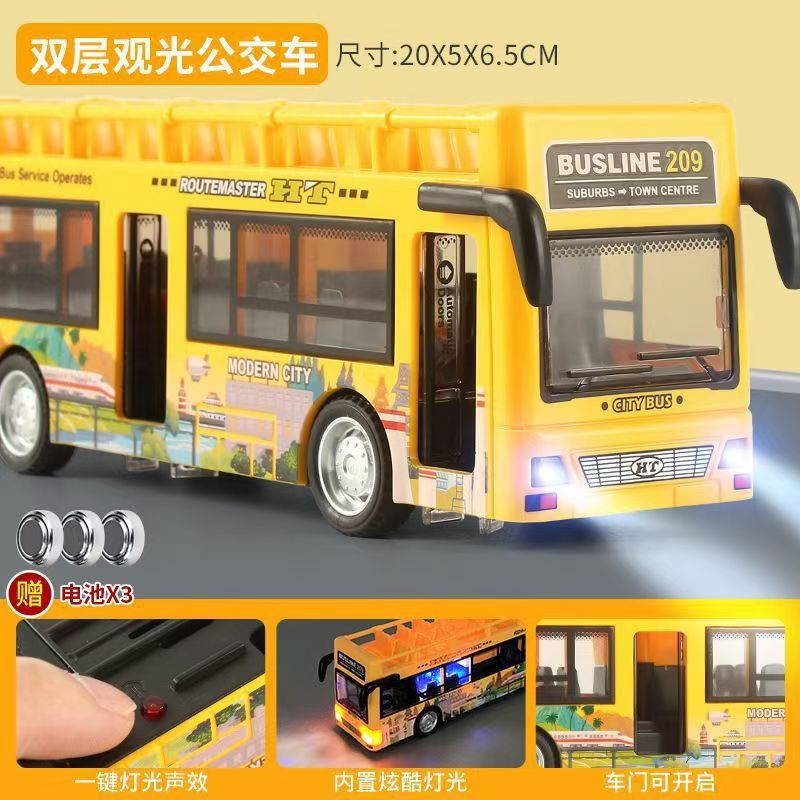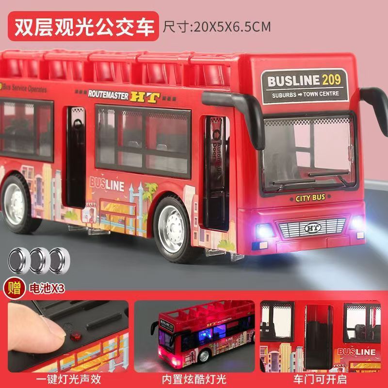 어린이 소리와 빛 버스 문 열기 버스 모델 장난감 자동차 관성 시뮬레이션 버스 소년과 소녀 장난감스토어 가기