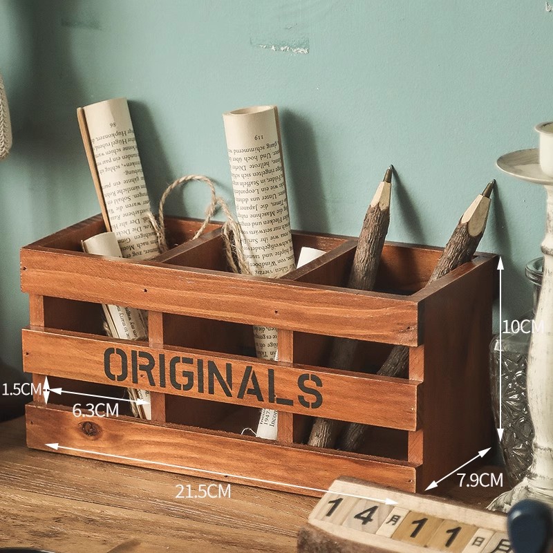 사무실 펜 용기 보관 나무 빈티지 책상 학교 용품 문구 상자 데스크탑 화장품 브러쉬 양동이 창조적 인 장식품스토어 가기