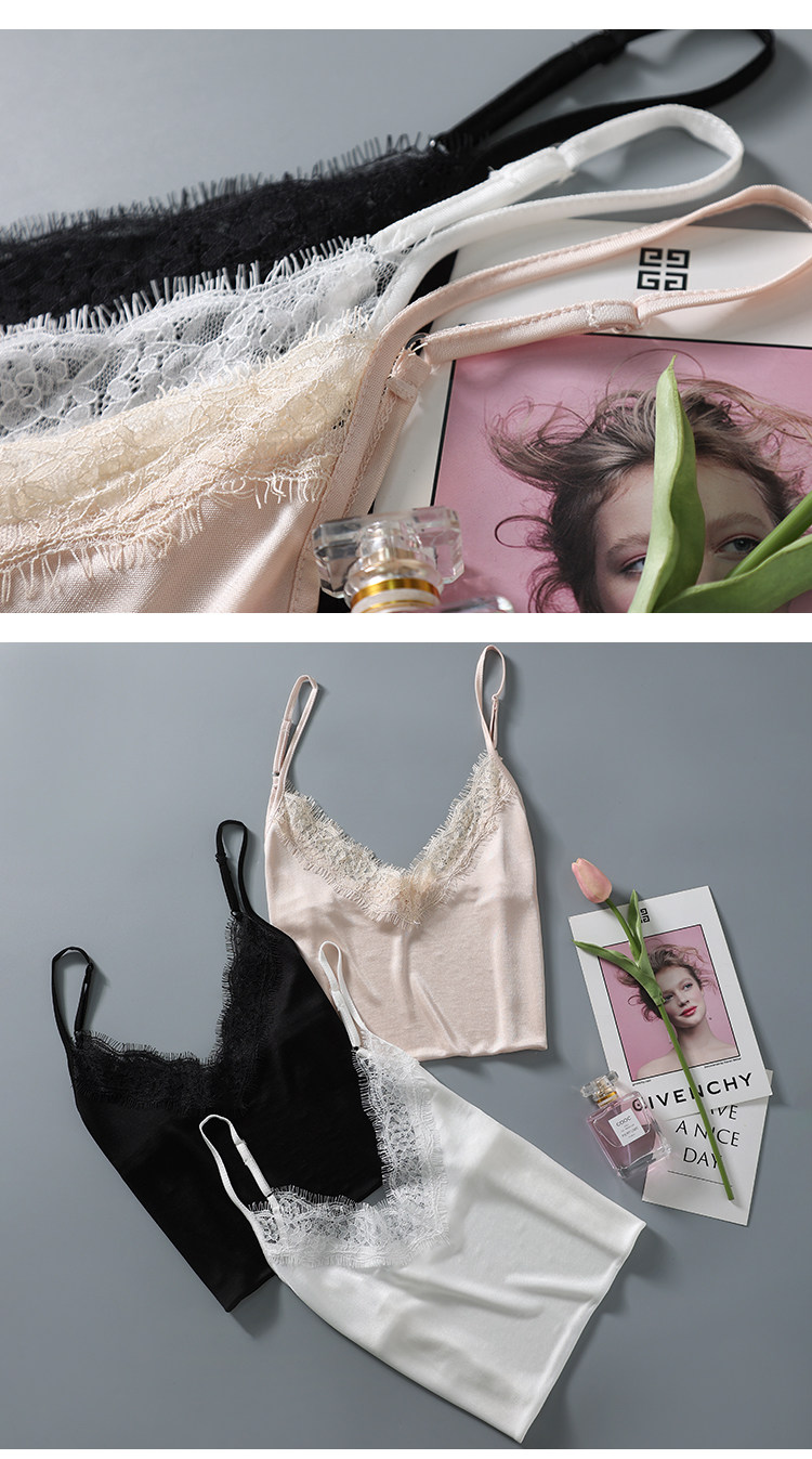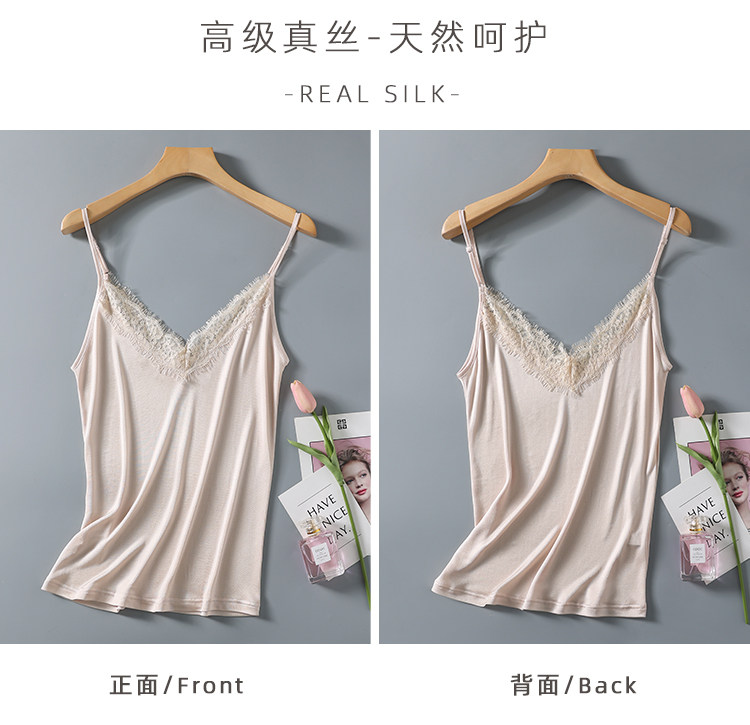 새로운 스타일 실크 니트 캐미솔 섹시한 V-넥 레이스 에지 베이스 셔츠 모든 매치 라이닝 베이스 재킷 여성 탑
