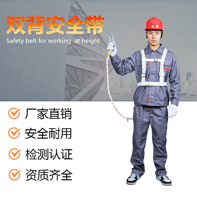 Ruitai 화이트 더블 백 싱글 소형 후크 안전 벨트 도매 수 있습니다 높은 고도 작업 추락 방지 서스펜션 더블 백 안전 벨트스토어 가기