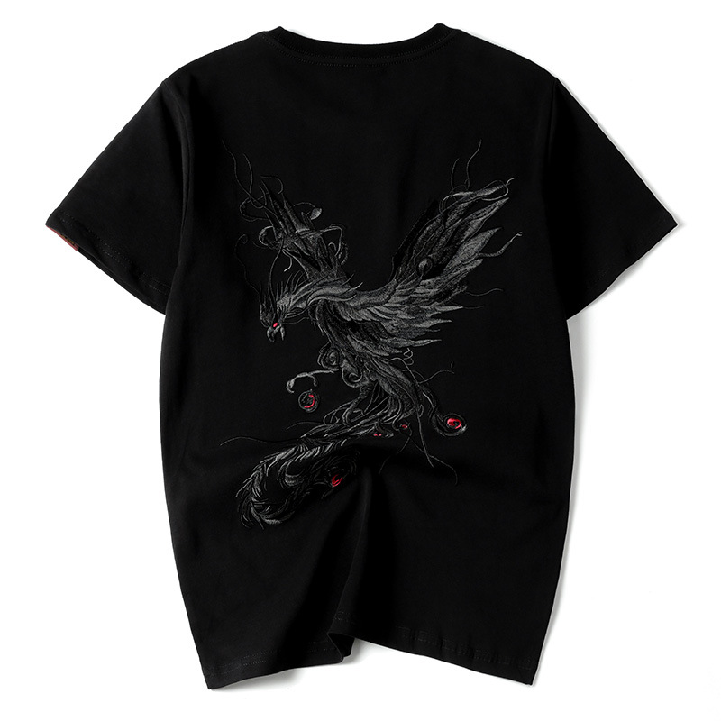 중국풍 봉황 자수 티셔츠 남성용 순면 반팔 커플룩 루즈핏 반팔 티셔츠 남성용 중국풍 패션스토어 가기