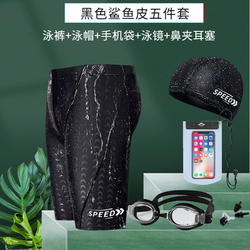 • 수영 트렁크 + 수영 모자 + 휴대폰 가방 + 수영 고글 + 코 클립 귀마개